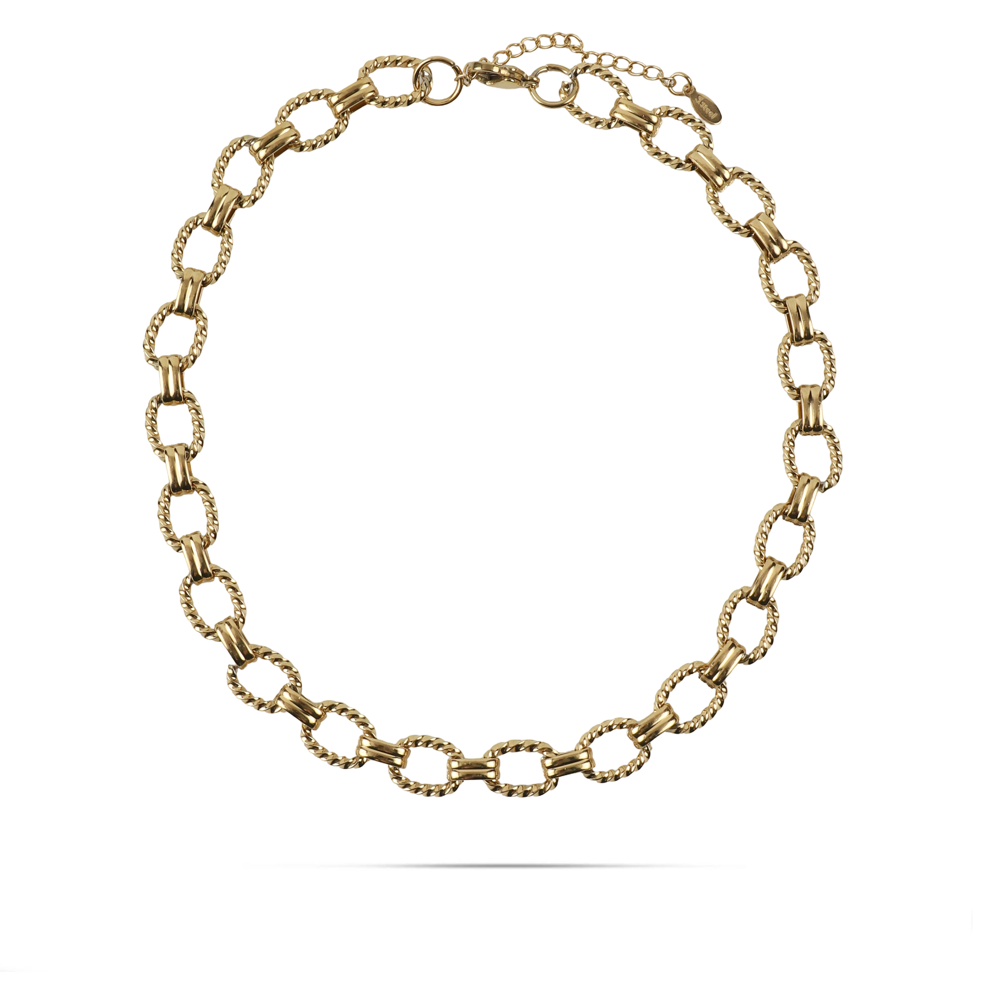 Η αλυσίδα λαιμού Mar and Mar Fabiana από ανοξείδωτο ατσάλι σε διπλά επιχρυσωμένο 18Κ χρώμα είναι ένα κομψό και διαχρονικό κόσμημα. Το περίτεχνο σχέδιο των κρίκων της χαρίζει μια elegant πινελιά που αναδεικνύει κάθε σας εμφάνιση. Ιδανική για να φορεθεί μόνη της ή σε συνδυασμό με άλλα κοσμήματα, προσθέτοντας λάμψη και στυλ σε κάθε περίσταση.