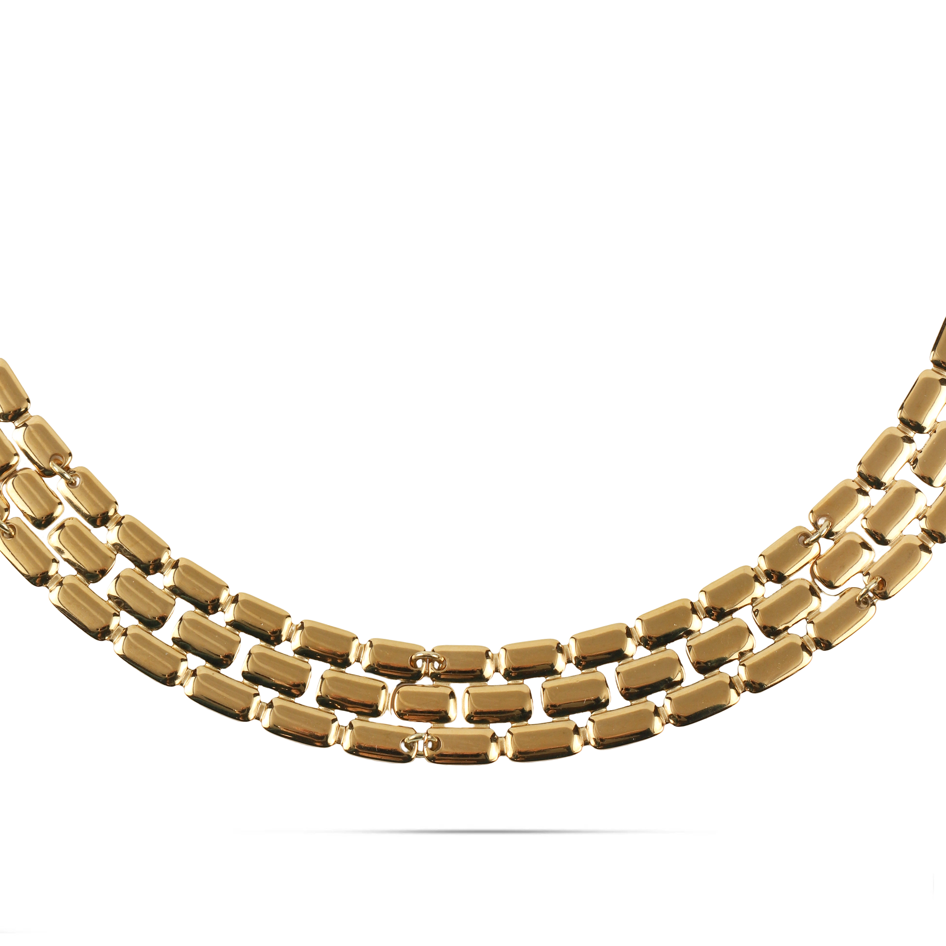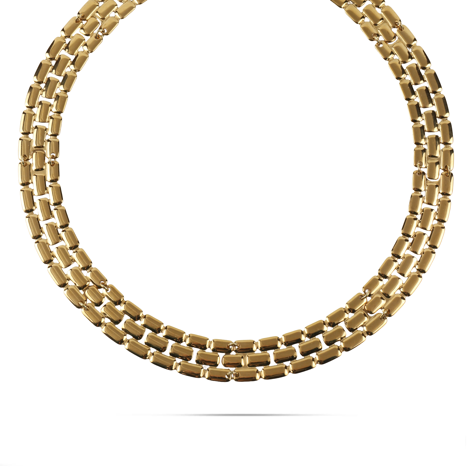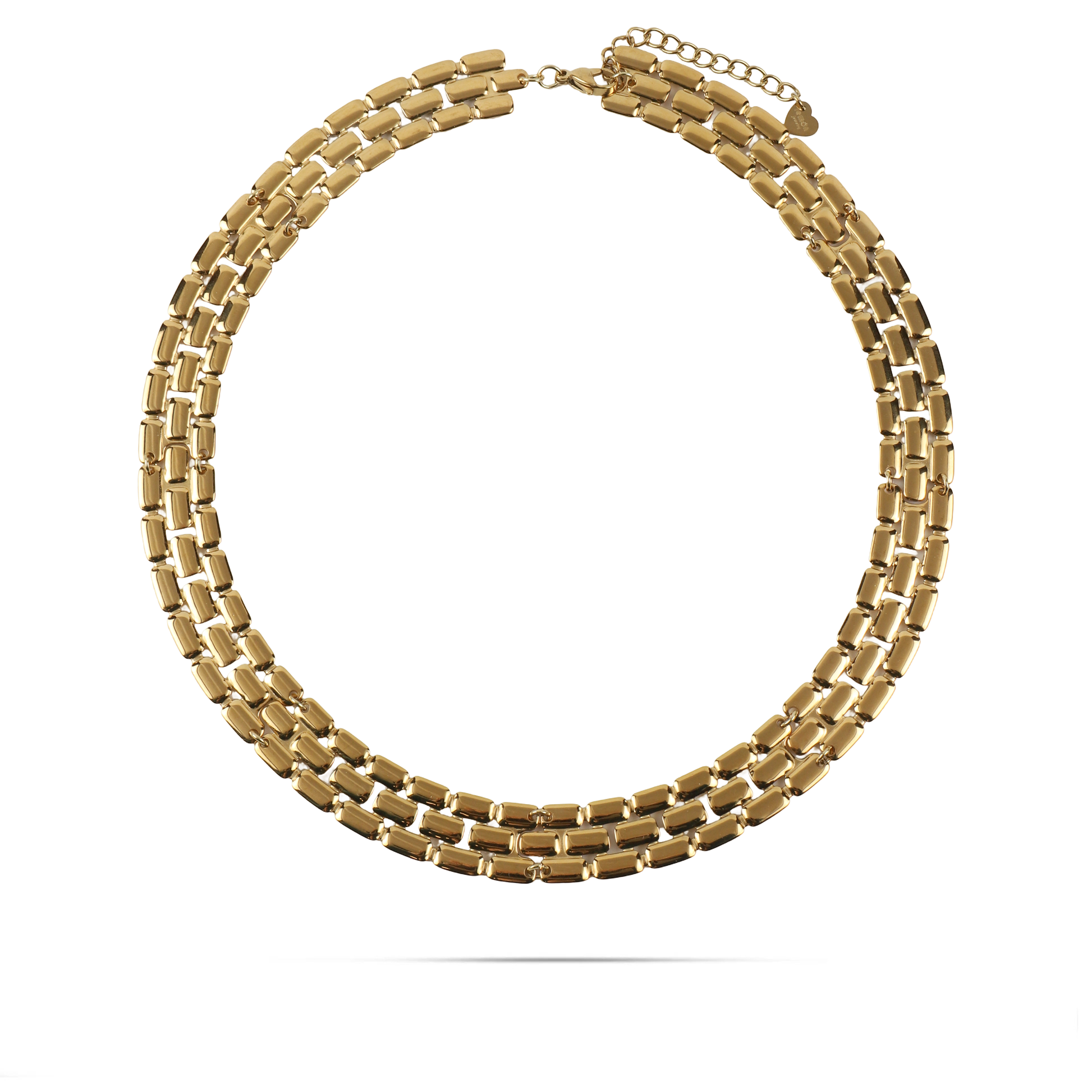 Η αλυσίδα λαιμού Mar and Mar Molly από ανοξείδωτο ατσάλι σε διπλά επιχρυσωμένο 18Κ χρώμα είναι ένα κομψό και εντυπωσιακό κόσμημα. Ο ιδιαίτερος σχεδιασμός των κρίκων της χαρίζει ένα μοντέρνο αλλά και διαχρονικό στυλ, ιδανικό για κάθε περίσταση. Φορέστε την μόνη της για ένα elegant αποτέλεσμα ή συνδυάστε την με άλλα κολιέ για πιο layered εμφανίσεις.