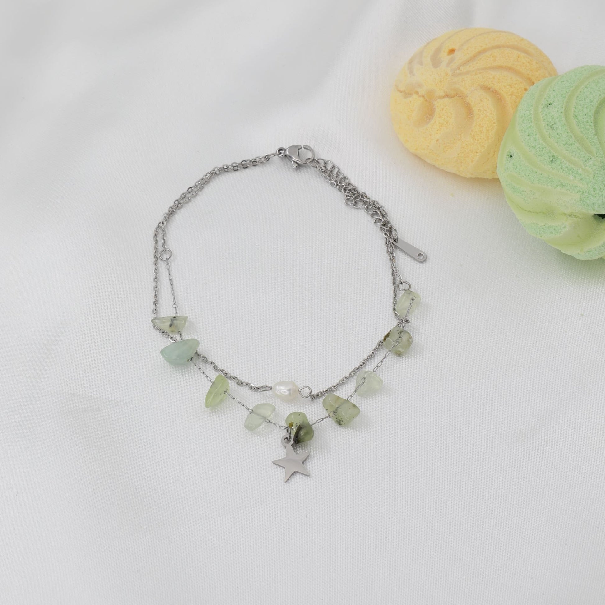 Αλυσίδα ποδιού με χάντρες και αστέρι Mar and Mar Star Anklet (Green) από ανοξείδωτο ατσάλι