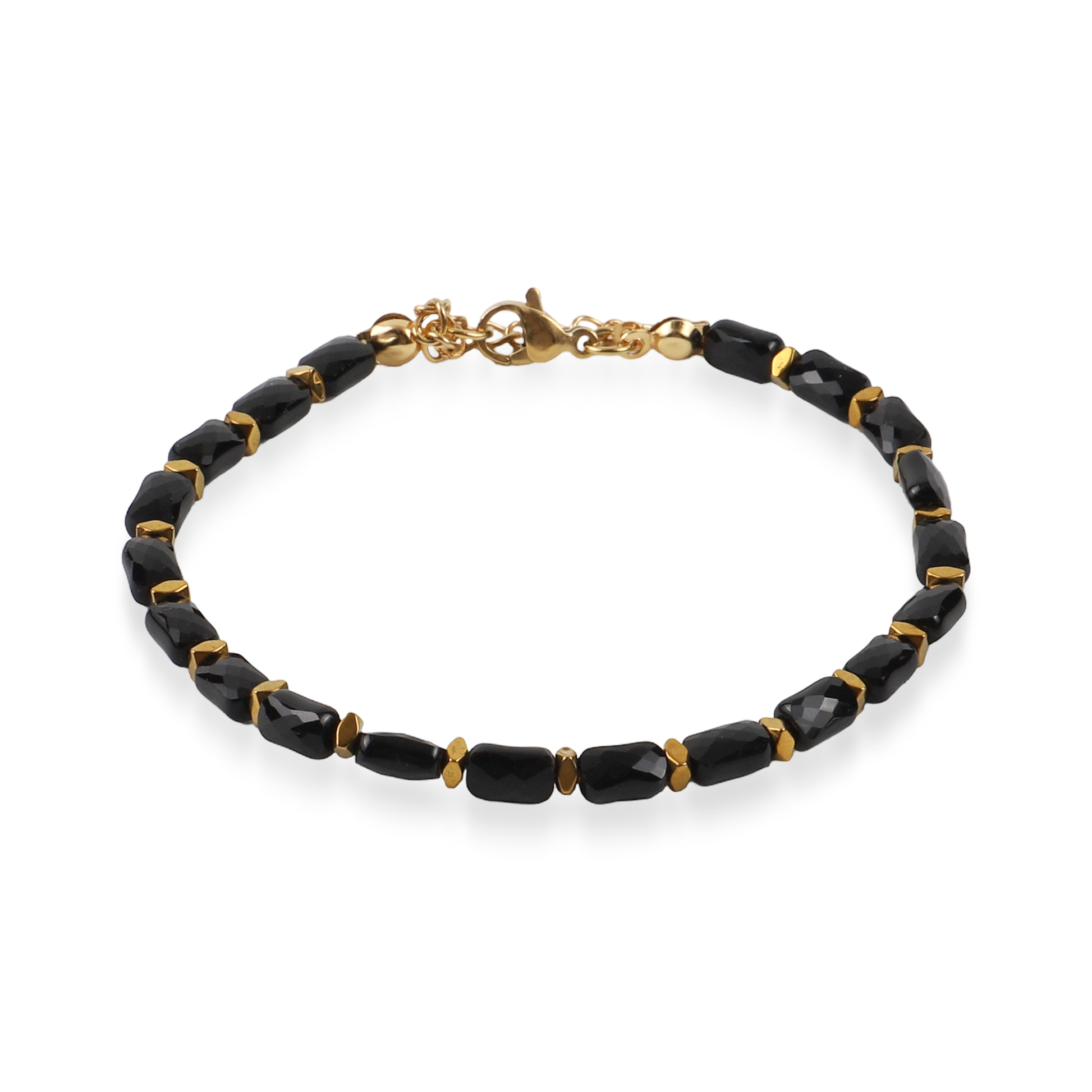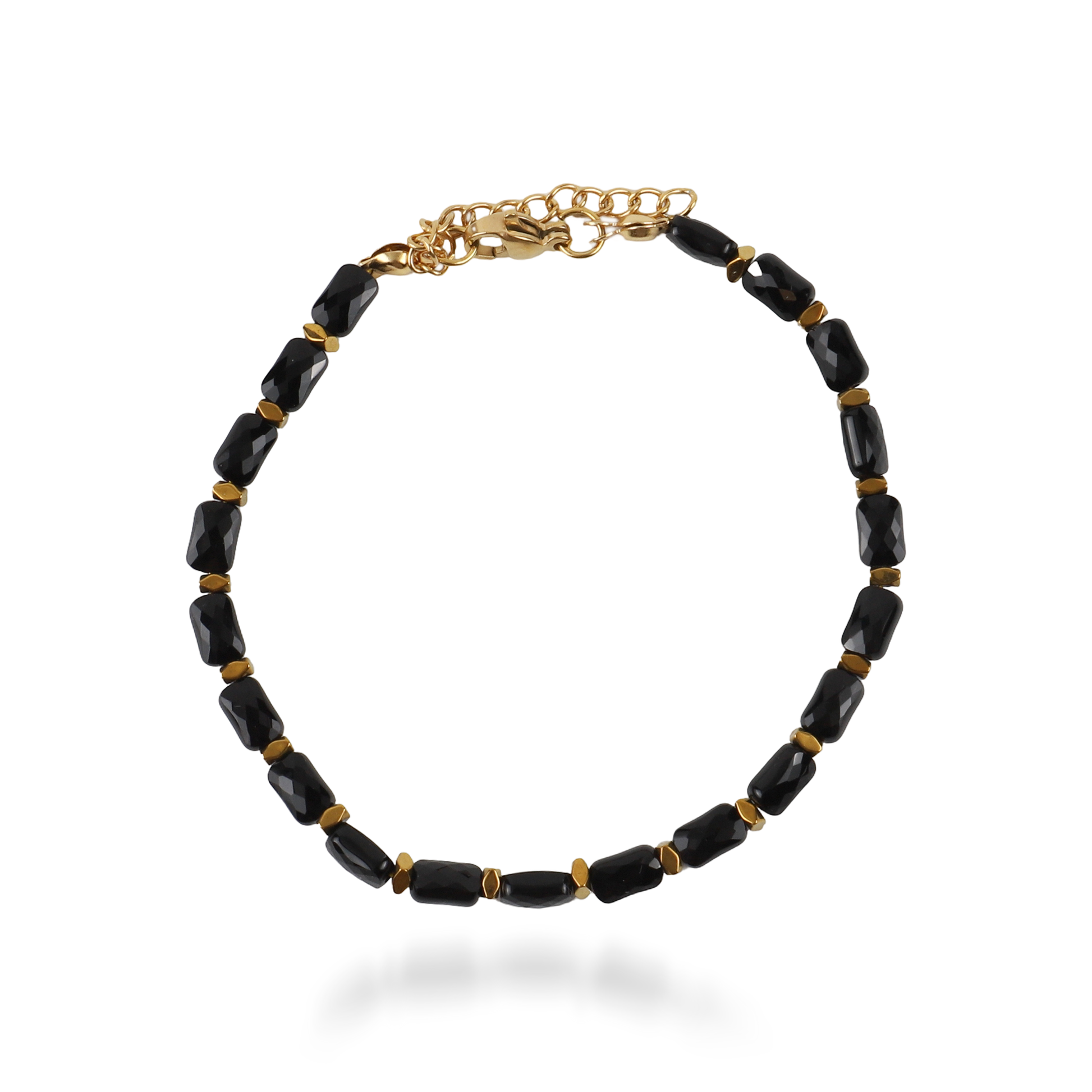 Αναδείξτε το στυλ σας με αυτό το κομψό βραχιόλι με μαύρες χάντρες, που εντυπωσιάζει με τον μινιμαλιστικό του σχεδιασμό και τη διαχρονική του φινέτσα. Οι χρυσές λεπτομέρειες προσθέτουν μια διακριτική λάμψη, δημιουργώντας έναν εκλεπτυσμένο συνδυασμό κομψότητας και δυναμισμού. Ιδανικό για κάθε στιγμή της ημέρας, το βραχιόλι αυτό συμπληρώνει κάθε εμφάνιση με μοντέρνο χαρακτήρα και ανεπιτήδευτη πολυτέλεια.