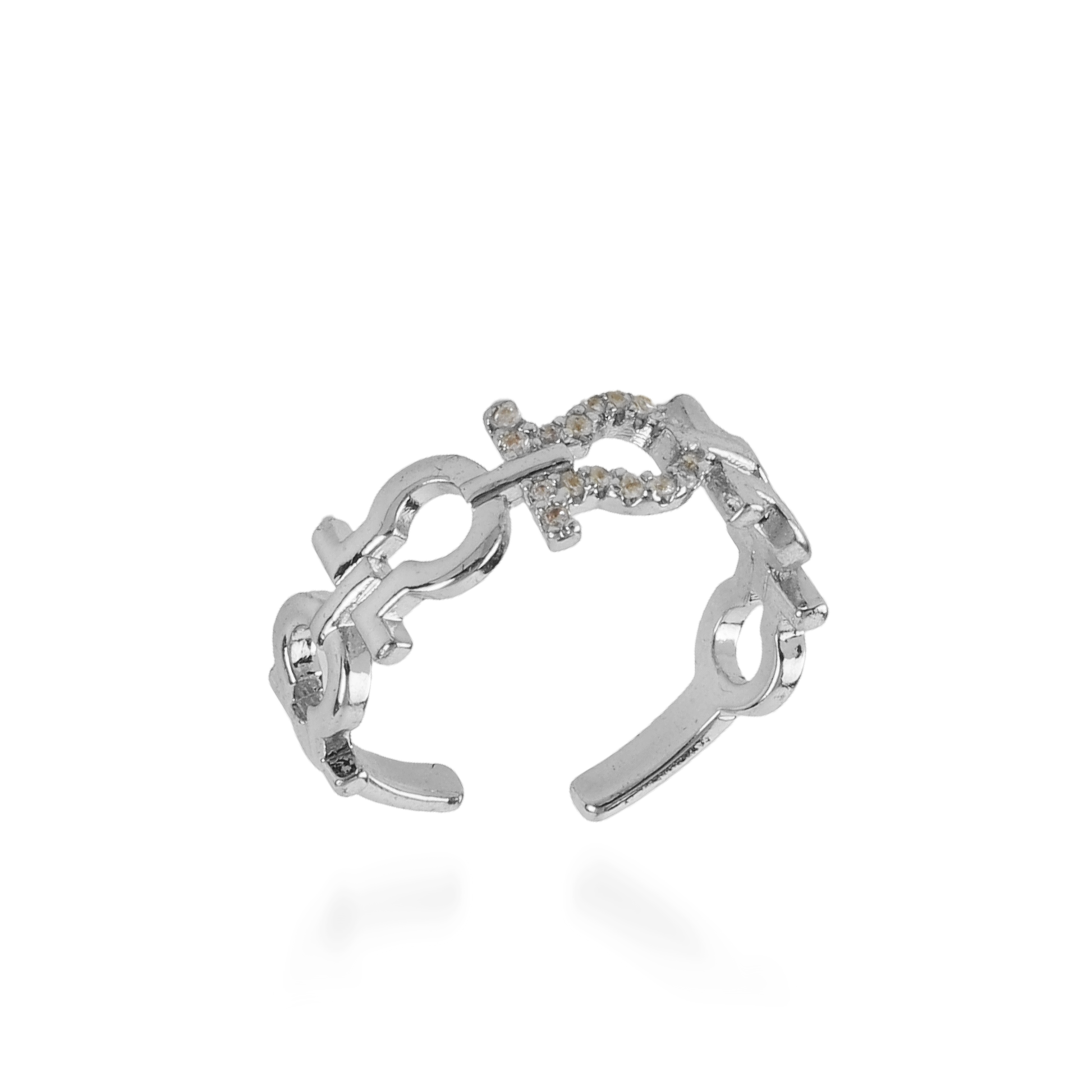 Το γυναικείο δαχτυλίδι Mar and Mar Faylina σε ασημένια απόχρωση ξεχωρίζει με την κομψή του κατασκευή και την εκλεπτυσμένη λάμψη του. Οι λαμπερές πέτρες ζιργκόν στο κέντρο και στην επιφάνειά του αντανακλούν το φως σε κάθε κίνηση, προσφέροντας διακριτική αλλά εκθαμβωτική λάμψη. Με μίνιμαλ σχεδίαση και προσεγμένες λεπτομέρειες, αποτελεί το ιδανικό αξεσουάρ για καθημερινές εμφανίσεις αλλά και για πιο ιδιαίτερες στιγμές, προσθέτοντας φινέτσα και κομψότητα σε κάθε σας look.