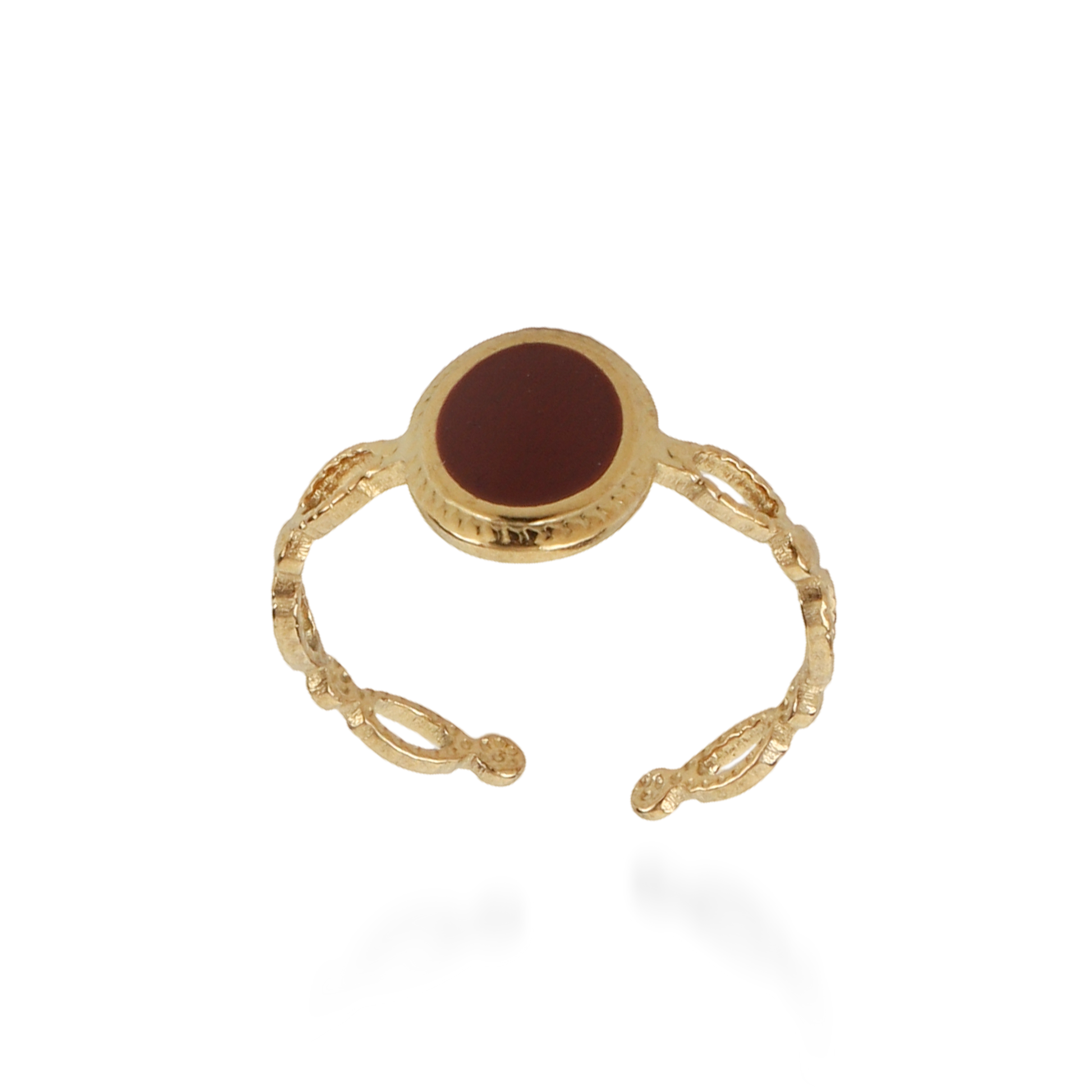 Αναδείξτε τη θηλυκότητα και το εκλεπτυσμένο στυλ σας με αυτό το λεπτό και κομψό γυναικείο δαχτυλίδι από ανοξείδωτο ατσάλι της συλλογής Mar and Mar, σε λαμπερή χρυσή απόχρωση, με κόκκινη πέτρα στο κέντρο που προσθέτει ένταση, πάθος και ζεστασιά στο look σας. Ο μινιμαλιστικός και σύγχρονος σχεδιασμός του αποπνέει φινέτσα και διακριτική πολυτέλεια, καθιστώντας το ιδανικό για κάθε περίσταση από τις καθημερινές εμφανίσεις έως τις πιο κομψές εξόδους. Η ανθεκτική κατασκευή του εξασφαλίζει διαχρονική λάμψη και αντοχή, ενώ ο συνδυασμός του χρυσού μετάλλου με την έντονη κόκκινη πέτρα δημιουργεί ένα εντυπωσιακό και ρομαντικό αποτέλεσμα, που ολοκληρώνει κάθε εμφάνιση με κομψότητα και στυλ.