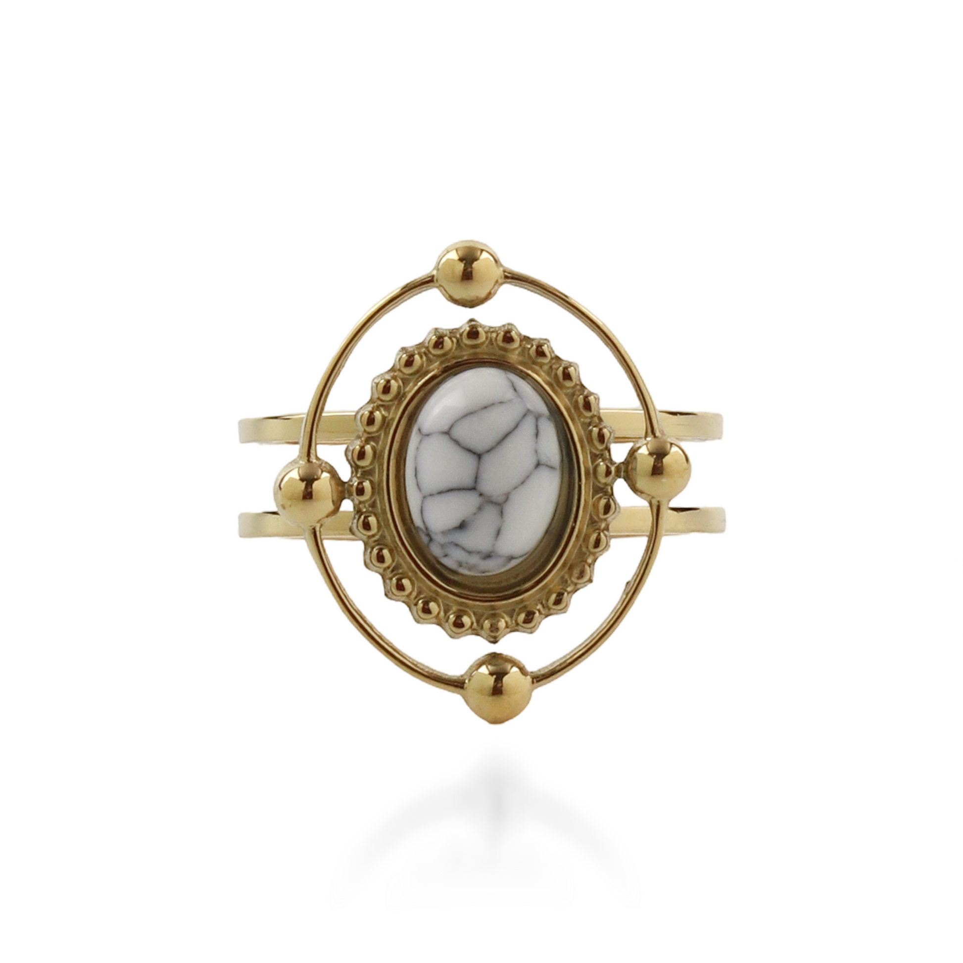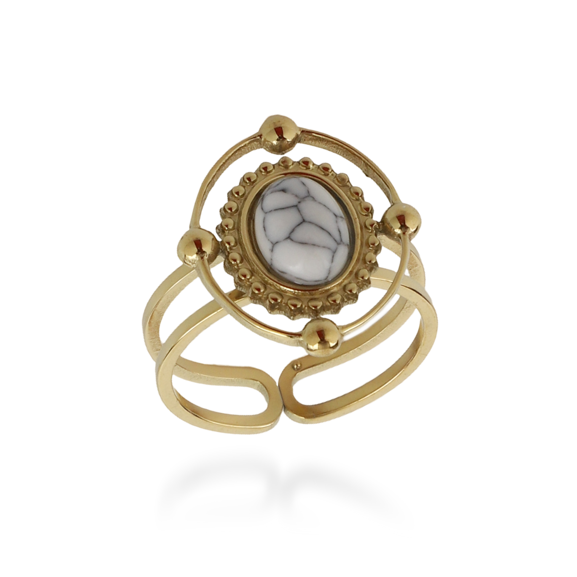 Αναδείξτε τη θηλυκότητα με αυτό το λεπτό γυναικείο δαχτυλίδι από ανοξείδωτο ατσάλι της συλλογής Mar and Mar, σε λαμπερή χρυσή απόχρωση, με οβάλ λευκή πέτρα στο κέντρο που χαρίζει εκλεπτυσμένη λάμψη και κομψό χαρακτήρα. Ο μοντέρνος και κομψός σχεδιασμός του προσφέρει διαχρονικό στυλ σε κάθε εμφάνιση, ενώ η ποιοτική κατασκευή εξασφαλίζει σταθερότητα και μακροχρόνια λάμψη. Ένα λεπτό και εντυπωσιακό κόσμημα που ολοκληρώνει κάθε look με φινέτσα και κομψότητα
