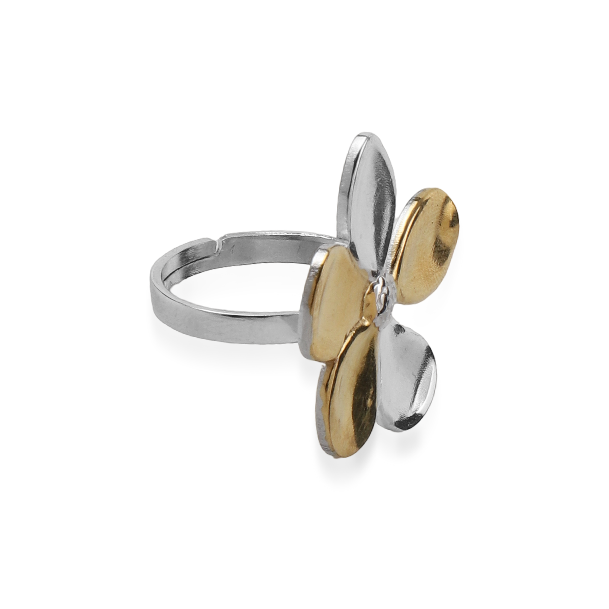 Απογειώστε τη θηλυκότητα και τη λάμψη σας με το γυναικείο δαχτυλίδι Mar and Mar Floralis. Το εντυπωσιακό του σχέδιο λουλουδιού συνδυάζει αρμονικά χρυσές και ασημένιες αποχρώσεις, προσφέροντας μια παιχνιδιάρικη και κομψή αντίθεση.Η προσεγμένη κατασκευή του και η μίξη υλικών εξασφαλίζουν ανθεκτικότητα και μακροχρόνια λάμψη, ενώ το μοναδικό του σχέδιο προσθέτει μια εκλεπτυσμένη και φινέτσα πινελιά σε κάθε εμφάνιση. Ιδανικό τόσο για καθημερινή χρήση όσο και για ιδιαίτερες στιγμές, είναι ένα δαχτυλίδι που ολοκληρώνει κάθε look με κομψότητα και θηλυκή γοητεία.