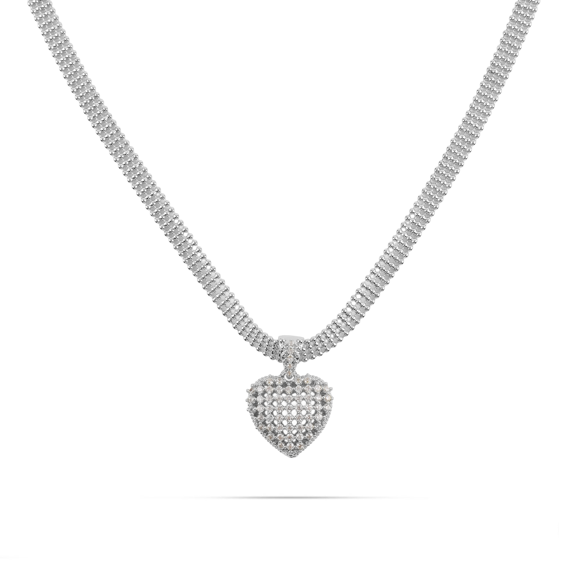 Κολιέ καρδιά με πέτρες ζιργκόν Mar and Mar Amarelia (Silver) από ανοξείδωτο ατσάλι