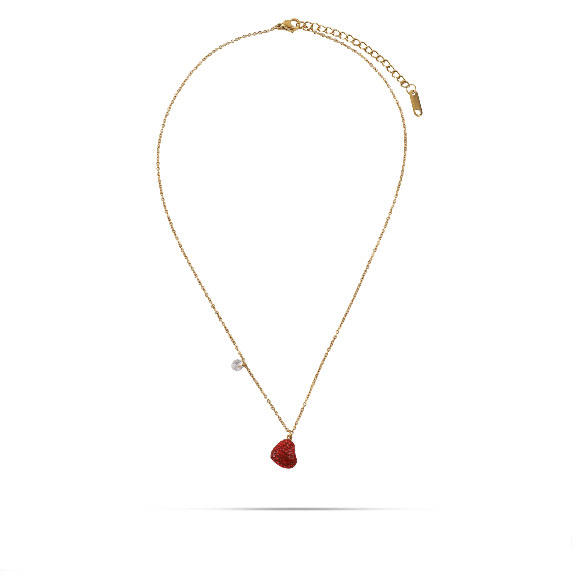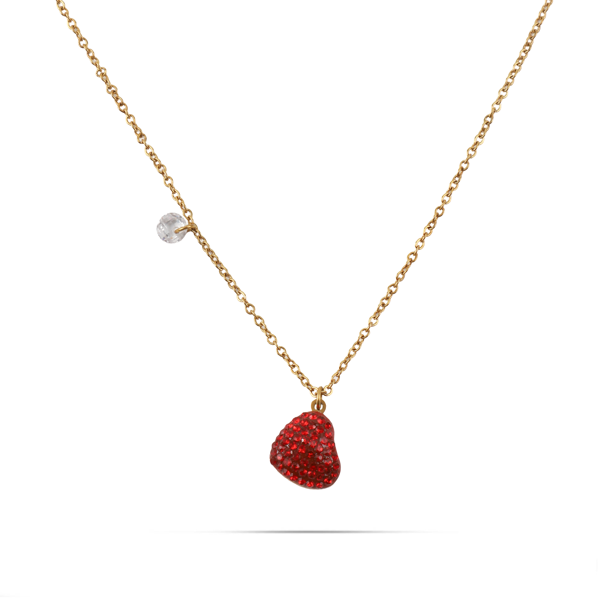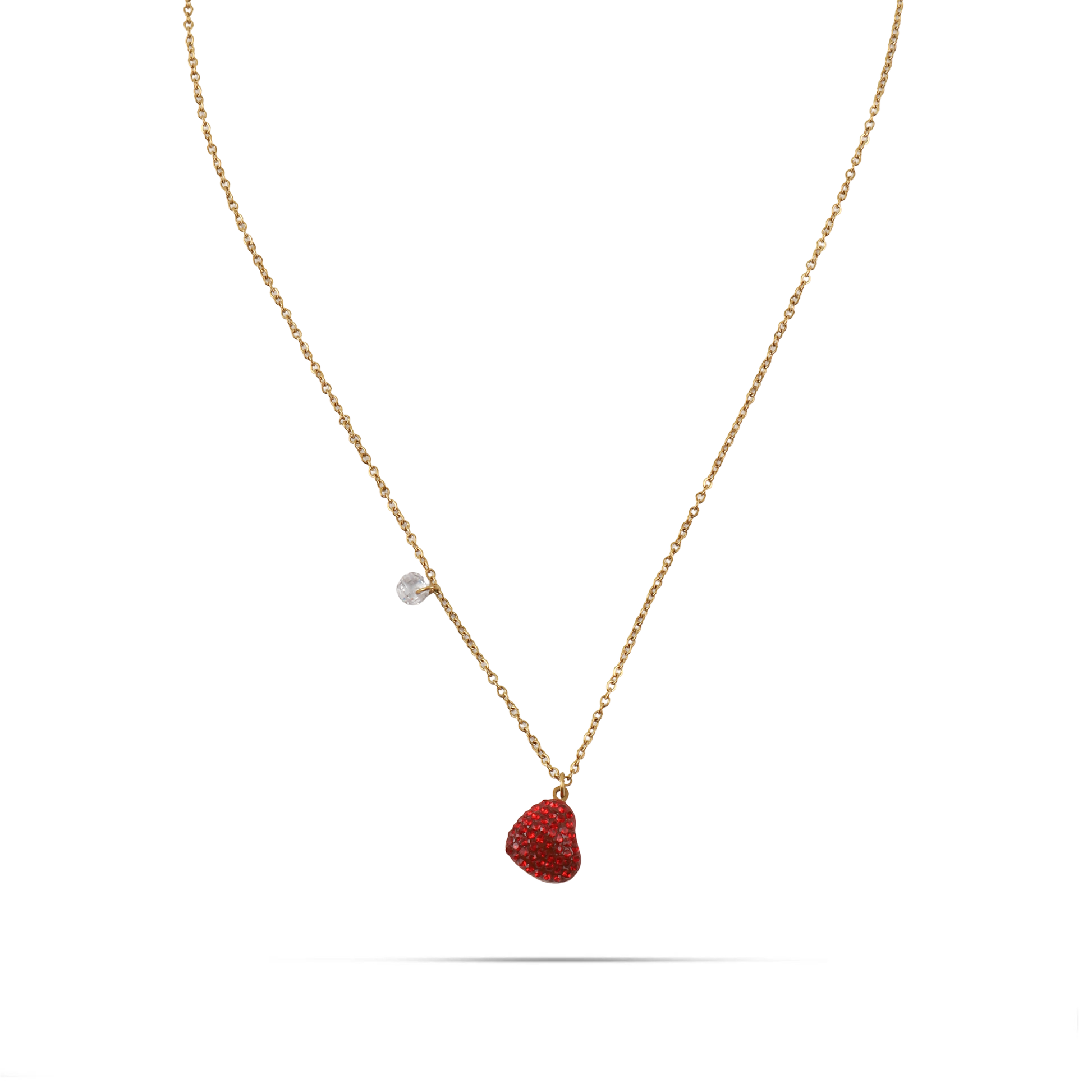 Το κολιέ Mar and Mar Celia σε χρυσό χρώμα διαθέτει μενταγιόν σε σχήμα καρδιάς διακοσμημένο με κόκκινες πέτρες Zircon, προσφέροντας έναν συνδυασμό κομψότητας και πάθους. Η ζεστή λάμψη του χρυσού τονίζει ιδανικά τη φωτεινότητα των λίθων, δημιουργώντας ένα εντυπωσιακό και θηλυκό αποτέλεσμα.