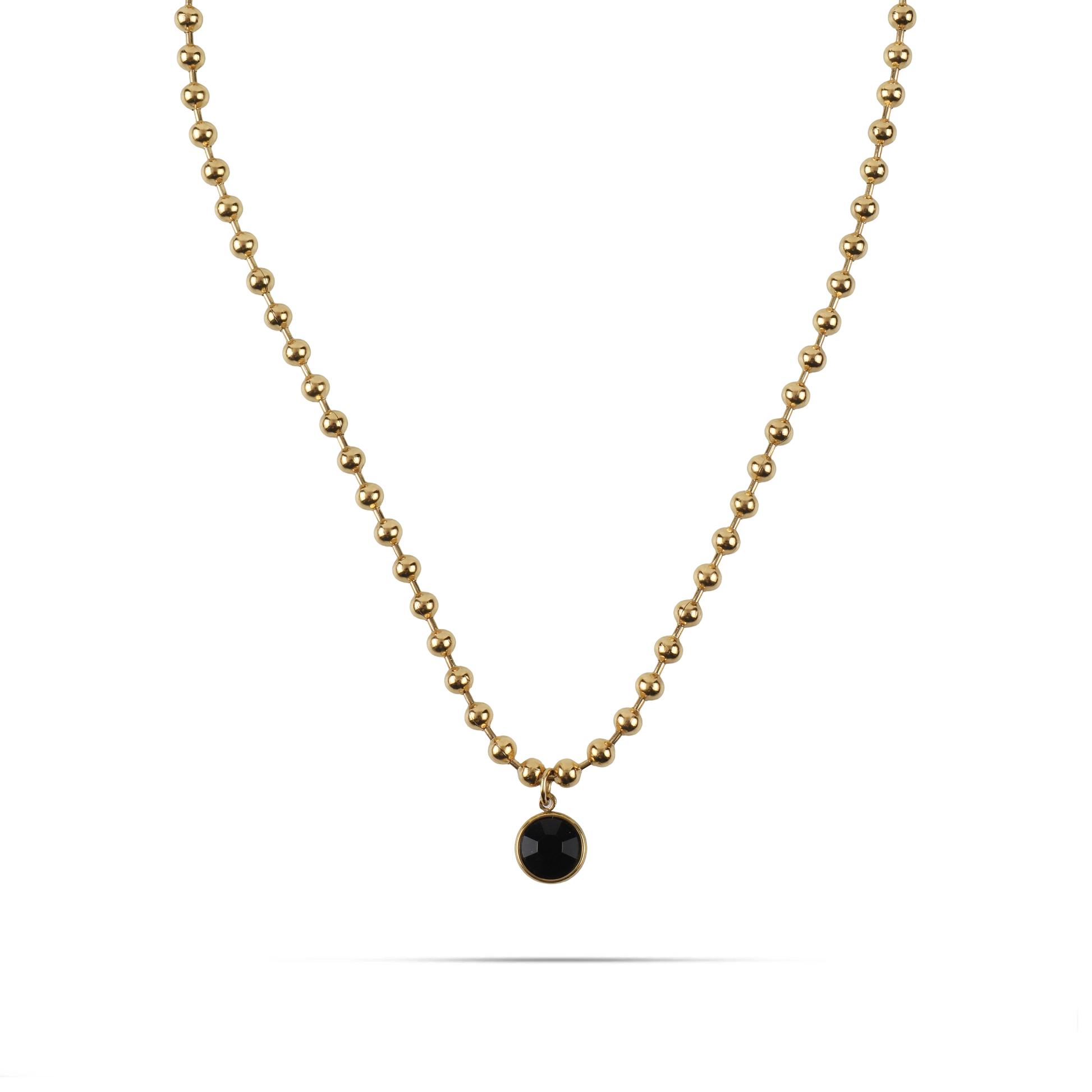 Κολιέ από ανοξείδωτο ατσάλι με κομψή και διαχρονική αλυσίδα, διακοσμημένο με μενταγιόν που φέρει μία λαμπερή πέτρα Zircon σε μαύρο χρώμα, προσδίδοντας μυστήριο και δυναμισμό στο στυλ σας. Η ανθεκτική κατασκευή από ανοξείδωτο ατσάλι εξασφαλίζει ότι το κόσμημα διατηρεί τη λάμψη και την ποιότητά του στον χρόνο, καθιστώντας το ιδανικό για καθημερινή χρήση αλλά και για ιδιαίτερες περιστάσεις. Ένα ξεχωριστό και κομψό κόσμημα που αποπνέει στυλ και πολυτέλεια, ενώ αποτελεί και μια υπέροχη επιλογή δώρου για αγαπημένα πρόσωπα.