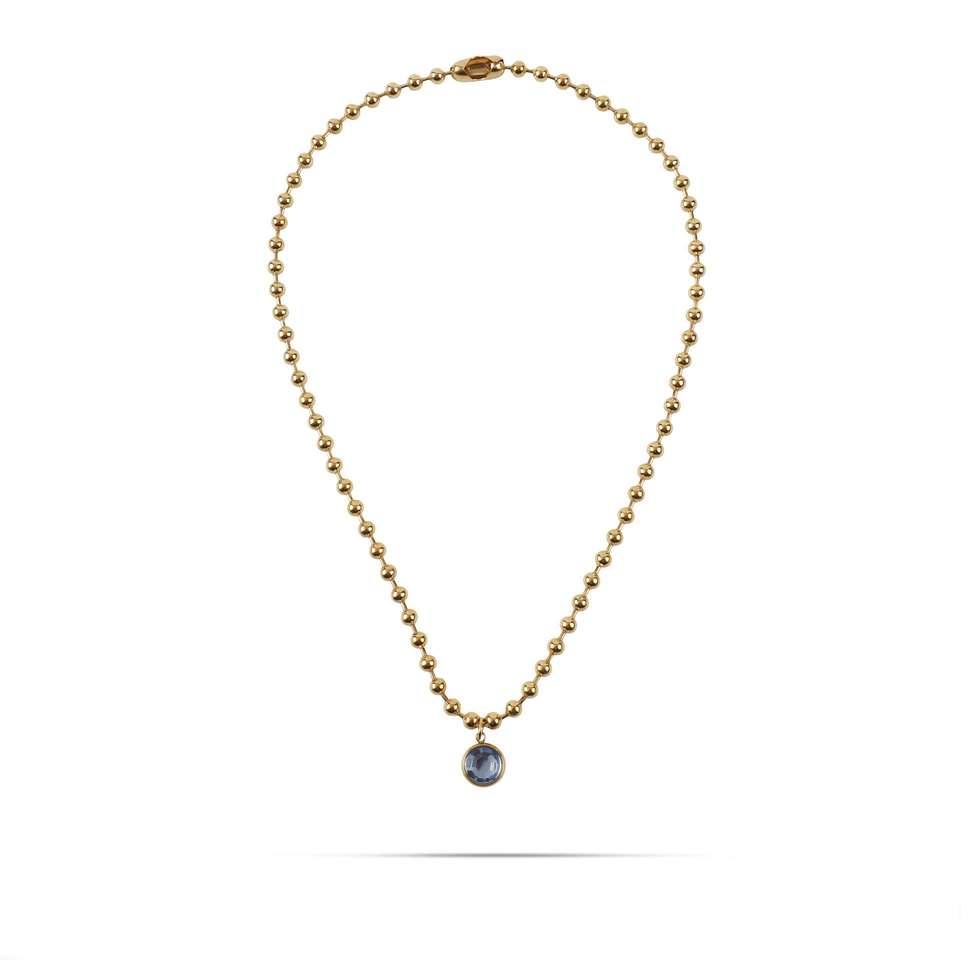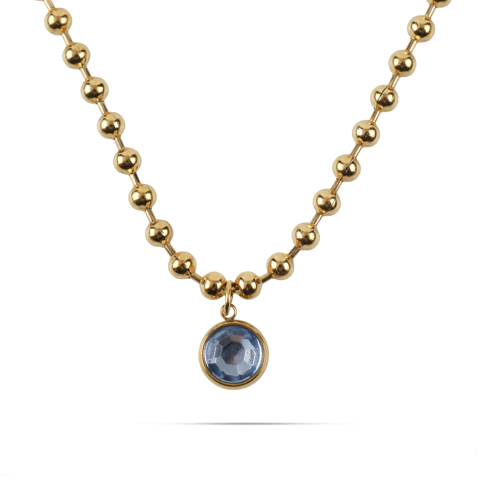 Κολιέ από ανοξείδωτο ατσάλι με κομψή και ιδιαίτερη αλυσίδα, διακοσμημένο με μενταγιόν που φέρει μία λαμπερή πέτρα Zircon σε γαλάζιο χρώμα, αποπνέοντας φρεσκάδα και κομψότητα. Η ανθεκτική κατασκευή από ανοξείδωτο ατσάλι εξασφαλίζει ότι το κόσμημα διατηρεί τη λάμψη του με την πάροδο του χρόνου, καθιστώντας το ιδανικό για καθημερινές αλλά και πιο ξεχωριστές περιστάσεις. Ένα εκλεπτυσμένο και διαχρονικό κόσμημα που συνδυάζει απλότητα με διακριτική πολυτέλεια, ενώ αποτελεί και μια υπέροχη επιλογή δώρου για αγαπημένα πρόσωπα.