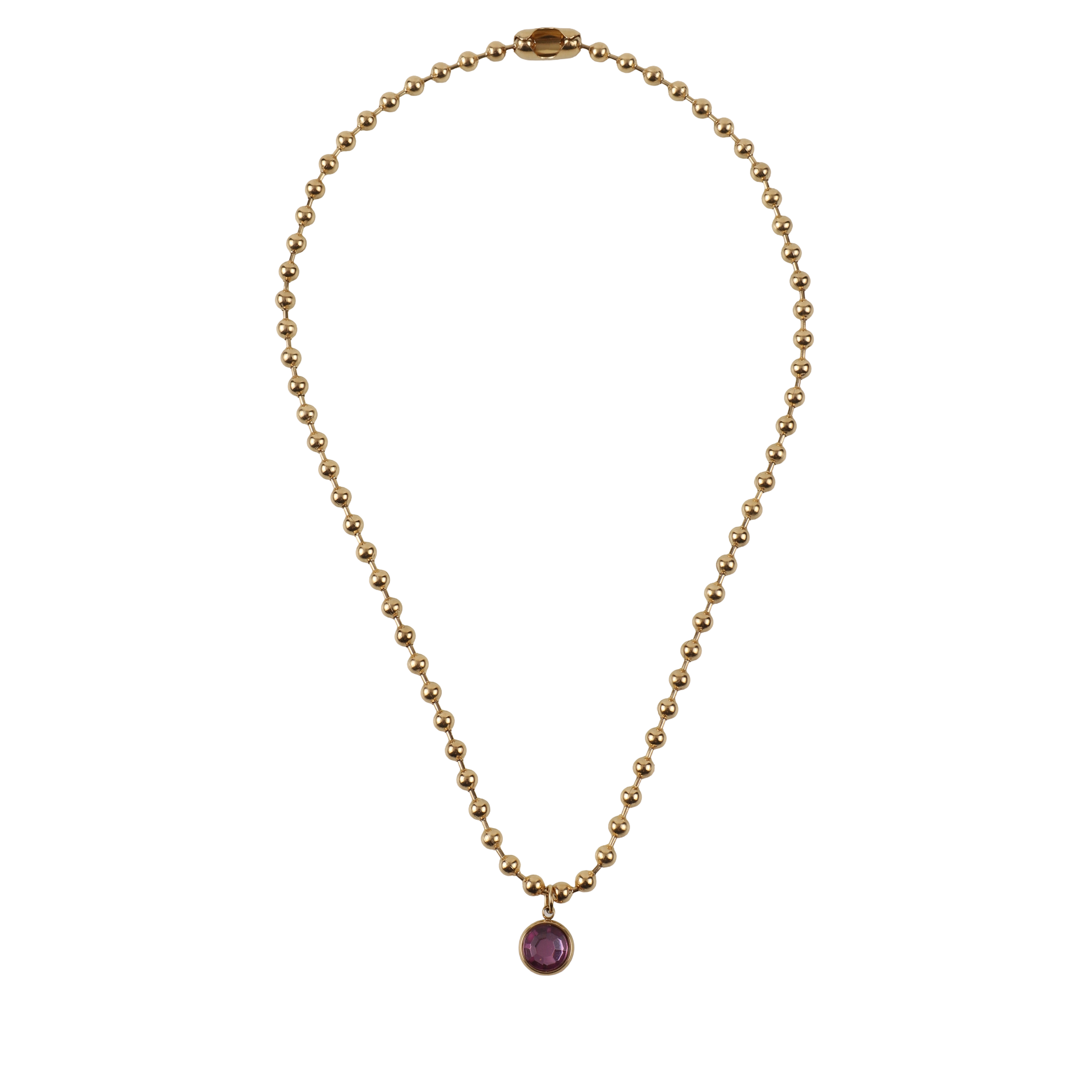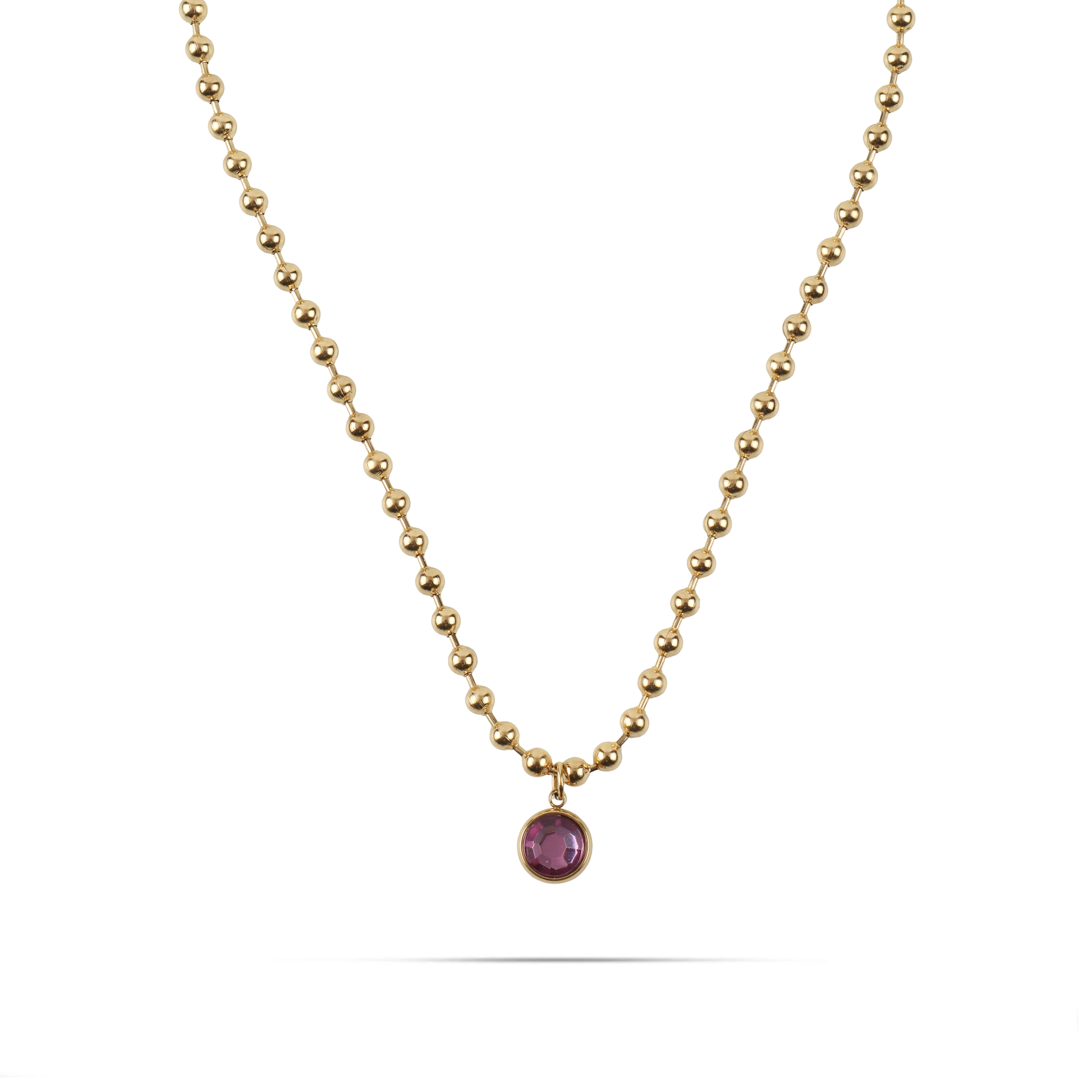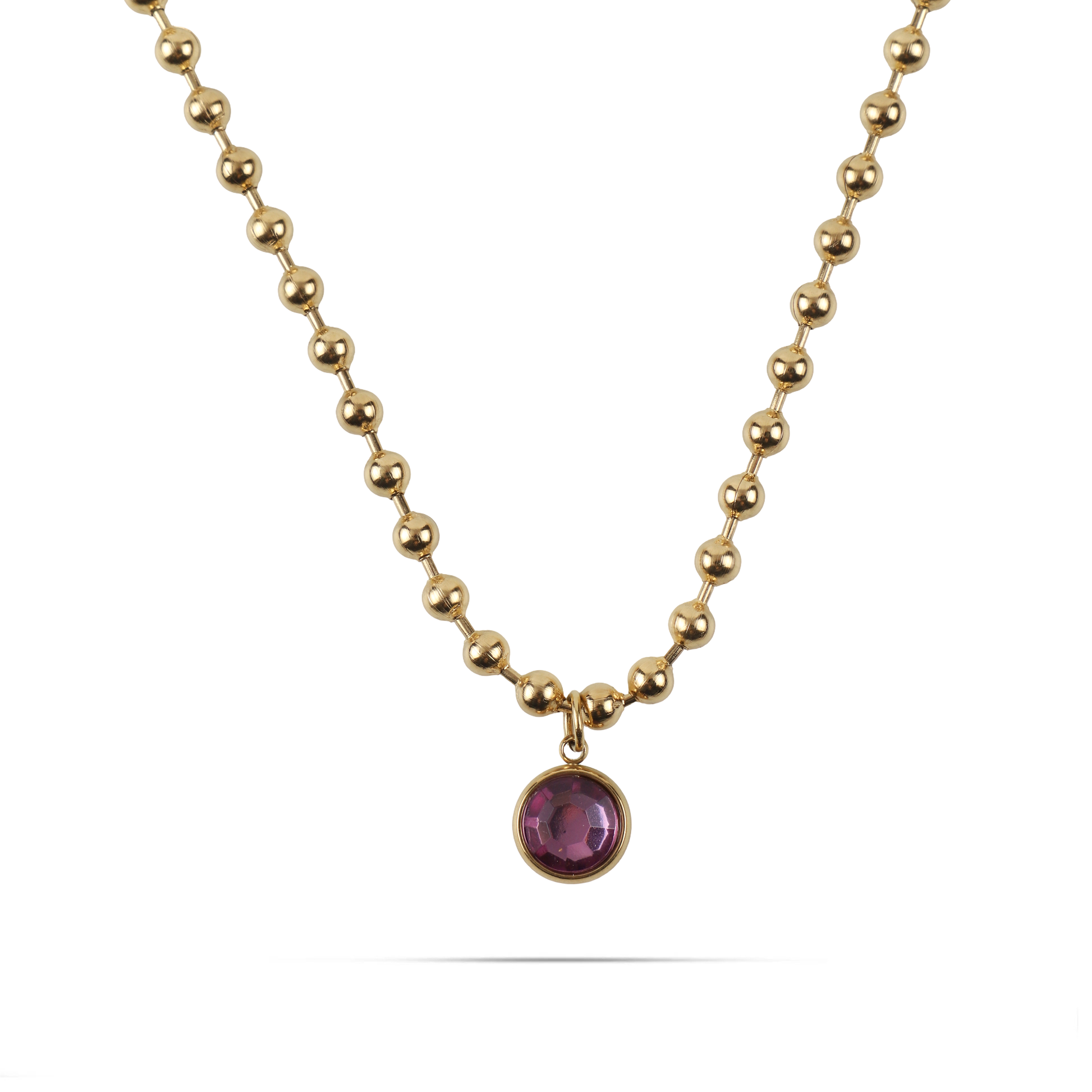 Κολιέ από ανοξείδωτο ατσάλι με ιδιαίτερη, κομψή αλυσίδα και μενταγιόν διακοσμημένο με μία λαμπερή πέτρα Zircon σε μωβ χρώμα που χαρίζει μυστήριο και κομψότητα. Η ανθεκτική κατασκευή από ανοξείδωτο ατσάλι εξασφαλίζει ότι το κόσμημα διατηρεί τη λάμψη του στον χρόνο, καθιστώντας το ιδανικό τόσο για καθημερινή χρήση όσο και για ιδιαίτερες περιστάσεις. Ένα εκλεπτυσμένο και διαχρονικό κόσμημα που συνδυάζει στυλ και λάμψη, ενώ αποτελεί και μια υπέροχη επιλογή δώρου για αγαπημένα πρόσωπα.