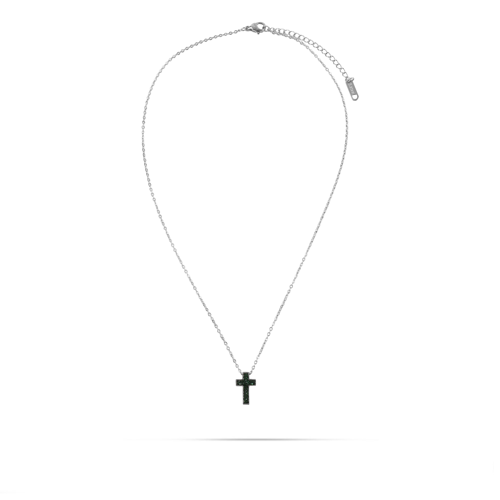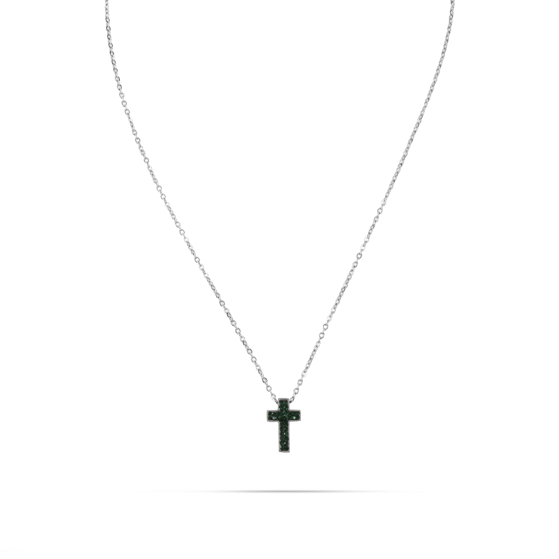 Κολιέ από ανοξείδωτο ατσάλι σε ασημί χρώμα με μενταγιόν σταυρό διακοσμημένο με λαμπερές πέτρες Zircon. Το ανοξείδωτο ατσάλι εξασφαλίζει ανθεκτικότητα και διαχρονική λάμψη, καθιστώντας το ιδανικό για καθημερινή χρήση, ενώ παράλληλα προσδίδει μια μοντέρνα και κομψή αίσθηση. Ένα εκλεπτυσμένο κόσμημα που μπορεί να φορεθεί είτε μόνο του είτε σε συνδυασμό με άλλα κοσμήματα για ένα εντυπωσιακό αποτέλεσμα. Ιδανική επιλογή και ως δώρο για τα αγαπημένα σας πρόσωπα.
