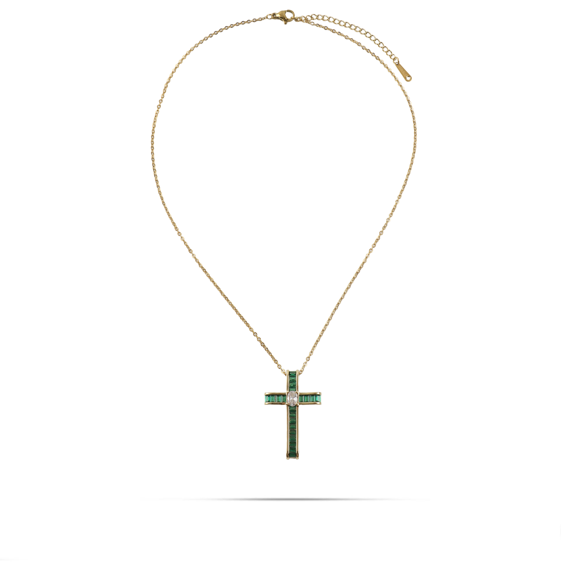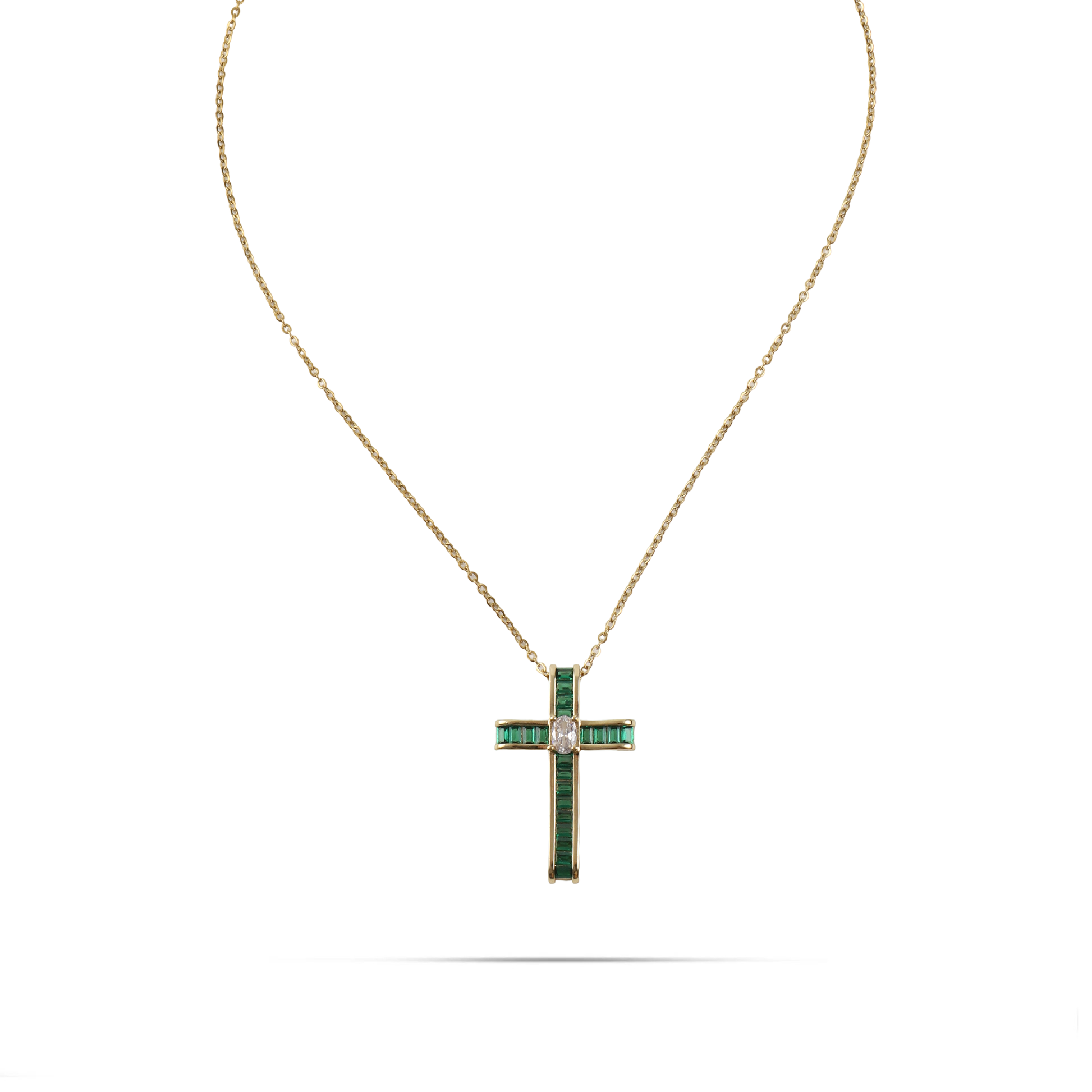 Κολιέ σταυρός με πέτρες ζιργκόν Mar and Mar Nefeli Cross (Green) από ανοξείδωτο ατσάλι