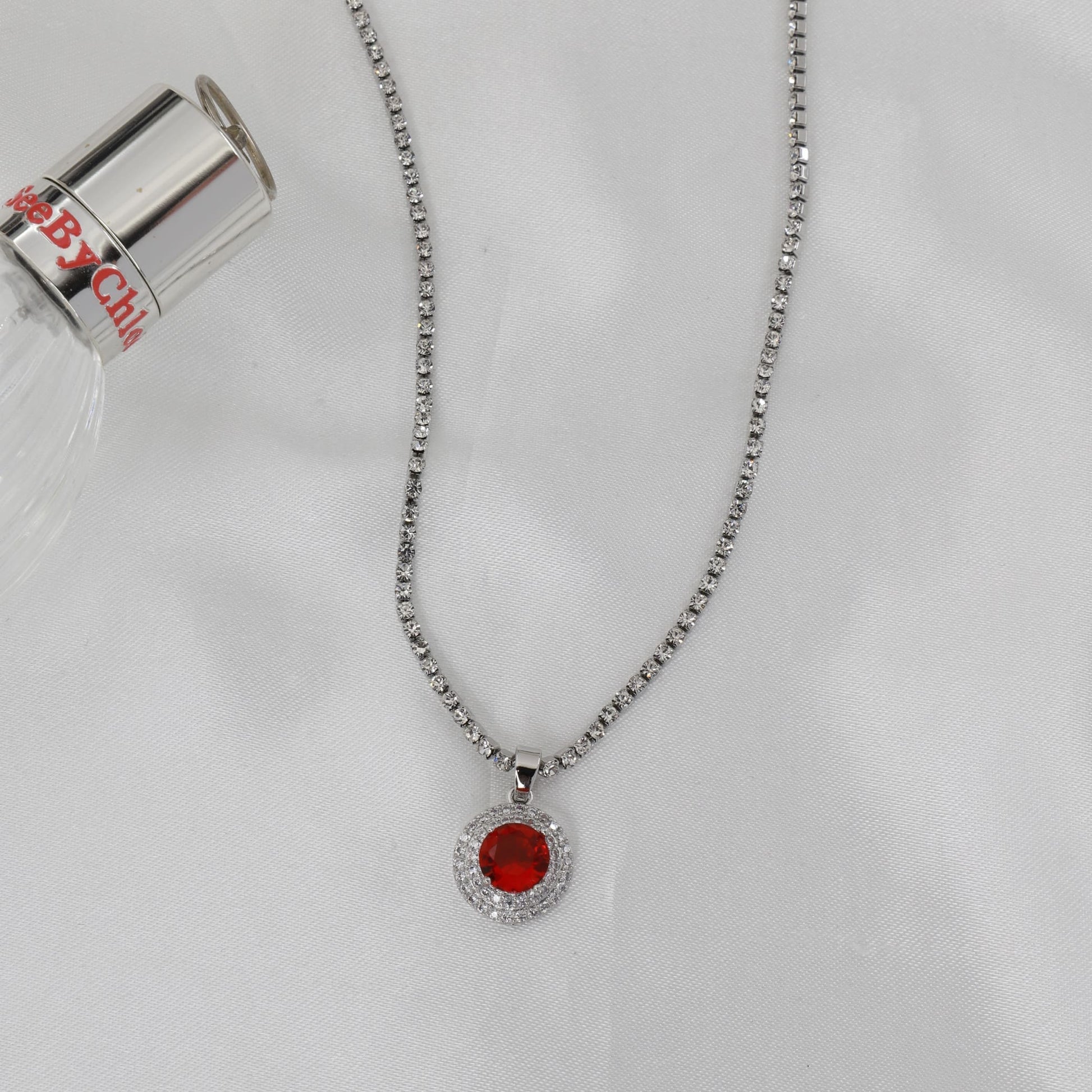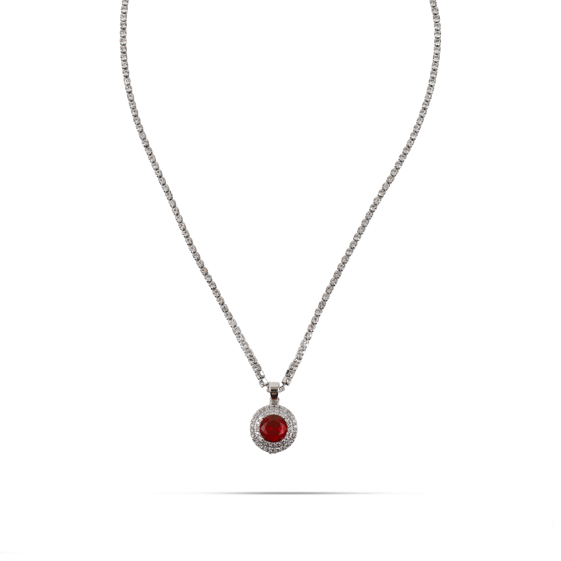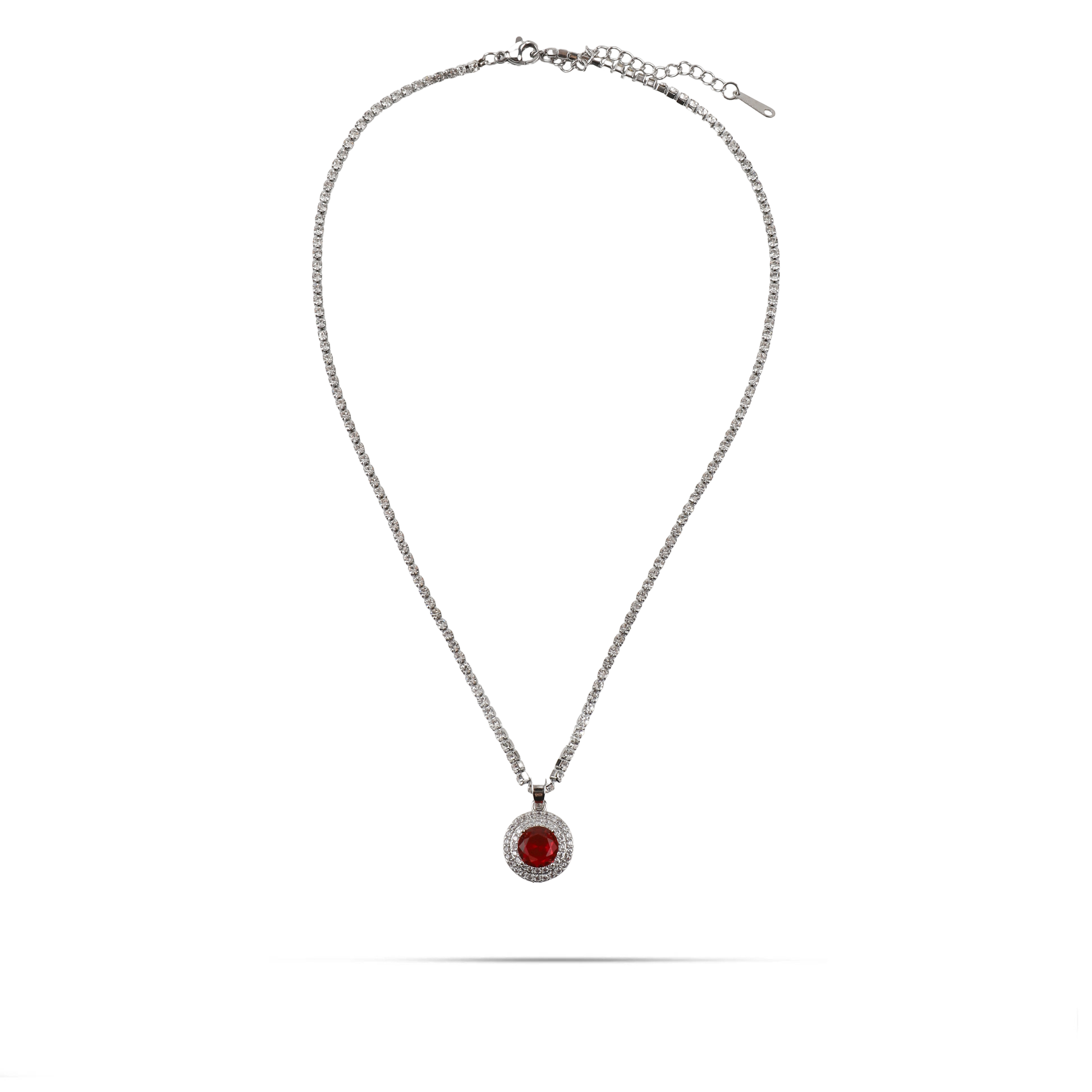 Κολιέ Tennis Riviera λαιμού σε ασημί χρώμα, διακοσμημένο με λαμπερές λευκές πέτρες Zircon που χαρίζουν εκθαμβωτική λάμψη, ενώ το κεντρικό μενταγιόν φιλοξενεί μία εντυπωσιακή κόκκινη πέτρα Zircon που κλέβει όλα τα βλέμματα. Ο συνδυασμός της φωτεινότητας των λευκών πετρών με την έντονη κόκκινη απόχρωση δημιουργεί ένα κόσμημα με δυναμικό και κομψό χαρακτήρα. Ιδανικό για βραδινές εμφανίσεις, επίσημες περιστάσεις ή για να προσθέσετε μια ξεχωριστή και λαμπερή πινελιά στο καθημερινό σας στυλ.