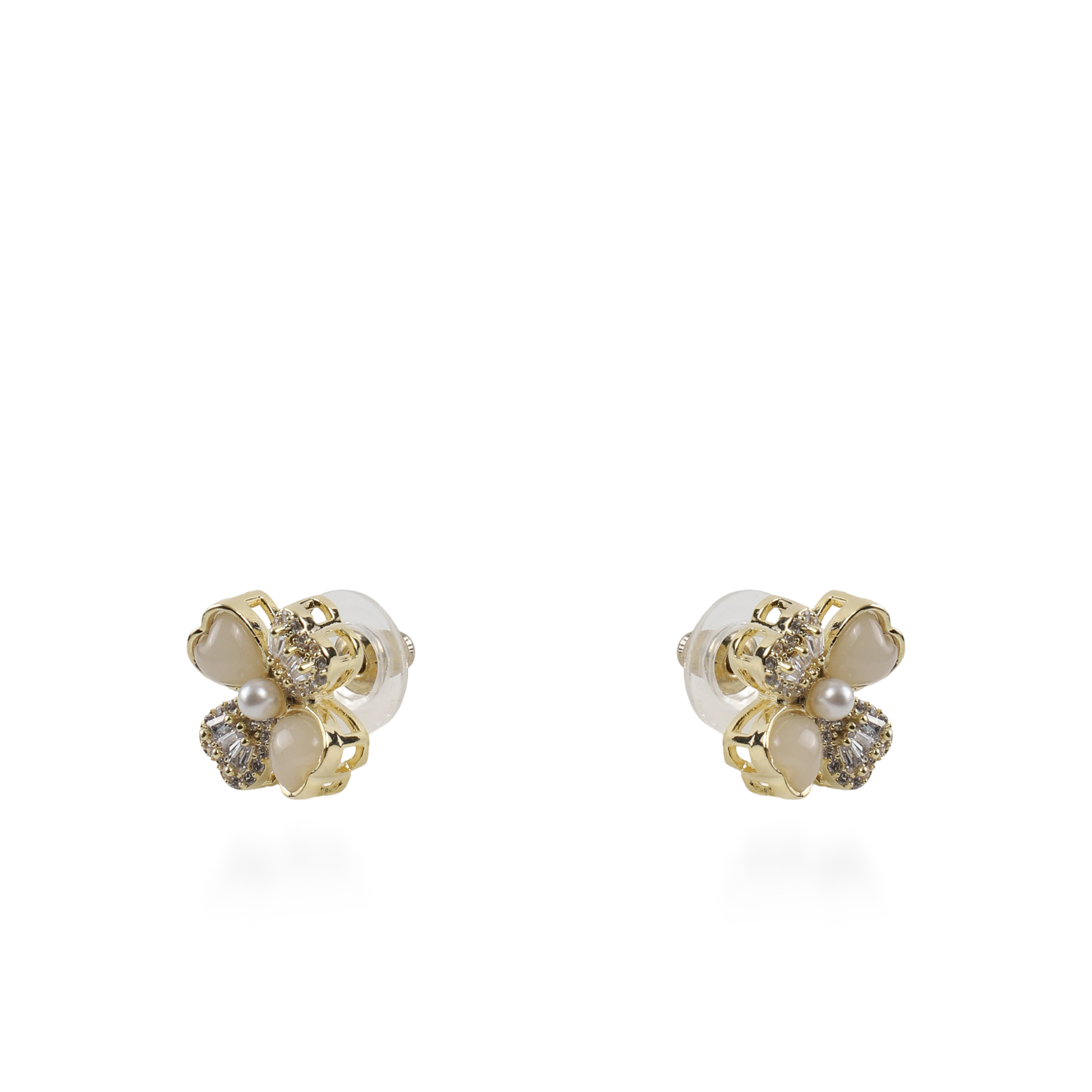 Σκουλαρίκια καρφωτά λουλούδια με ζιργκόν και πέρλες Mar and Mar Loire