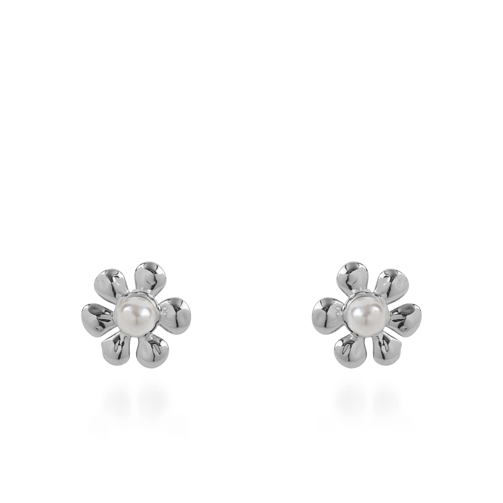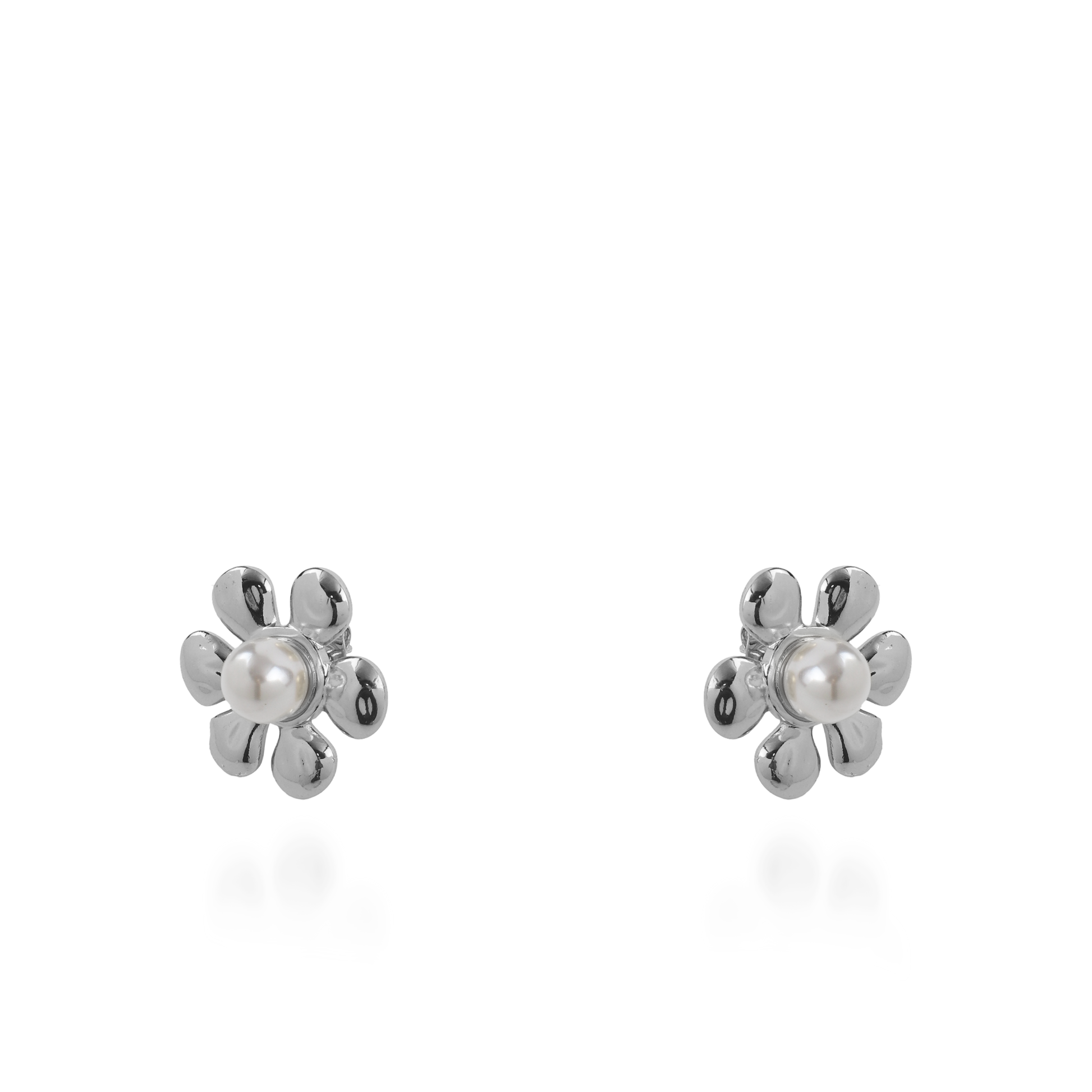 Σκουλαρίκια καρφωτά λουλούδια με πέρλα Mar and Mar Bellisa Silver από ανοξείδωτο ατσάλι