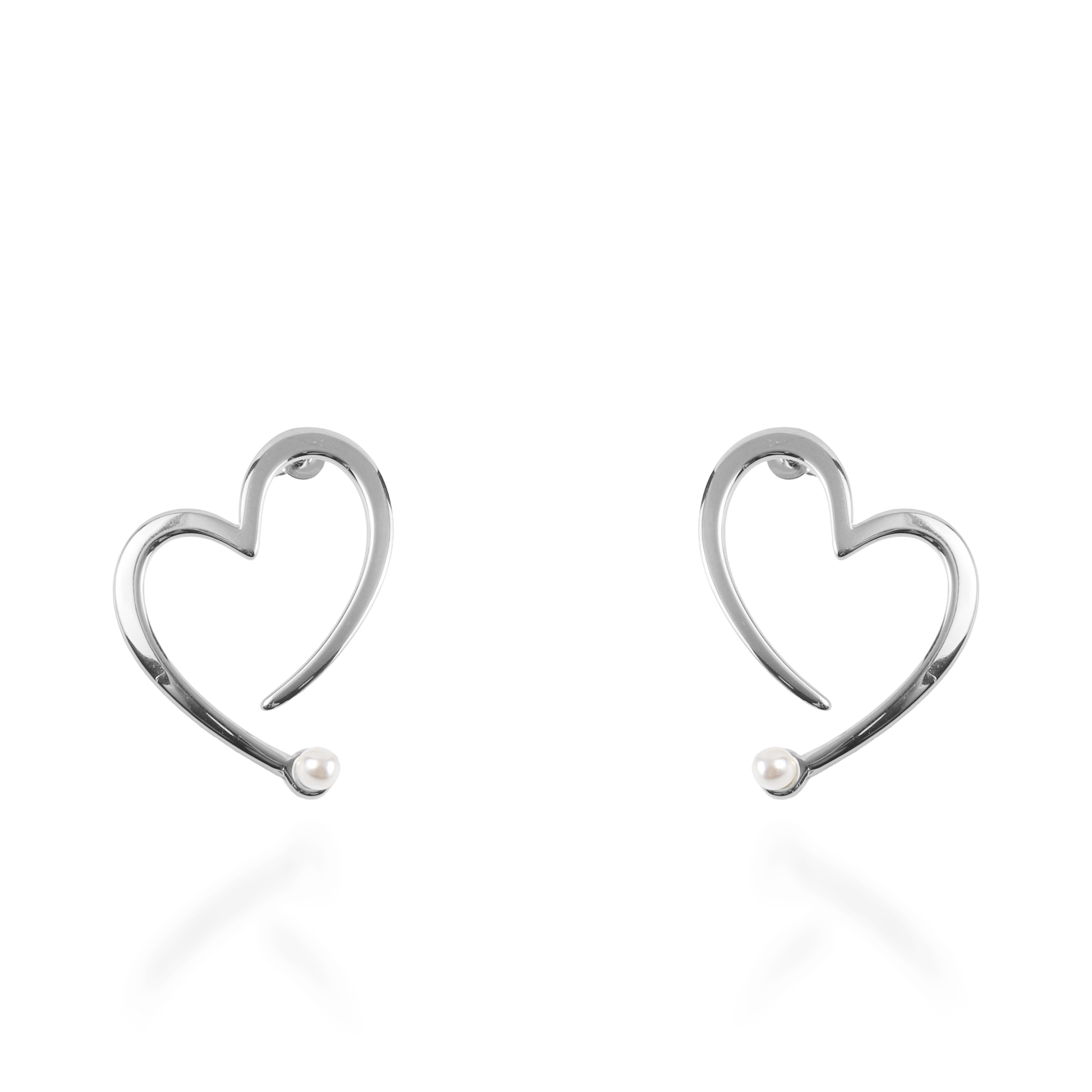 Σκουλαρίκια καρφωτά Mar and Mar Hearts Pearl Silver από ανοξείδωτο ατσάλι