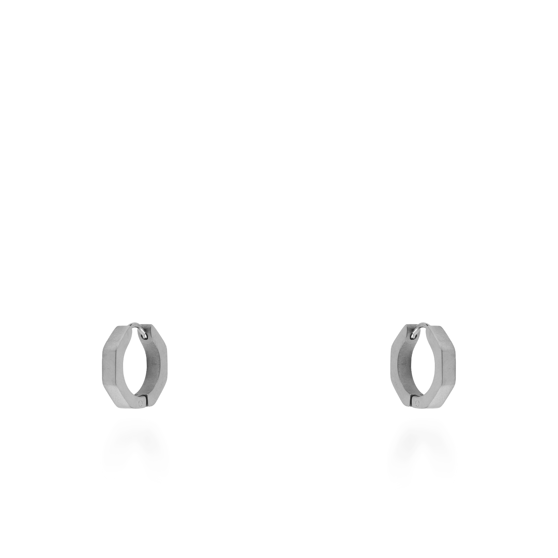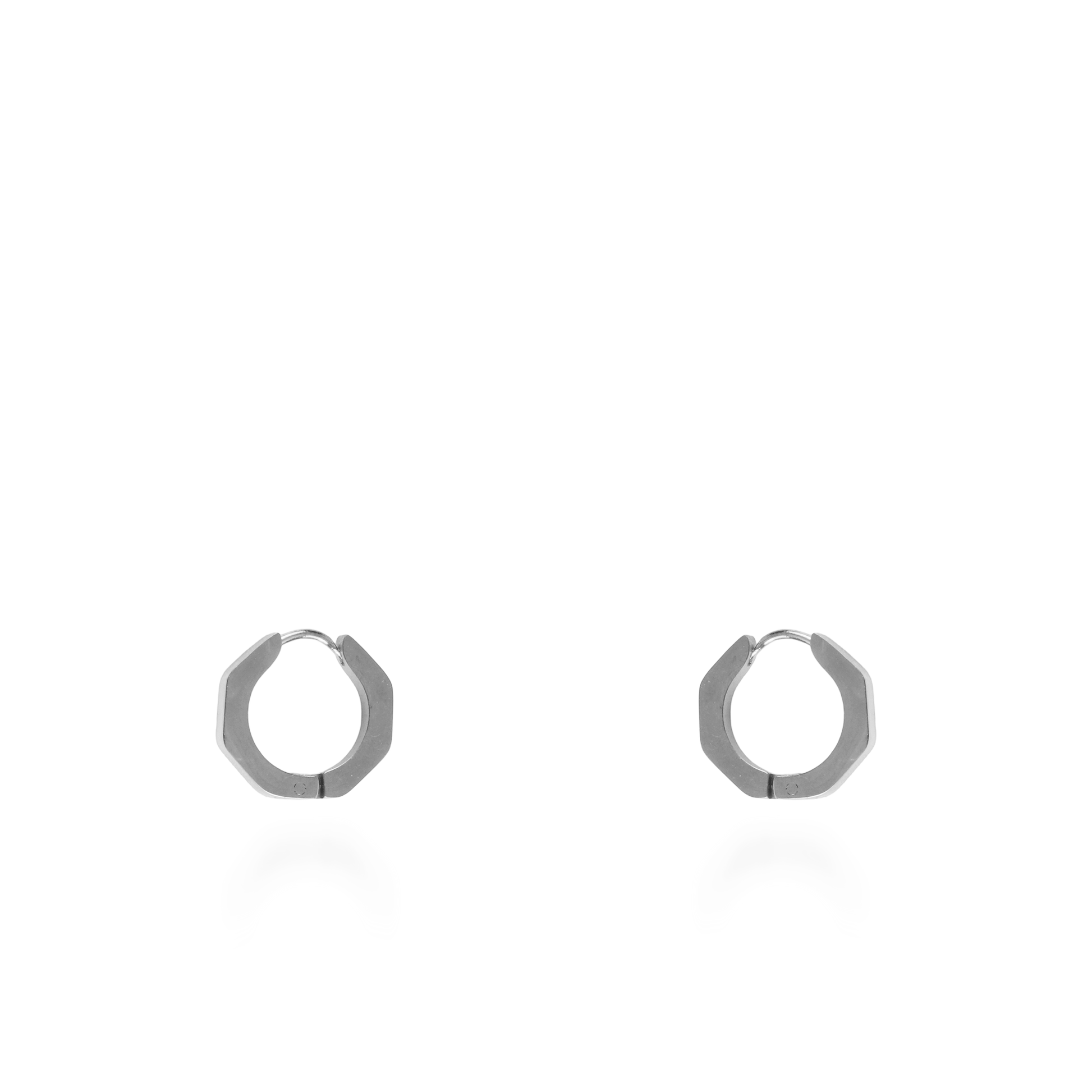 Σκουλαρίκια κρίκοι polygon σε ασημί, από ανοξείδωτο ατσάλι, με καθαρές γραμμές και μοντέρνα αισθητική. Το διακριτικό ασημί τους χρώμα τα καθιστά ευέλικτα και εύκολα συνδυάσιμα με κάθε εμφάνιση, ενώ η ανθεκτικότητά τους τα κάνει ιδανικά για καθημερινή χρήση.