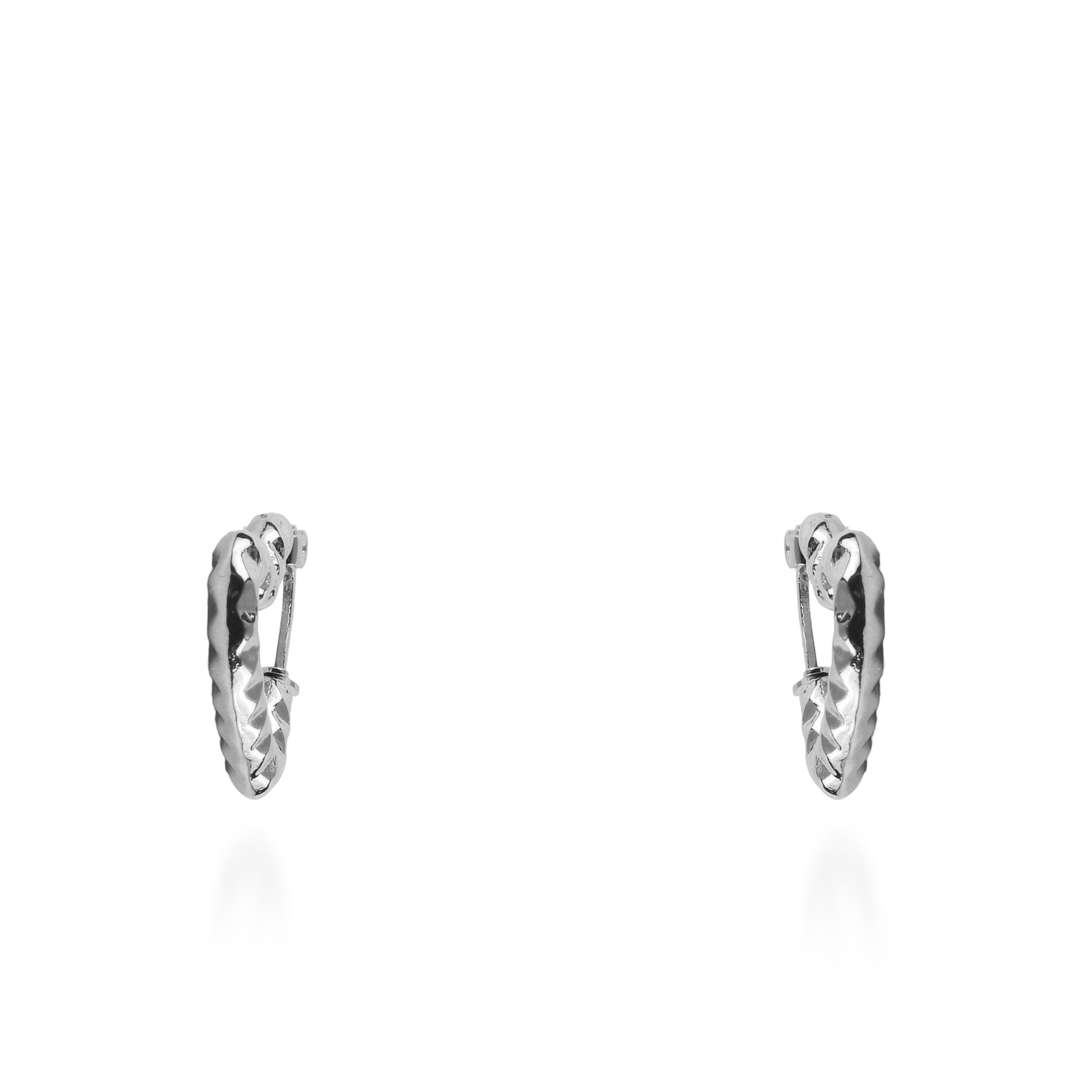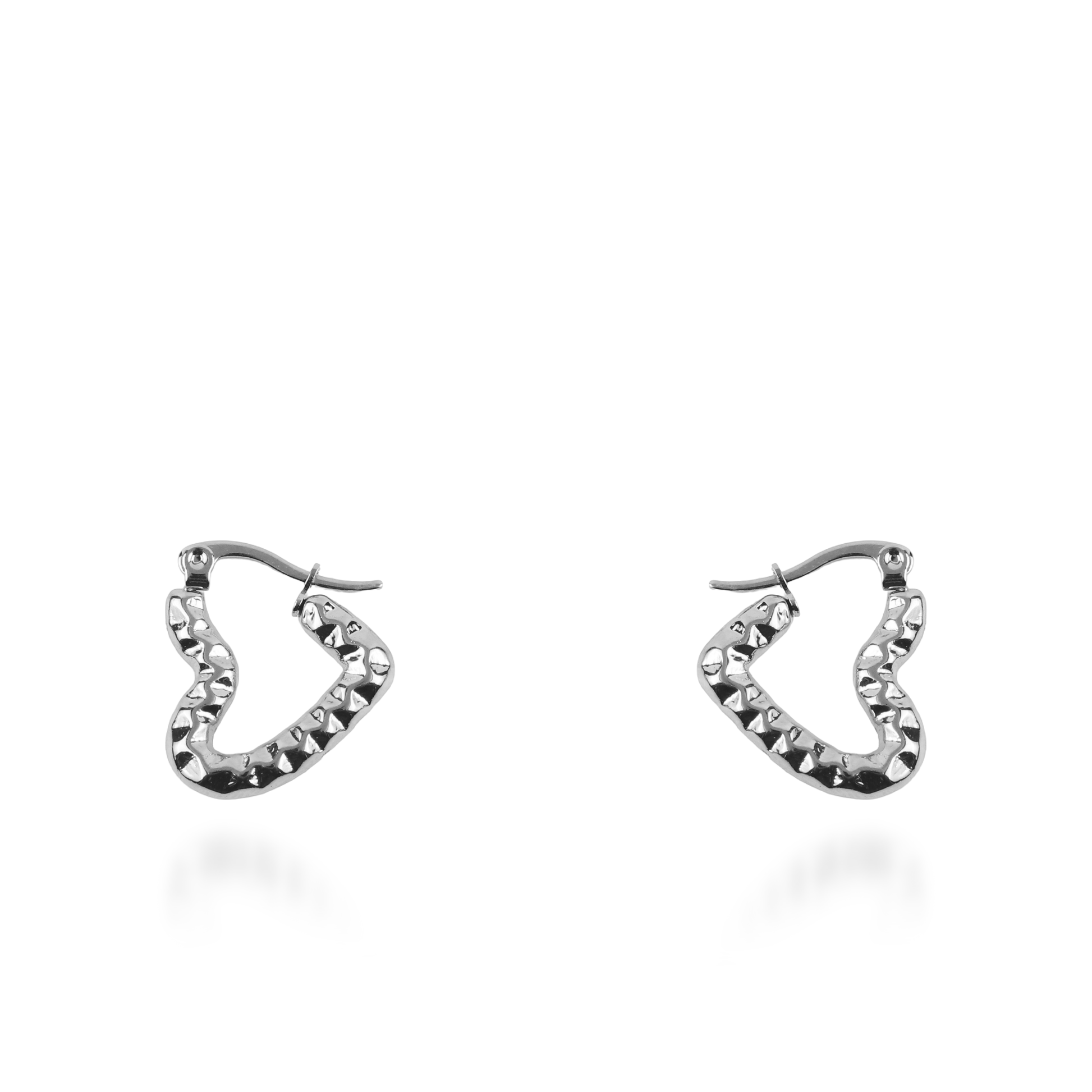 Τα σκουλαρίκια κρίκοι Mar and Mar Amary σε ασημί χρώμα επαναπροσδιορίζουν τον ρομαντισμό με μια σύγχρονη, αρχιτεκτονική ματιά, καθώς ο σχεδιασμός τους σχηματίζει μια διακριτική και κομψή καρδιά. Η έντονη ανάγλυφη υφή τους, που θυμίζει σφυρήλατο μέταλλο, δημιουργεί ένα εντυπωσιακό παιχνίδισμα με το φως και μια αίσθηση «industrial chic» πολυτέλειας. Κατασκευασμένα από υψηλής ποιότητας ανοξείδωτο ατσάλι για μέγιστη ανθεκτικότητα και ψυχρή, καθαρή λάμψη, αποτελούν ένα μοναδικό statement κόσμημα που συνδυάζει τον δυναμισμό με τη θηλυκότητα, ιδανικό για να προσθέσετε χαρακτήρα σε κάθε σας εμφάνιση. 💎