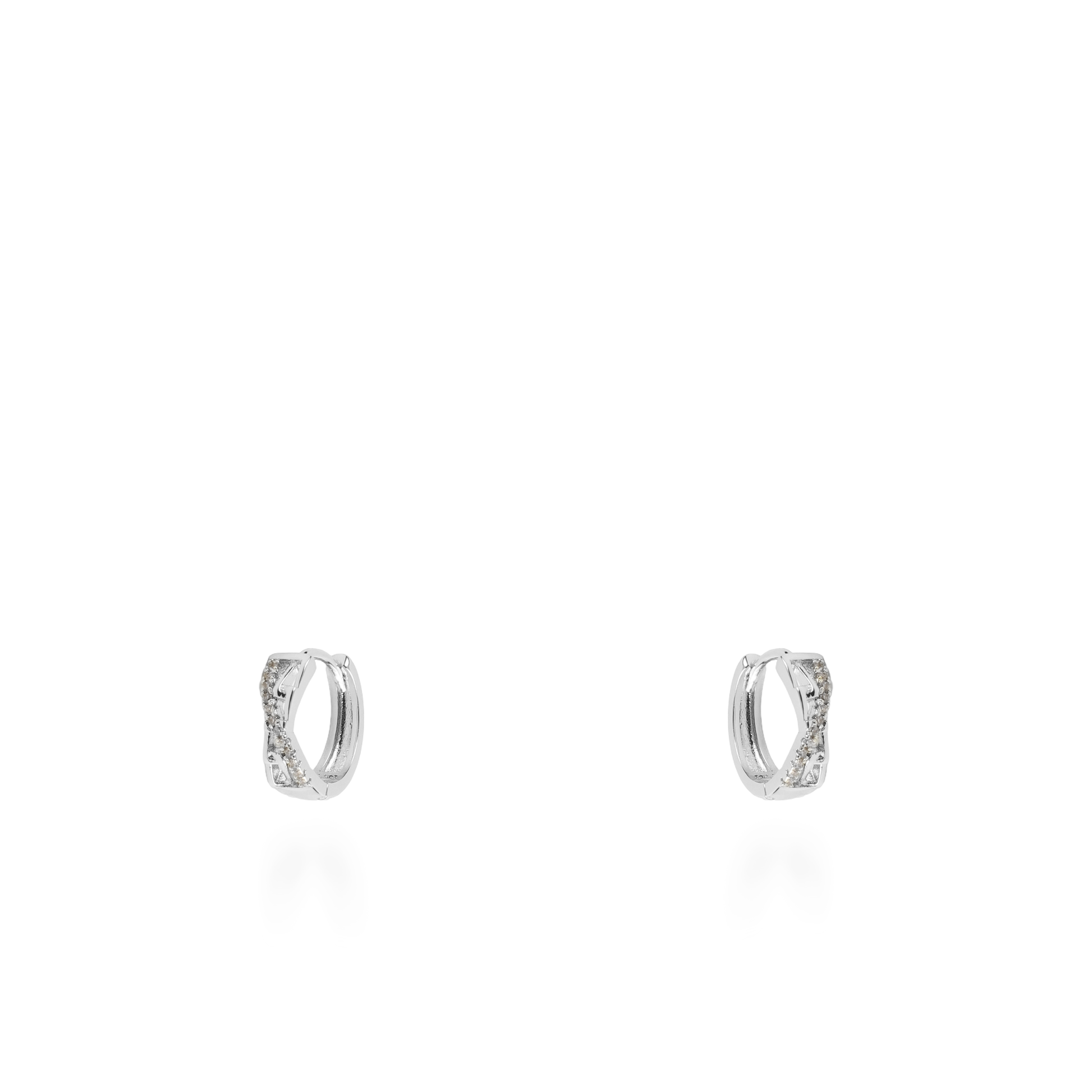 Σκουλαρίκια κρίκοι με ζιργκόν και σχέδιο χιαστί Mar and Mar Elva X Silver