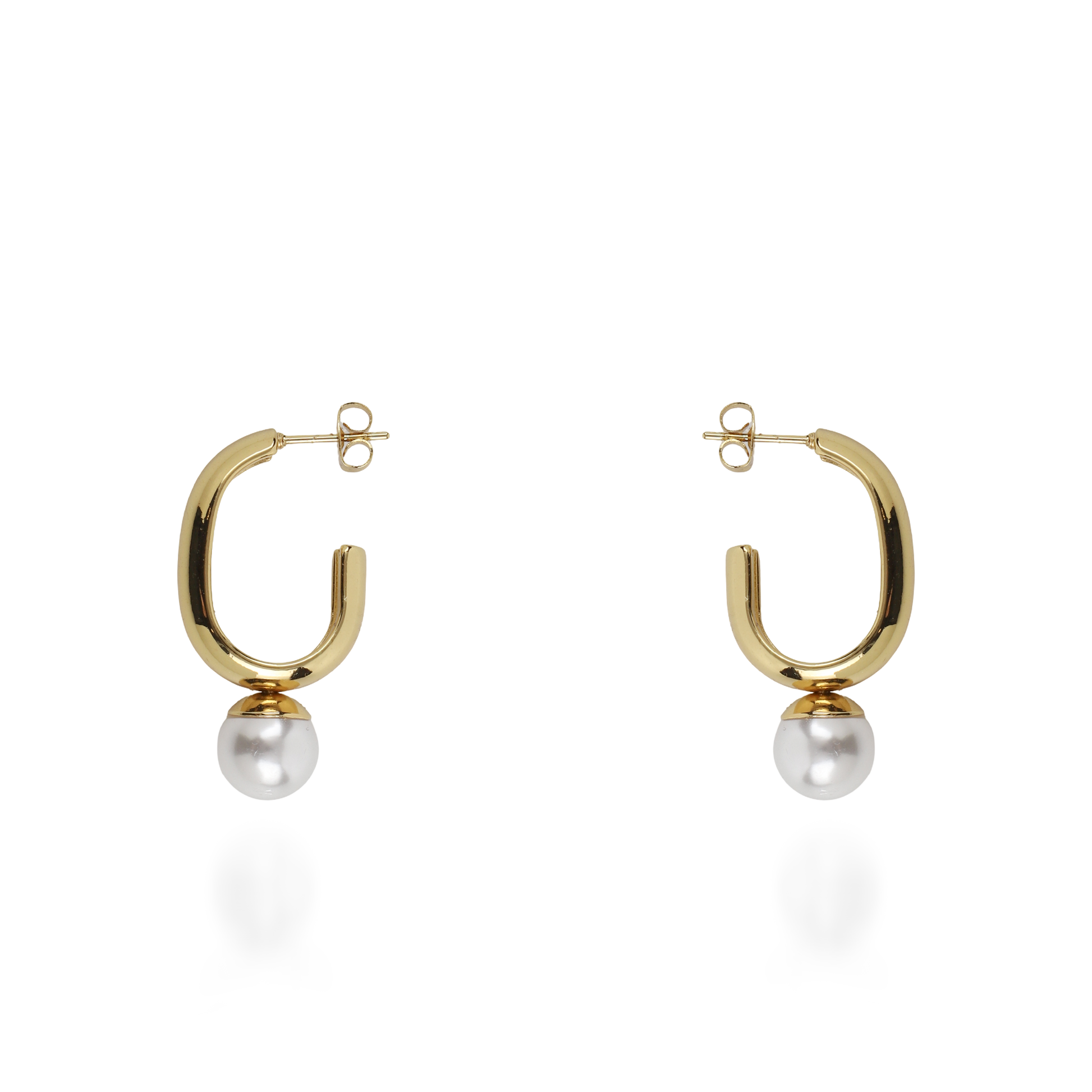 Τα σκουλαρίκια Mar and Mar Zella σε χρυσό χρώμα συνδυάζουν τη διαχρονική κομψότητα της πέρλας με τον λαμπερό χαρακτήρα του χρυσού τόνου. Ο κομψός κρίκος από ανοξείδωτο ατσάλι πλαισιώνει αρμονικά την πέρλα, δημιουργώντας ένα εκλεπτυσμένο κόσμημα που προσθέτει ζεστασιά και φινέτσα σε κάθε εμφάνιση. Ιδανική επιλογή για καθημερινές αλλά και πιο ιδιαίτερες στιγμές.