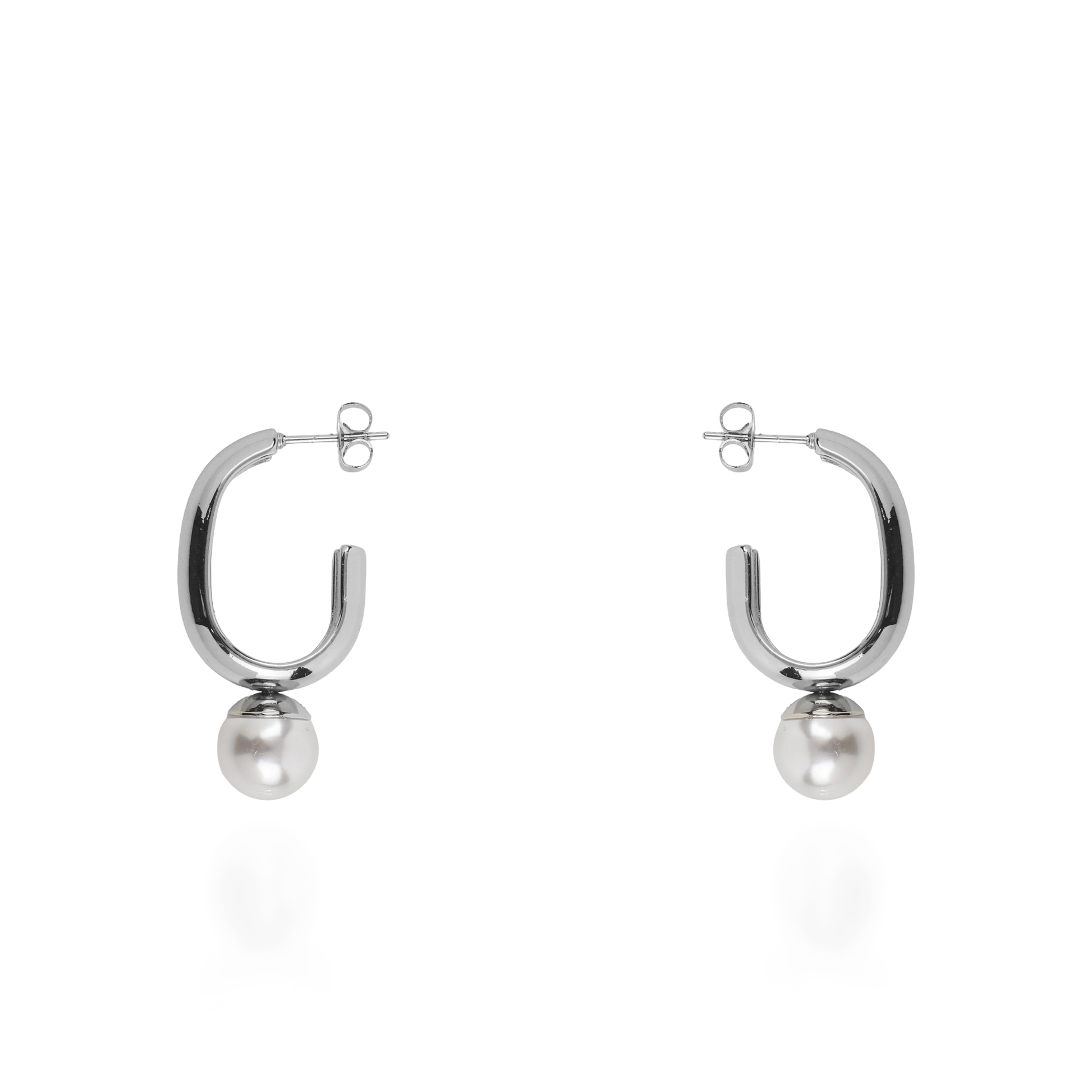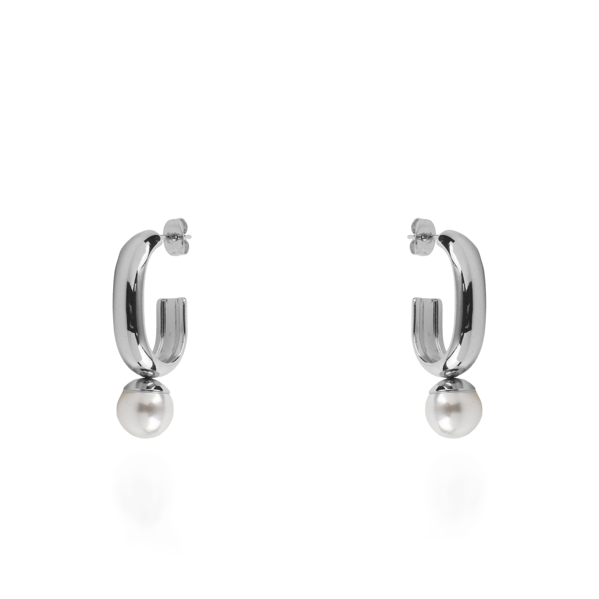 Σκουλαρίκια κρεμαστά με πέρλα Mar and Mar Zella Silver από ανοξείδωτο ατσάλι