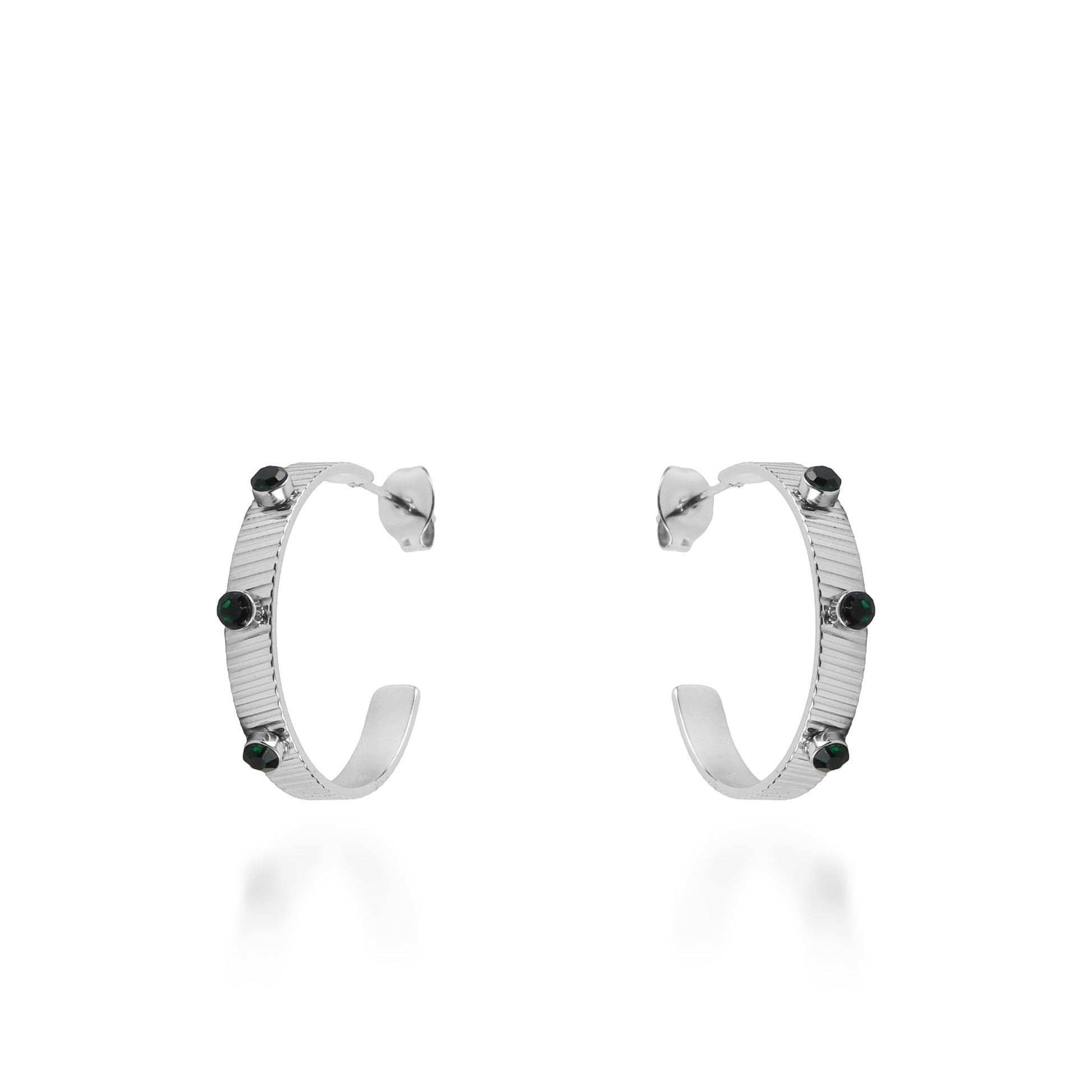Σκουλαρίκια κρίκοι με πέτρες ζιργκόν Mar and Mar Arcadia Green από ανοξείδωτο ατσάλι