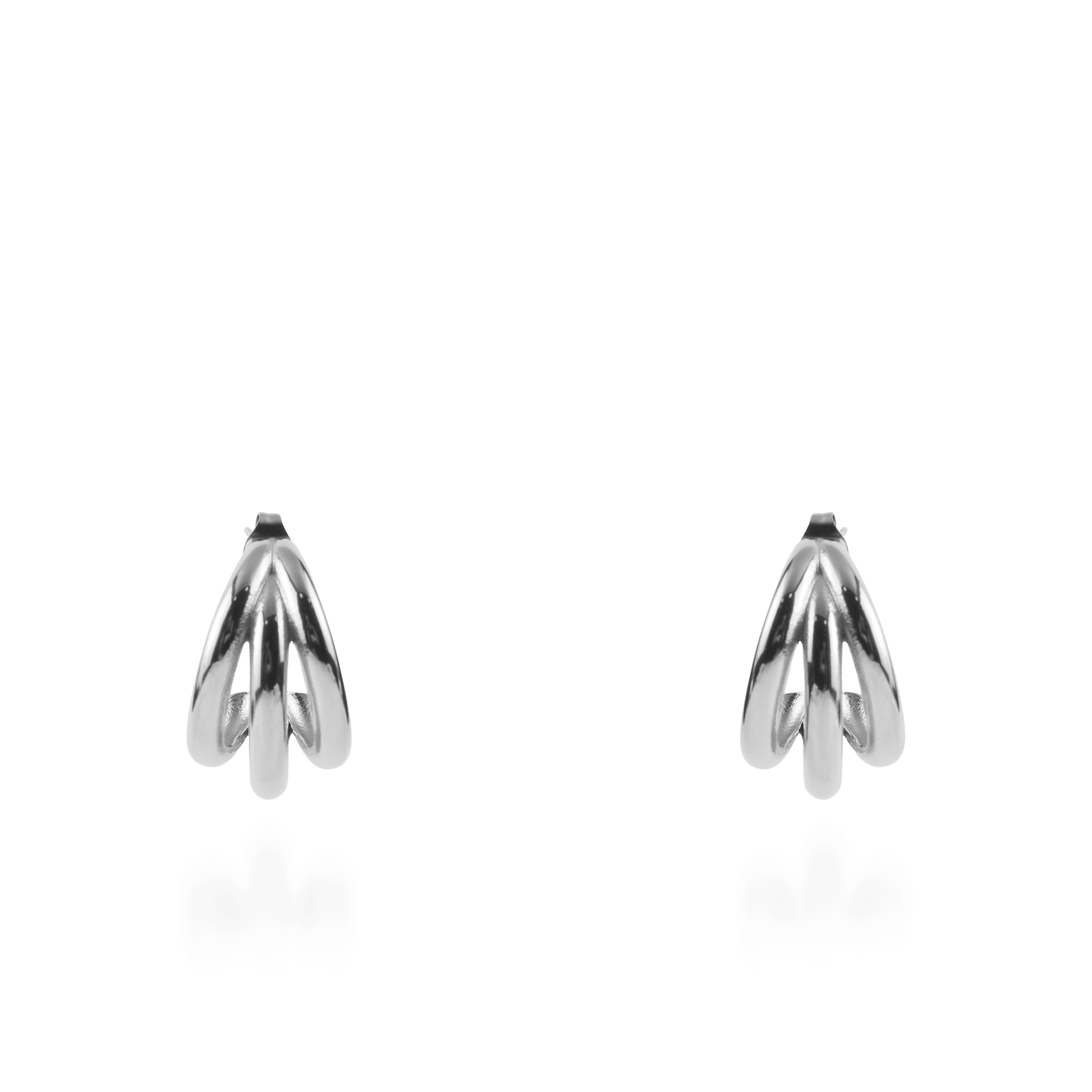Σκουλαρίκια κρίκοι με τριπλό σχέδιο Mar and Mar Ulina (2 cm) Silver από ανοξείδωτο ατσάλι