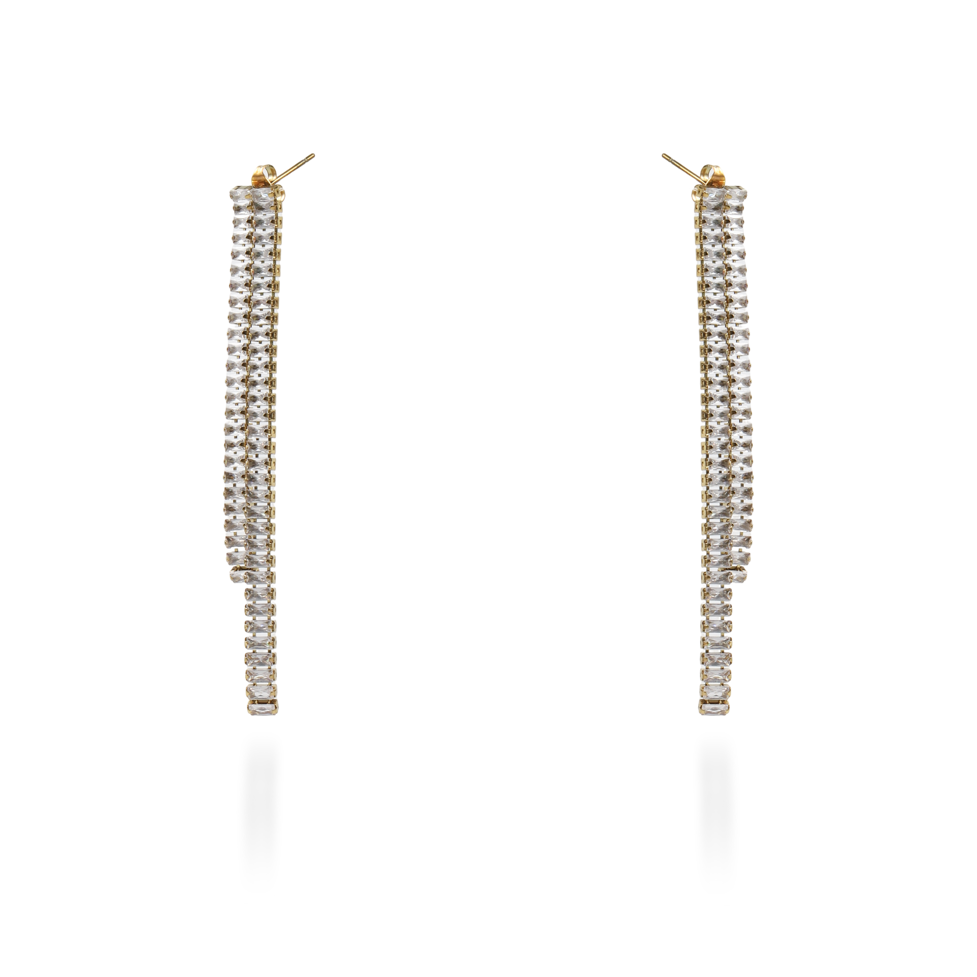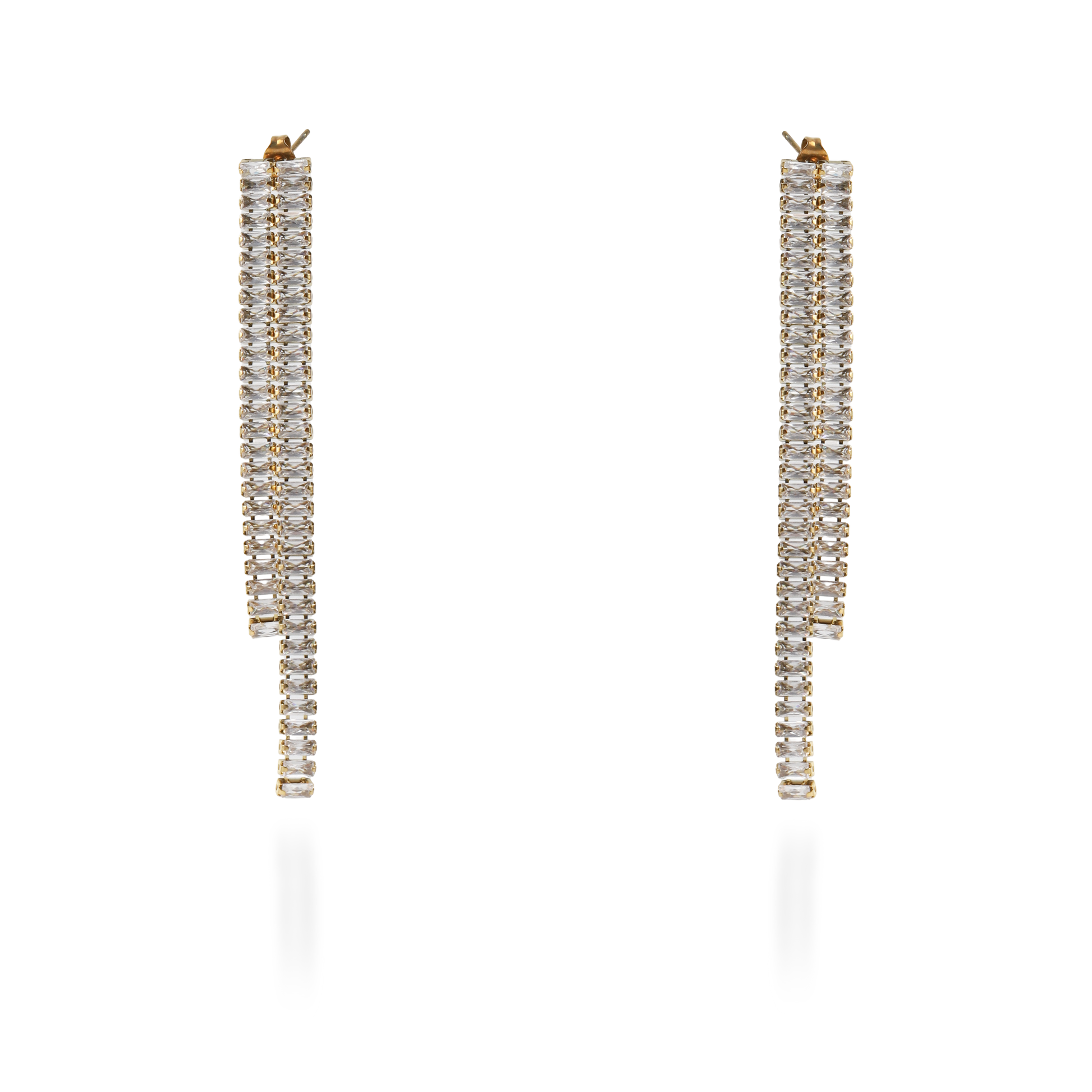 Σκουλαρίκια κρεμαστά από ανοξείδωτο ατσάλι, διακοσμημένα με λαμπερές λευκές πέτρες Baguette Zircon που χαρίζουν διαχρονική κομψότητα και εκλεπτυσμένη λάμψη. Η καθαρότητα του λευκού τονίζει τη φωτεινότητα του προσώπου και κάνει αυτά τα σκουλαρίκια ιδανική επιλογή για κάθε περίσταση, από τις καθημερινές εμφανίσεις μέχρι τις πιο ιδιαίτερες στιγμές.