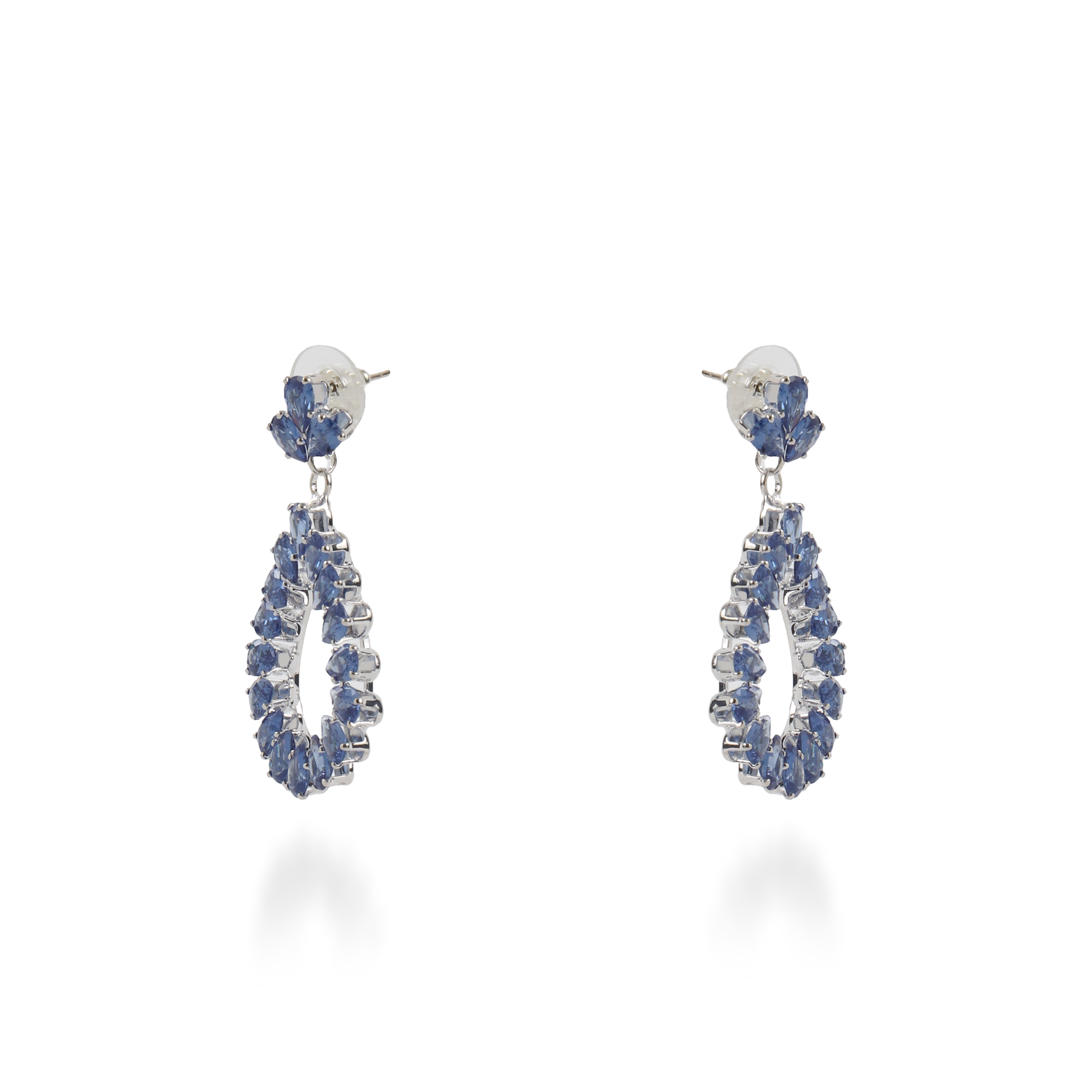 Σκουλαρίκια κρεμαστά σε σχήμα δάκρυ, διακοσμημένα με λαμπερές μπλε πέτρες Zircon, μια εκθαμβωτική επιλογή που χαρίζει κομψότητα και λάμψη σε κάθε σας εμφάνιση. Το διακριτικό τους σχέδιο σε συνδυασμό με τη βαθιά μπλε απόχρωση δημιουργεί ένα εντυπωσιακό και αριστοκρατικό αποτέλεσμα, ιδανικό για να φωτίσει το πρόσωπό σας. Αυτά τα σκουλαρίκια είναι η τέλεια επιλογή για επίσημες περιστάσεις και ιδιαίτερες εμφανίσεις όπου θέλετε να εντυπωσιάσετε με στυλ και φινέτσα.