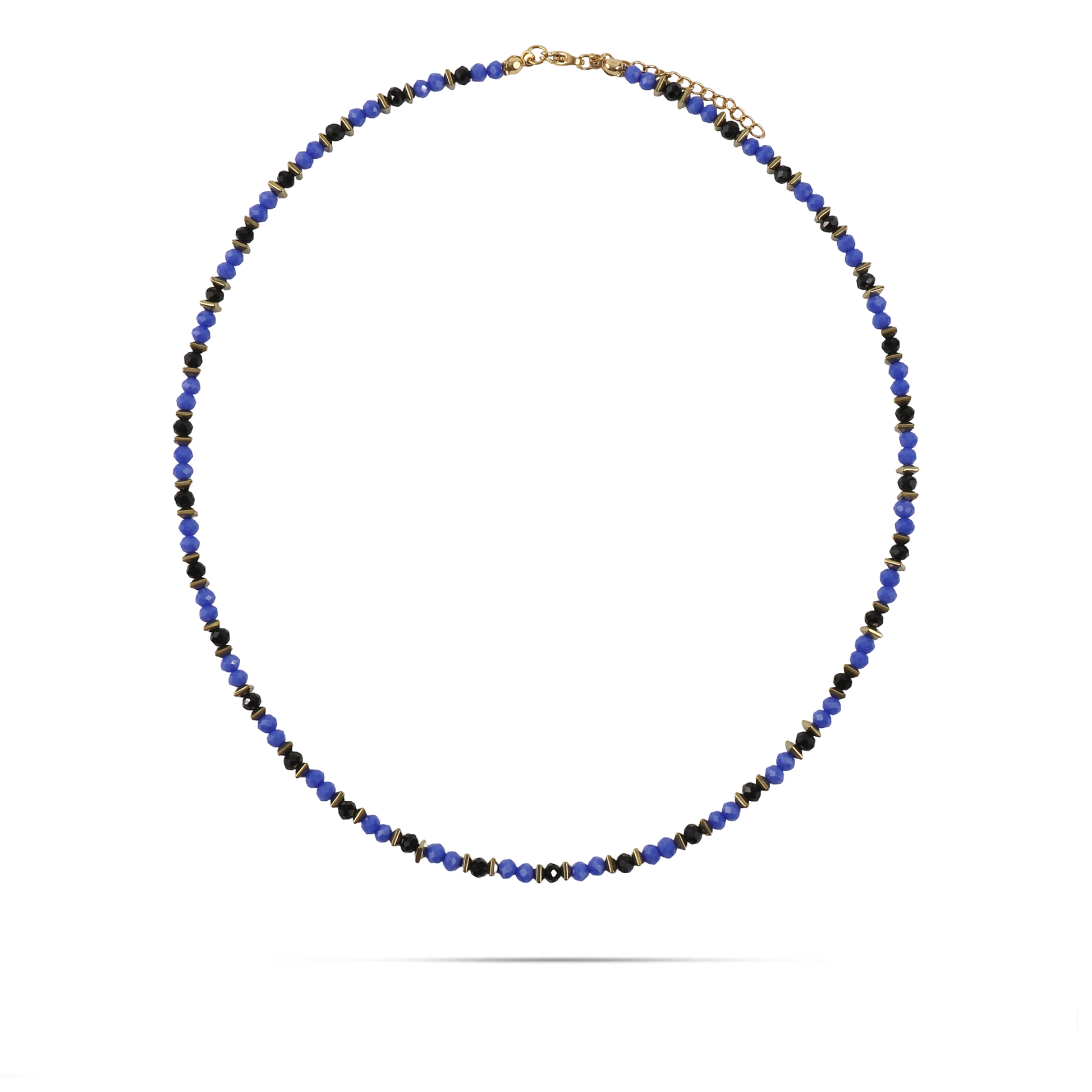 Αναδείξτε το στυλ σας με αυτό το εντυπωσιακό χειροποίητο κολιέ από ανοξείδωτο ατσάλι, διακοσμημένο με λαμπερές μπλε χάντρες και κομψές χρυσές λεπτομέρειες αιματίτη. Κάθε κομμάτι είναι φτιαγμένο στο χέρι με προσοχή στη λεπτομέρεια, προσφέροντας μια εκλεπτυσμένη και μοντέρνα αισθητική.Ιδανικό για γυναίκες που αγαπούν τη διακριτική πολυτέλεια και θέλουν να προσθέσουν μια πινελιά λάμψης σε κάθε εμφάνιση από το πρωινό ντύσιμο έως τη βραδινή έξοδο. Συνδυάστε το με άλλα κοσμήματα της συλλογής Mar and Mar Sherry για ένα αρμονικό και καλαίσθητο αποτέλεσμα. Κατασκευασμένο από ανθεκτικό ανοξείδωτο ατσάλι, διατηρεί τη λάμψη του με τον χρόνο.Ένα μοναδικό δώρο για εσάς ή για κάποιο αγαπημένο σας πρόσωπο που ξεχωρίζει για το στυλ και τη φινέτσα του. Αποκτήστε το τώρα και χαρίστε στον εαυτό σας την κομψότητα που αξίζετε!