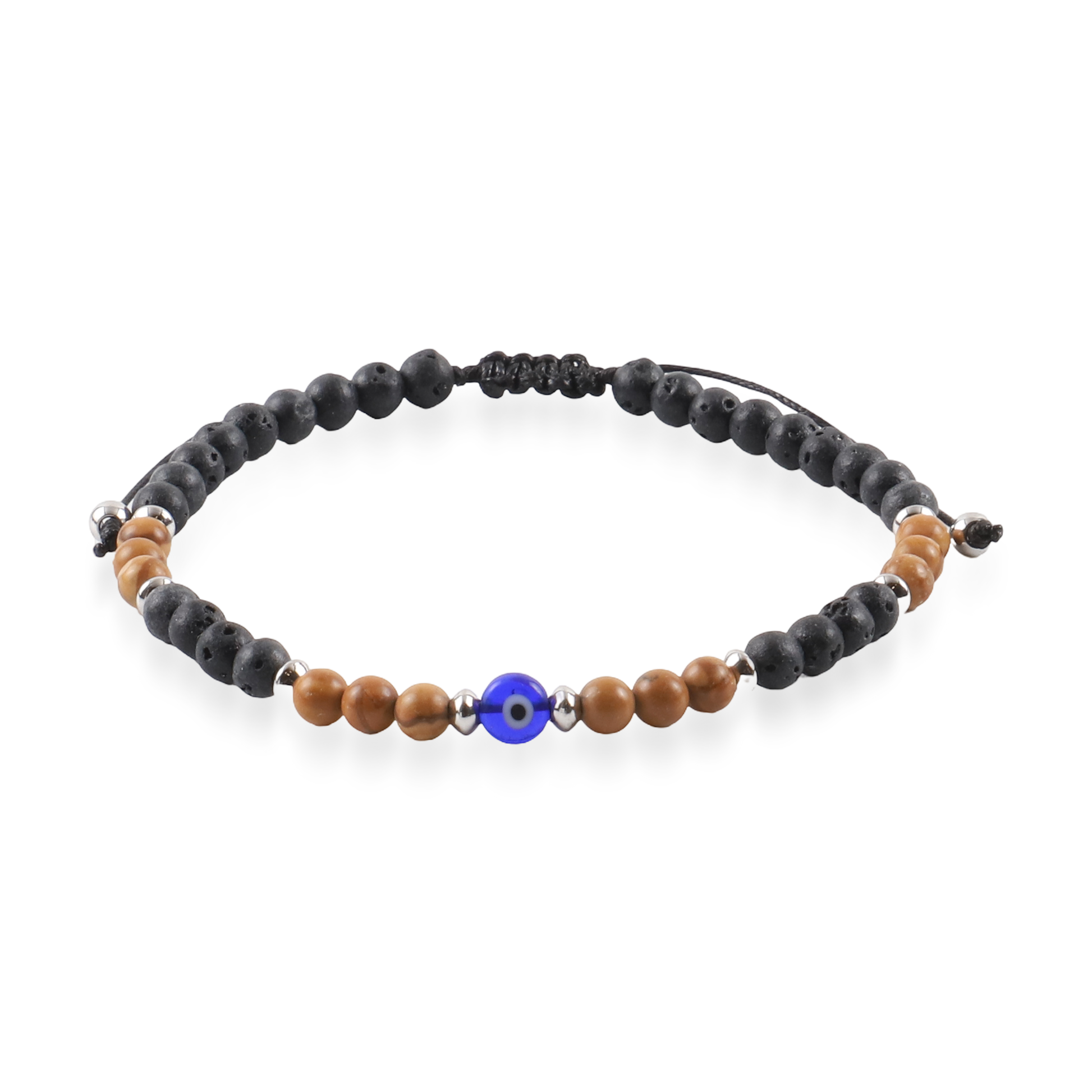 Ανδρικό χειροποίητο βραχιόλι με ματάκι Μουράνο Mar and Mar Brett με φυσικές ορυκτές πέτρες Ίασπη, Λάβα και Αιματίτης