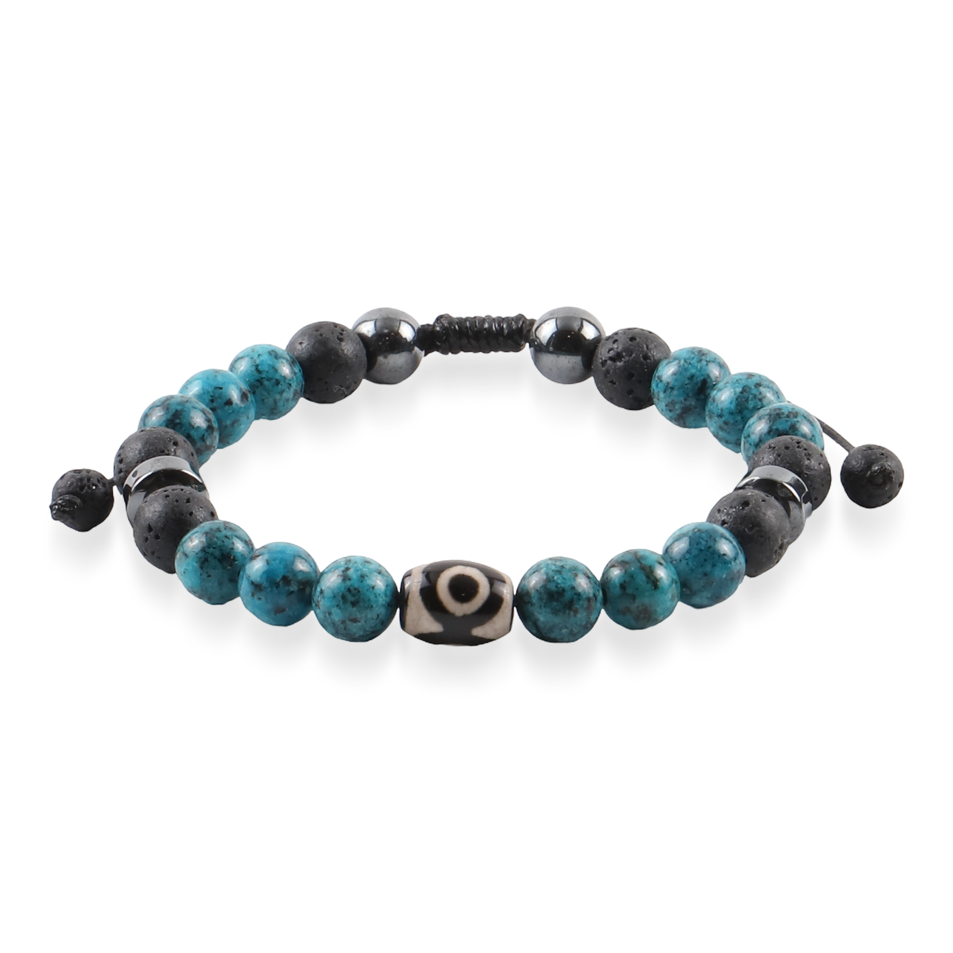 Ανδρικό χειροποίητο βραχιόλι με ματάκι Mar and Mar Elmer με φυσικές ορυκτές πέτρες Χαολίτη, Λάβας και Αιματίτη
