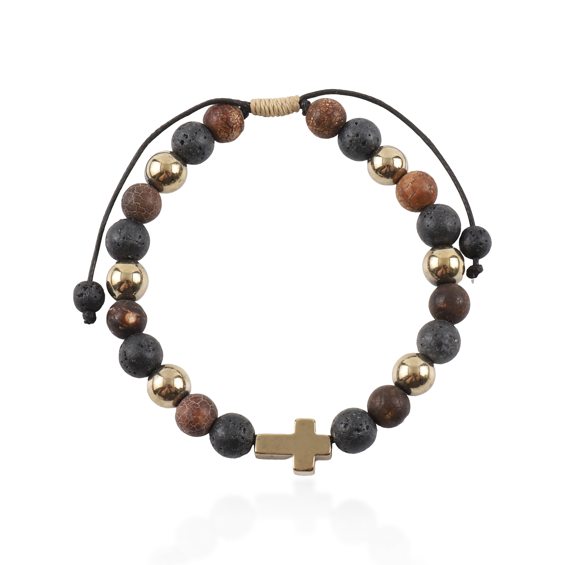 Ανδρικό χειροποίητο βραχιόλι με σταυρό Mar and Mar Clifford με φυσικές ορυκτές πέτρες Χαολίτη, Ίασπη, Λάβα και Ανοξείδωτο Ατσάλι