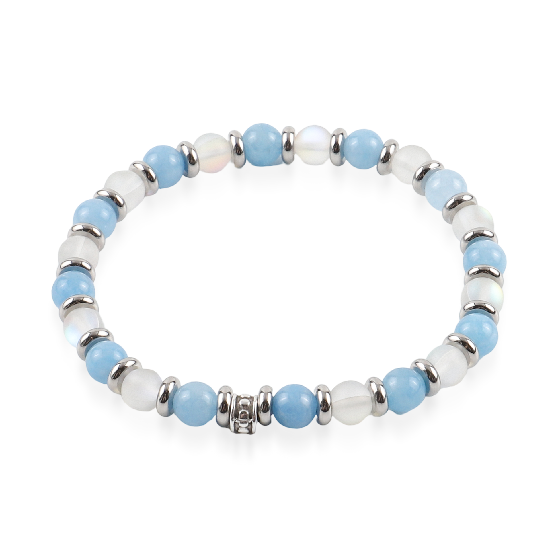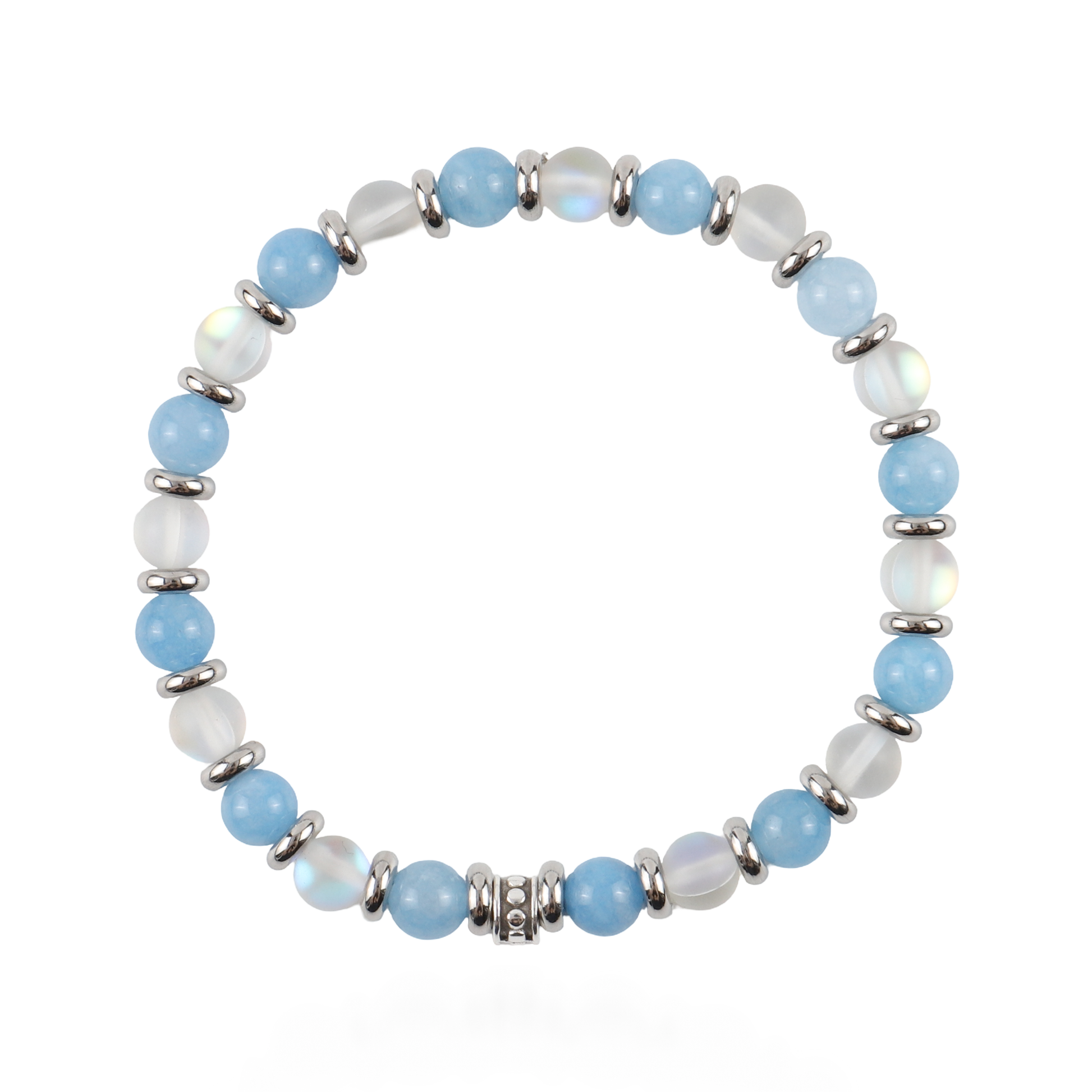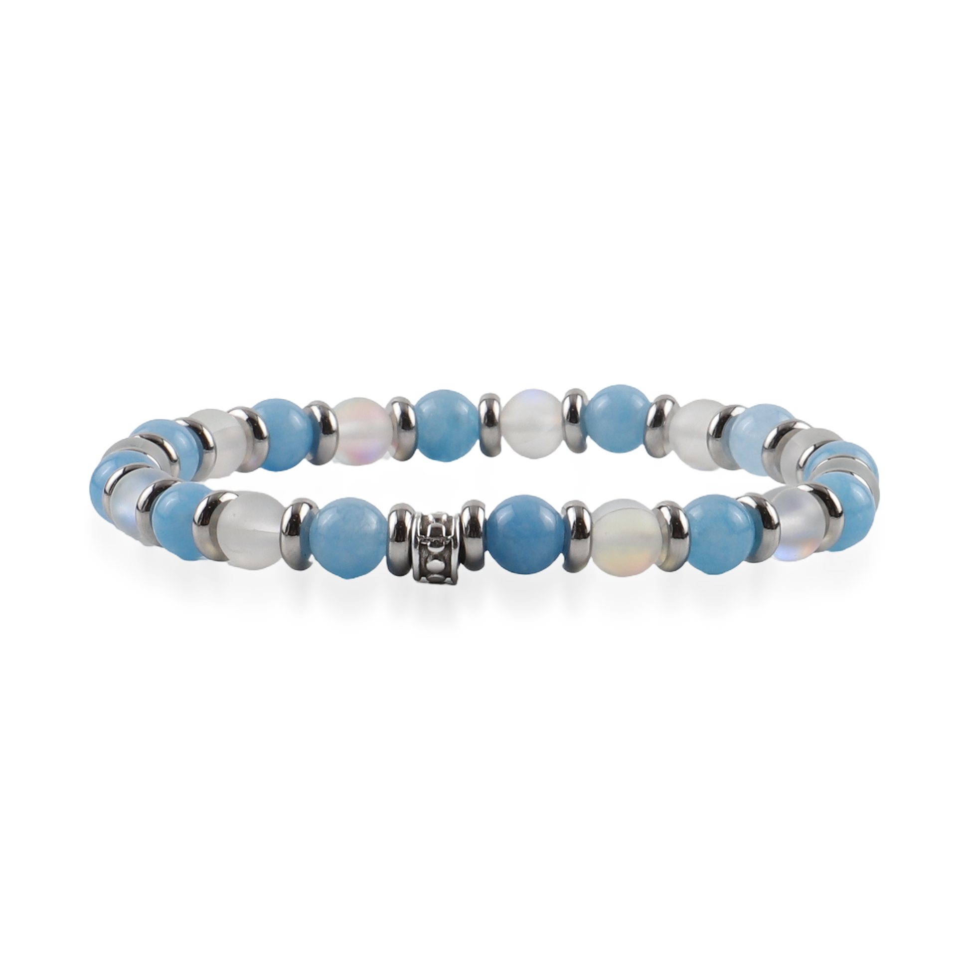 Ανδρικό χειροποίητο βραχιόλι Mar and Mar Vedant με φυσικές ορυκτές πέτρες Σπεκτρολίτη, Χαλαζία και ανοξείδωτο ατσάλι