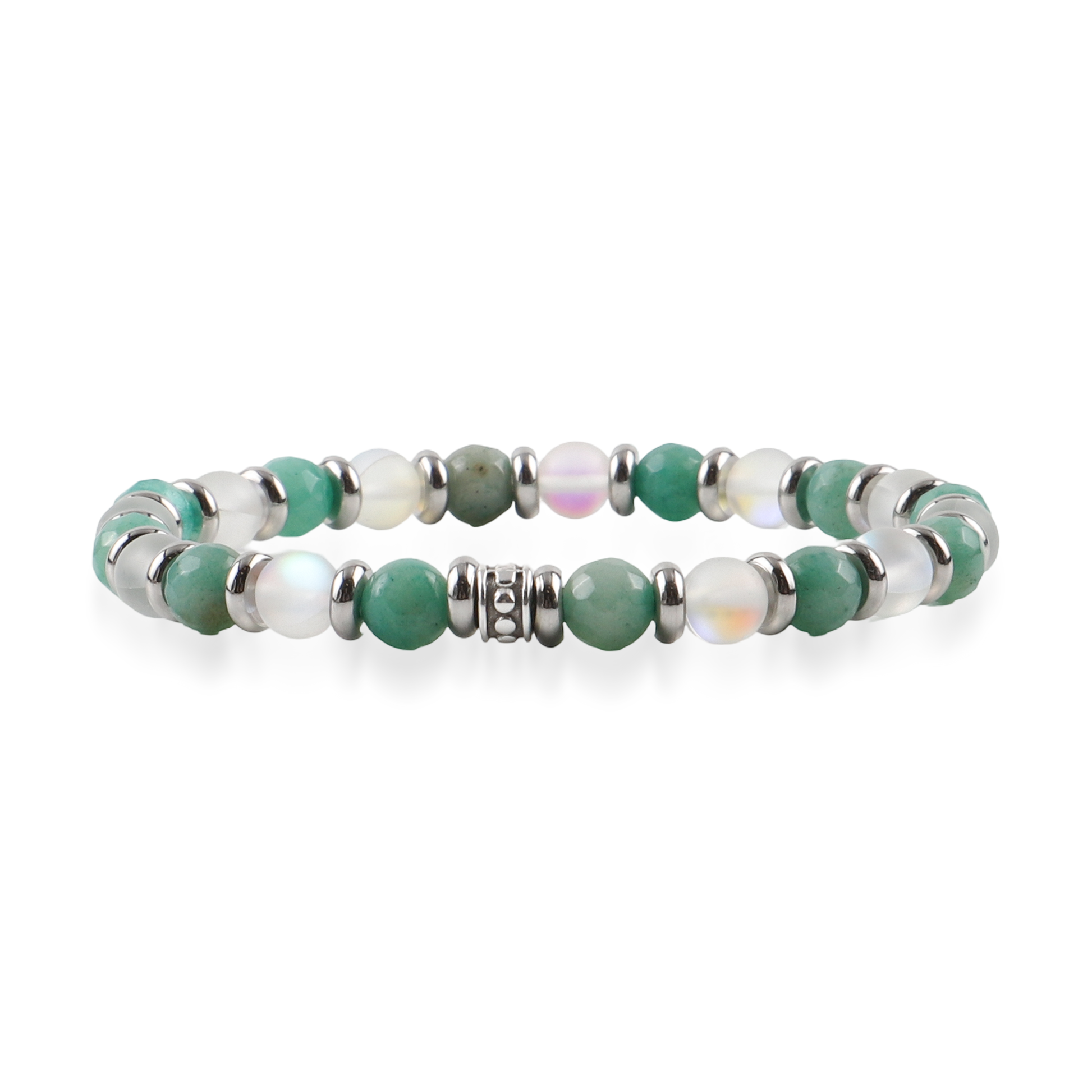 Ανδρικό χειροποίητο βραχιόλι Mar and Mar Vince με φυσικές ορυκτές πέτρες Σπεκτρολίτη, Χαλαζία και ανοξείδωτο ατσάλι