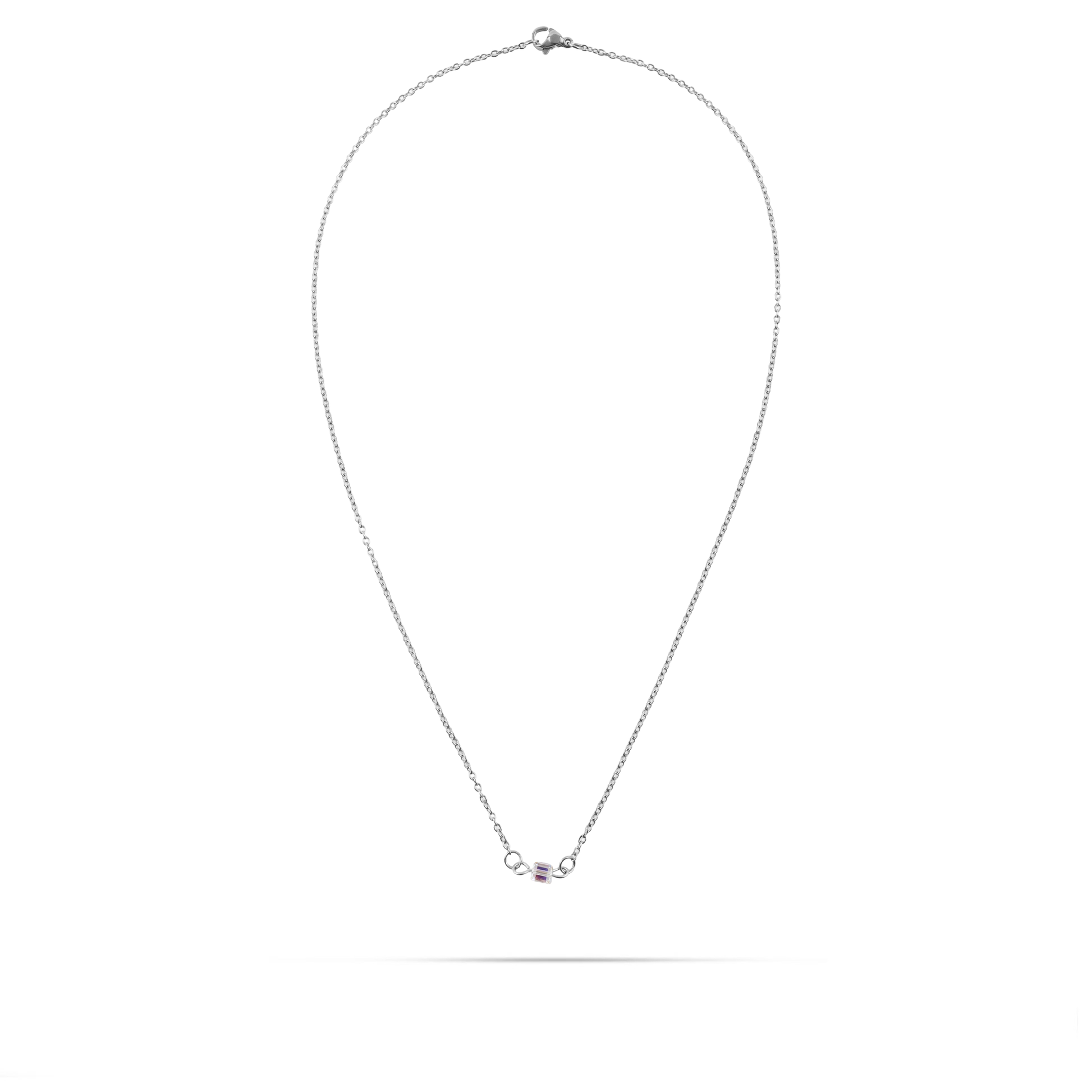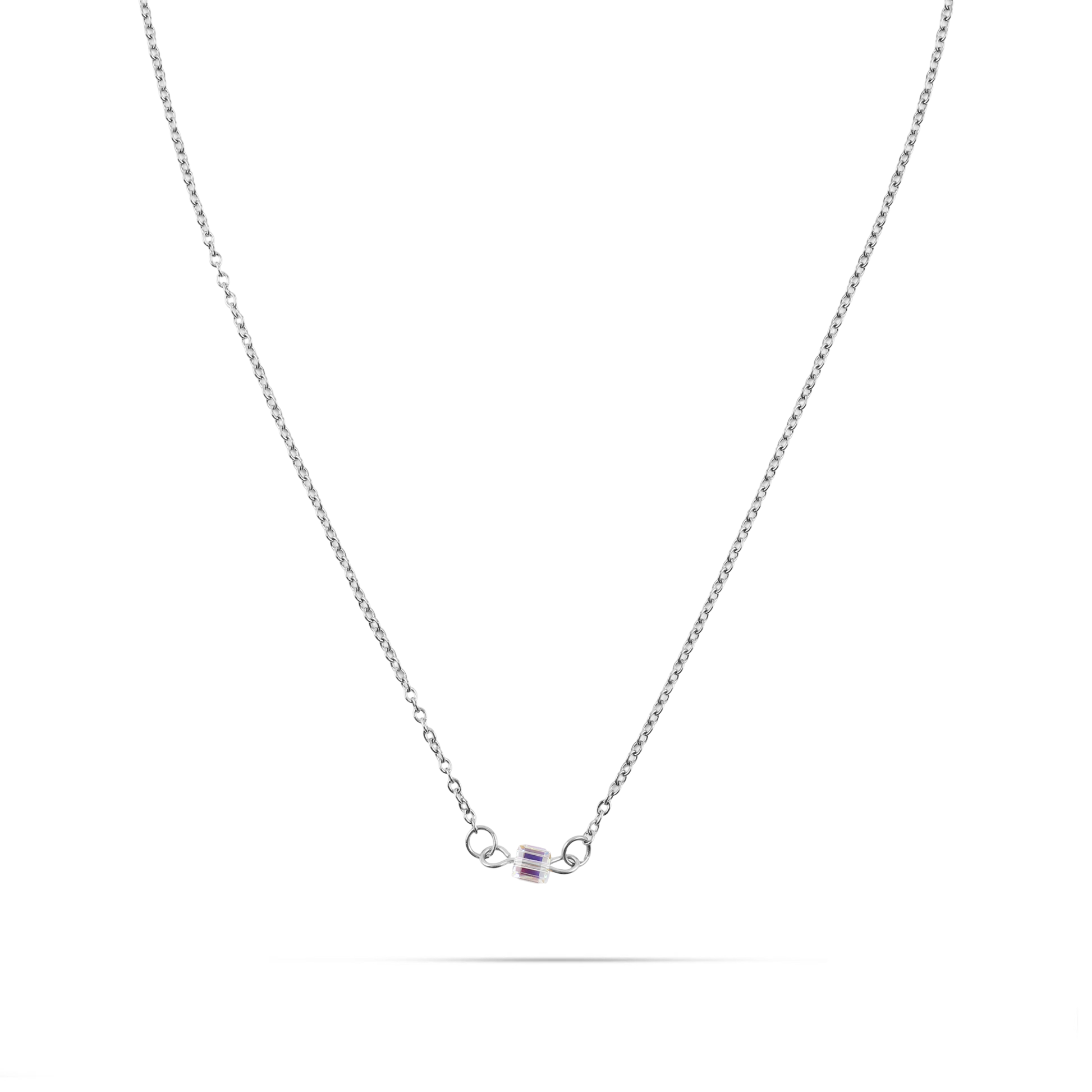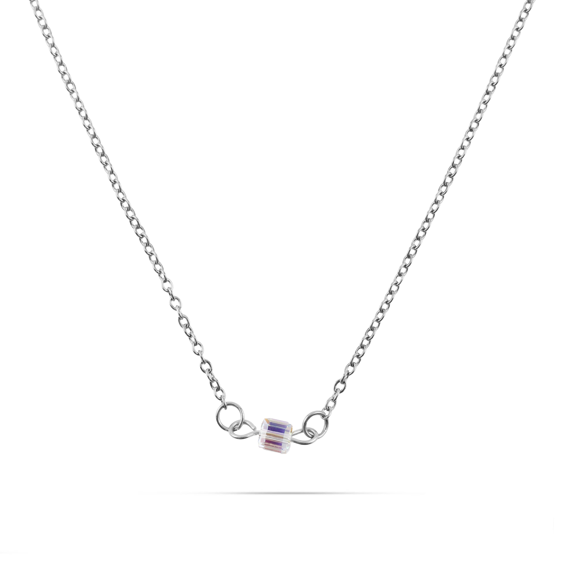 Κολιέ με κύβο από ιριδίζον κρύσταλλο Mar and Mar Little Cube Silver από ανοξείδωτο ατσάλι