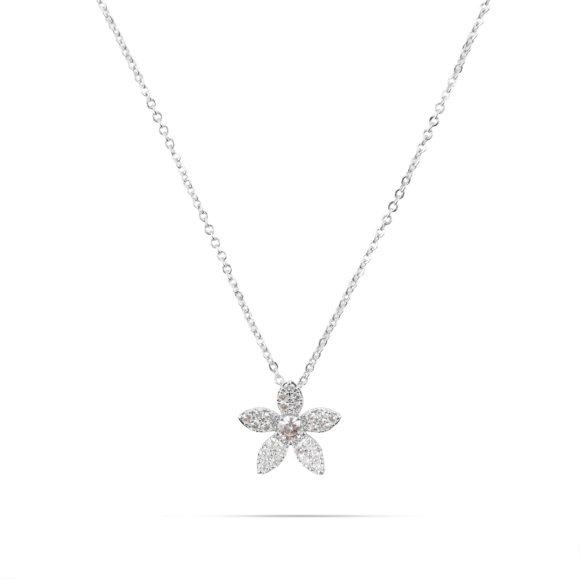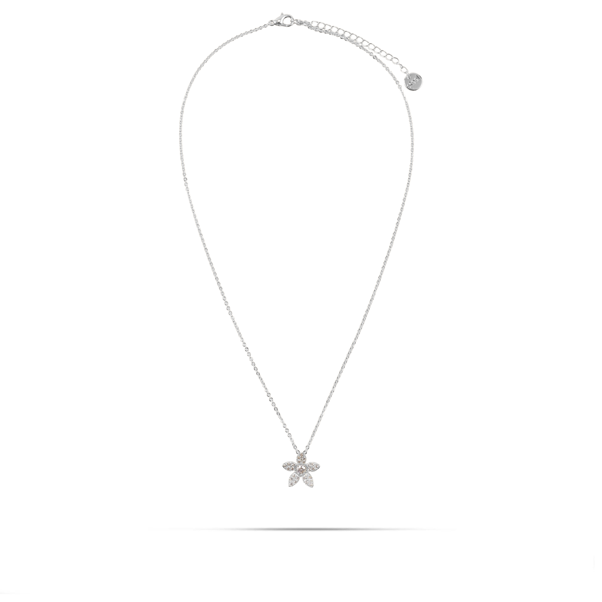 Κολιέ λουλούδι με ζιργκόν Mar and Mar Jasmine Silver από ανοξείδωτο ατσάλι