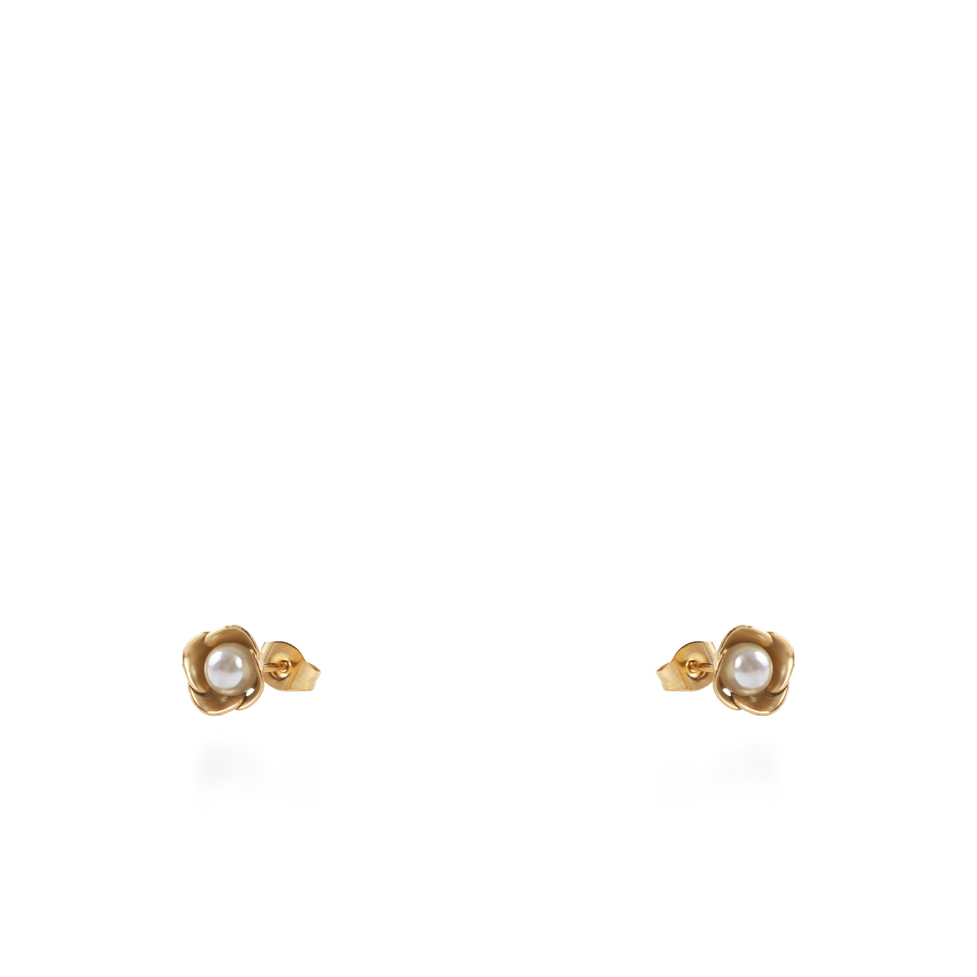 Σκουλαρίκια καρφωτά λουλούδια με πέρλες Mar and Mar Flower Pearly από ανοξείδωτο ατσάλι