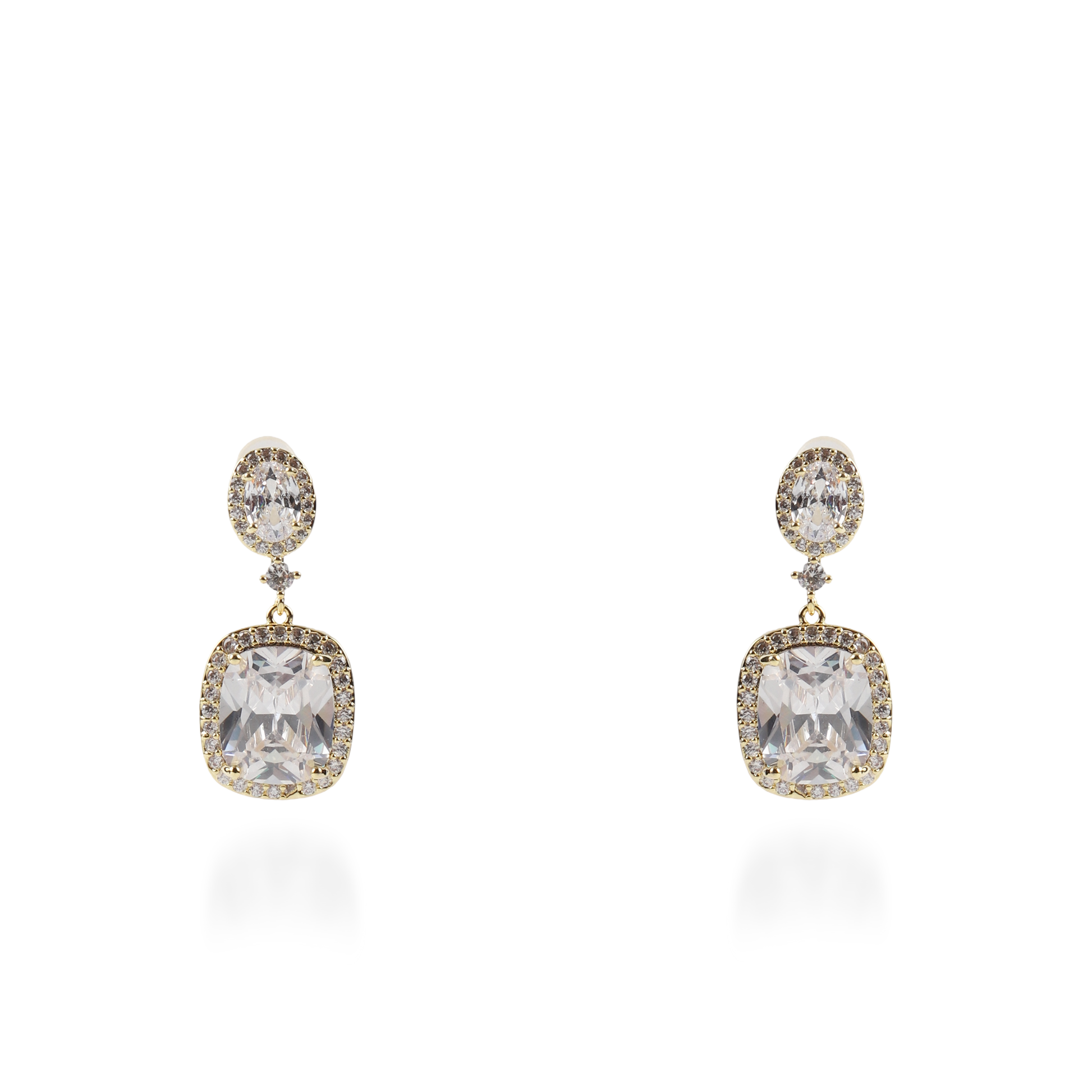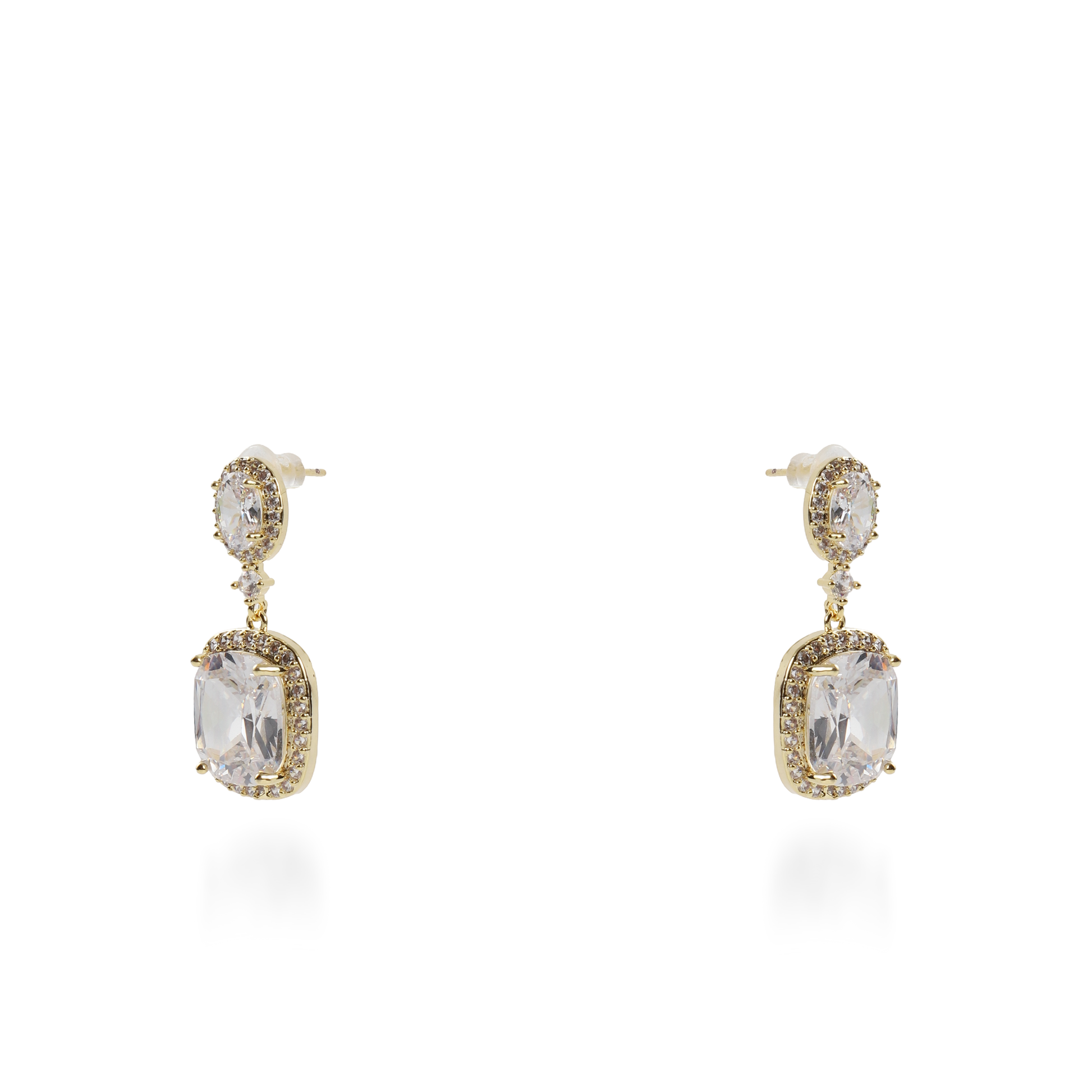 Σκουλαρίκια κρεμαστά με πέτρες ζιργκόν Diana Cube (Άσπρα)