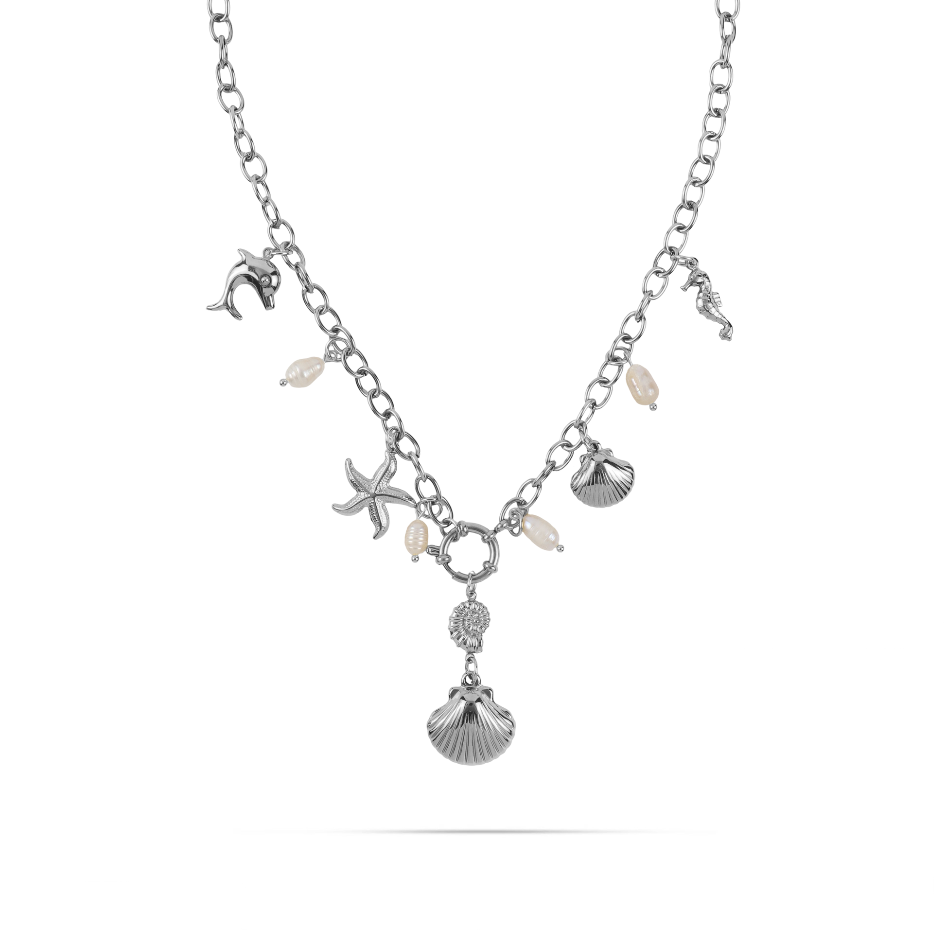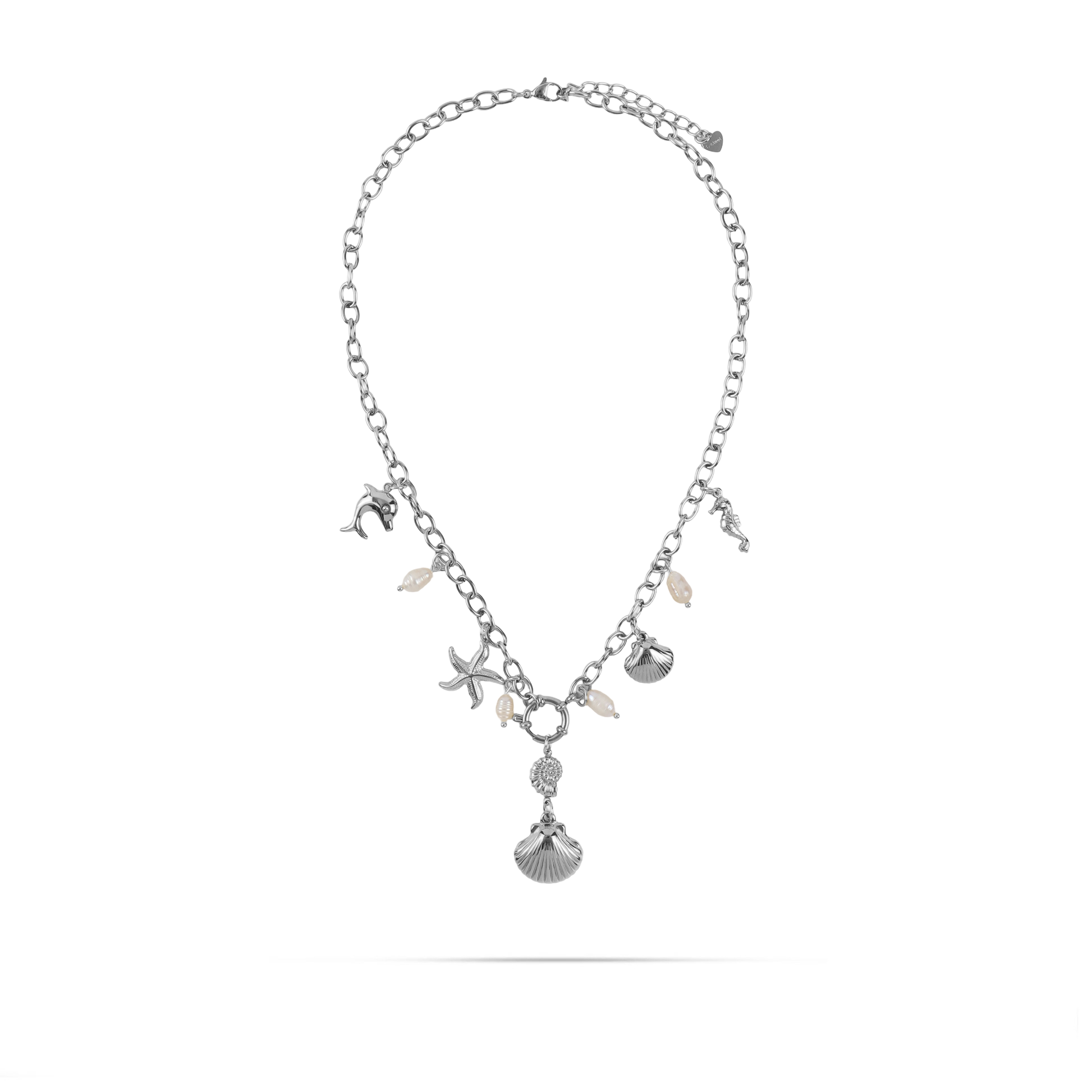 Χειροποίητο κολιέ με καλοκαιρινά κρεμαστά Mar and Mar Malivana Silver από ανοξείδωτο ατσάλι
