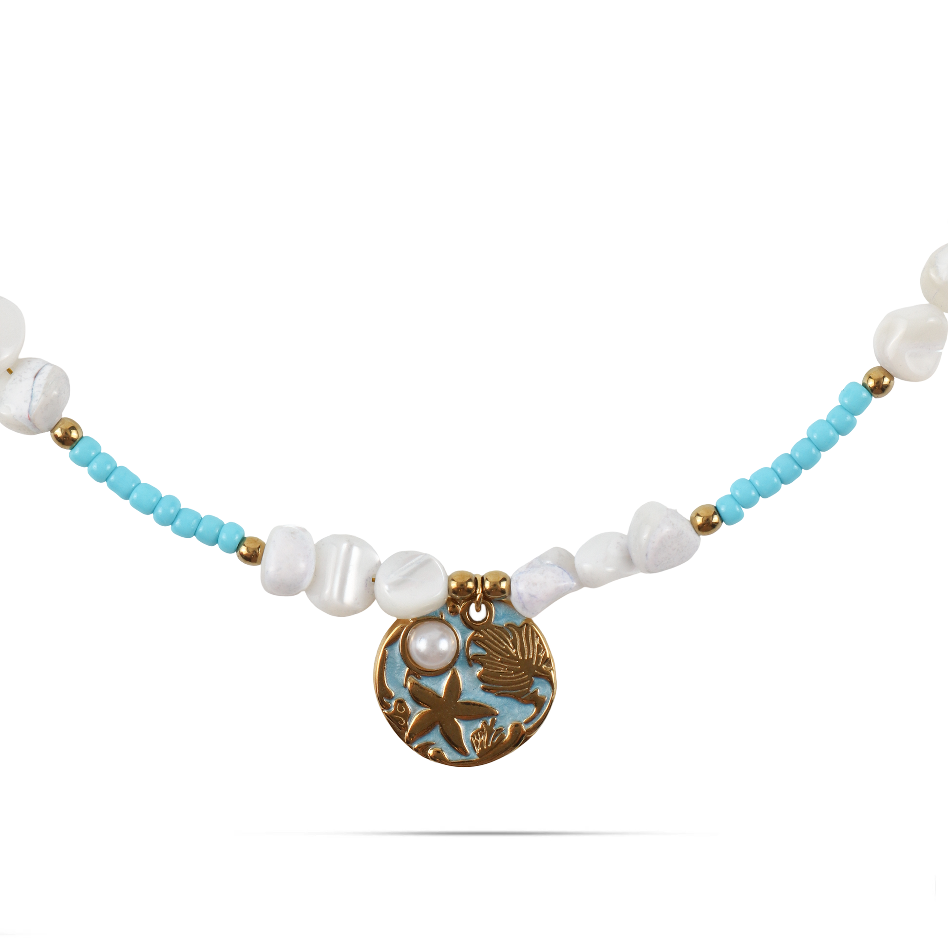 Χειροποίητο κολιέ με φυσικά κοράλια και χάντρες Mar and Mar Evonelle από ανοξείδωτο ατσάλι