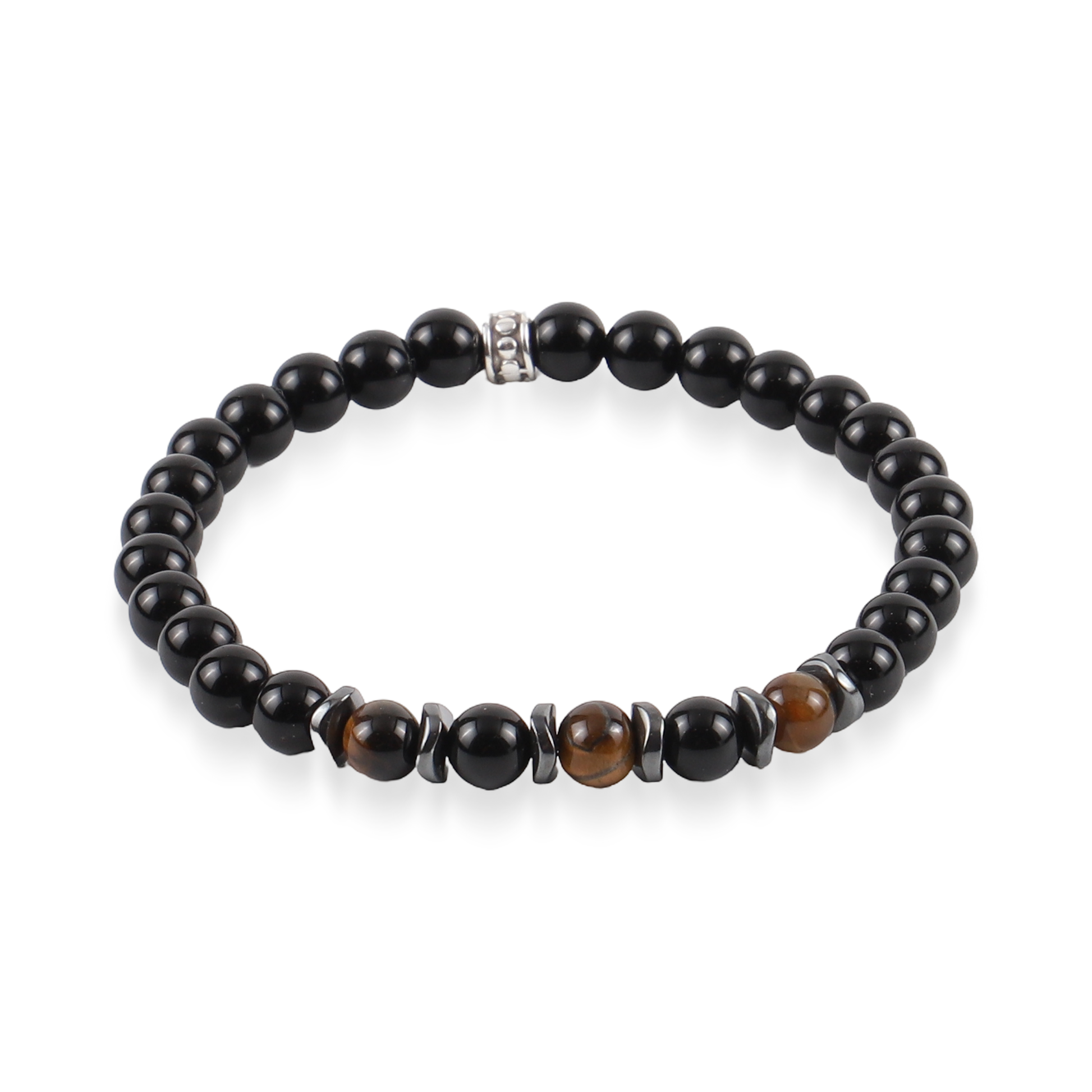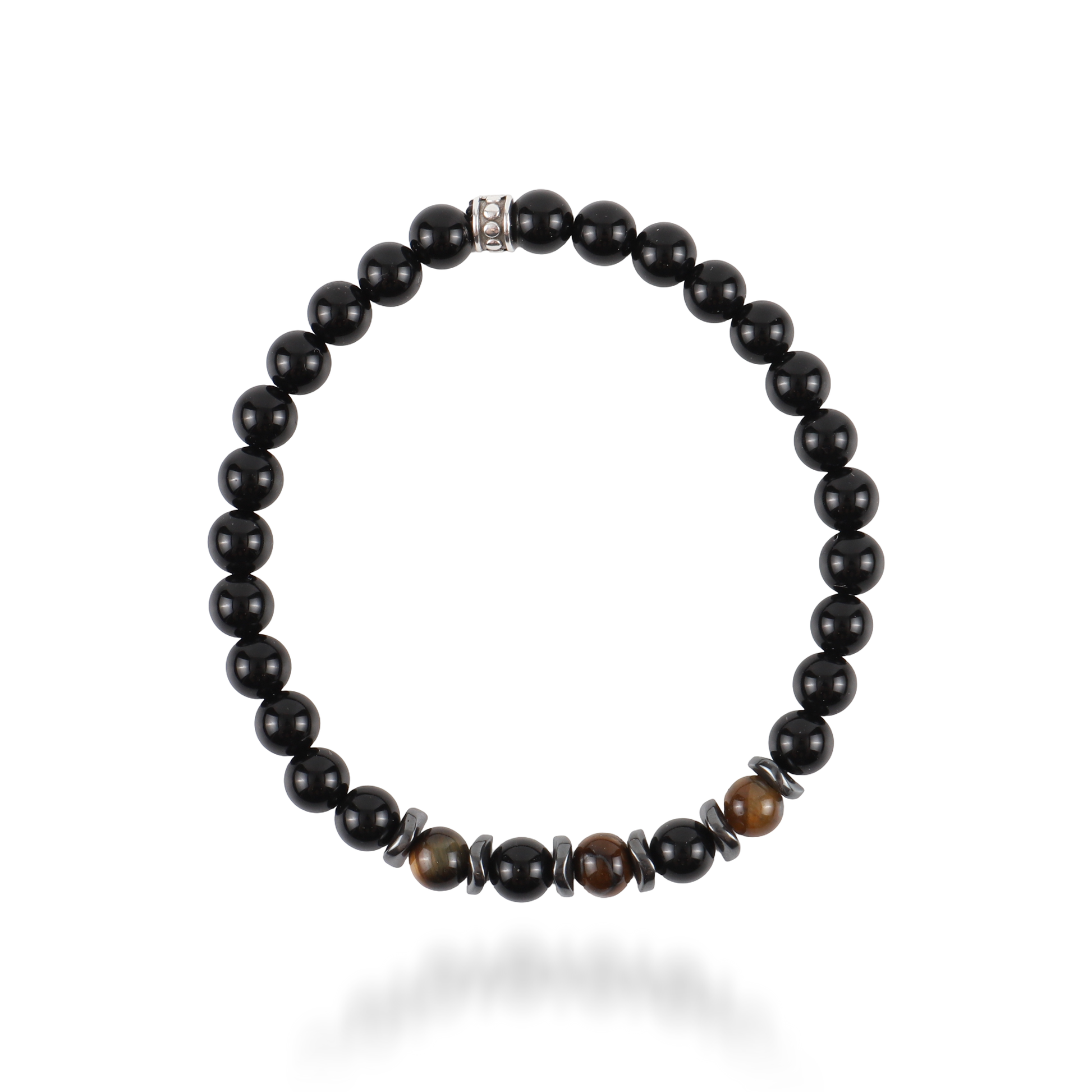 Ανδρικό χειροποίητο βραχιόλι Mar and Mar Looven (Brown) με φυσικές ορυκτές πέτρες Μάτι Τίγρης, Όνυχα και Αιματίτη