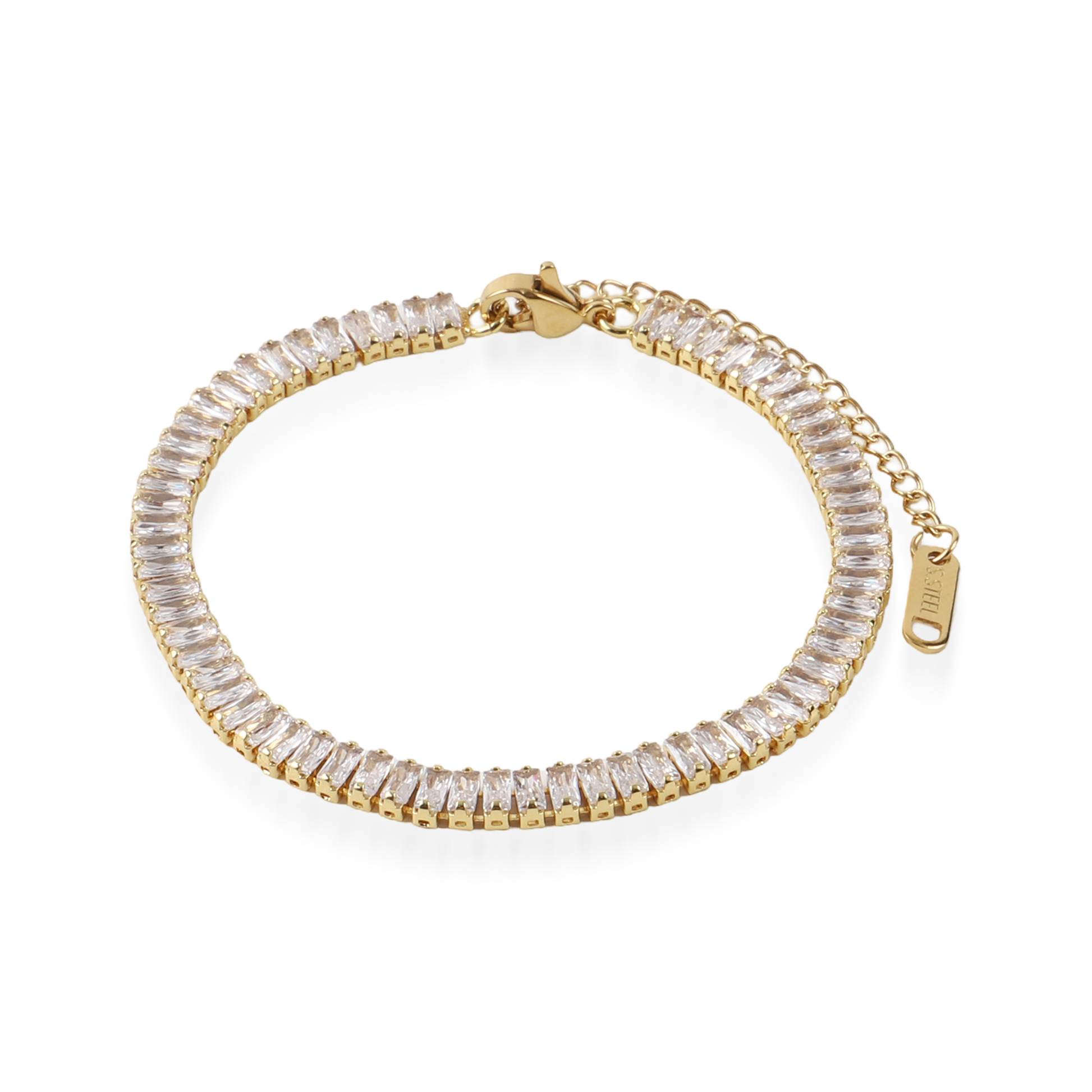 Αναδείξτε το στυλ σας με τη λάμψη της αλυσίδας χεριού Riviera. Κατασκευασμένη από ορείχαλκο σε διπλά επιχρυσωμένο 18Κ και ασημί χρώμα, αυτή η αλυσίδα είναι μια εντυπωσιακή προσθήκη. Οι λαμπερές πέτρες Baguette Zircon που διακοσμούν την αλυσίδα προσθέτουν μια διακριτική και πολυτελή λάμψη. Φορέστε την για να ξεχωρίσετε σε κάθε περίσταση και να προσθέσετε λάμψη στο καθημερινό σας στυλ.