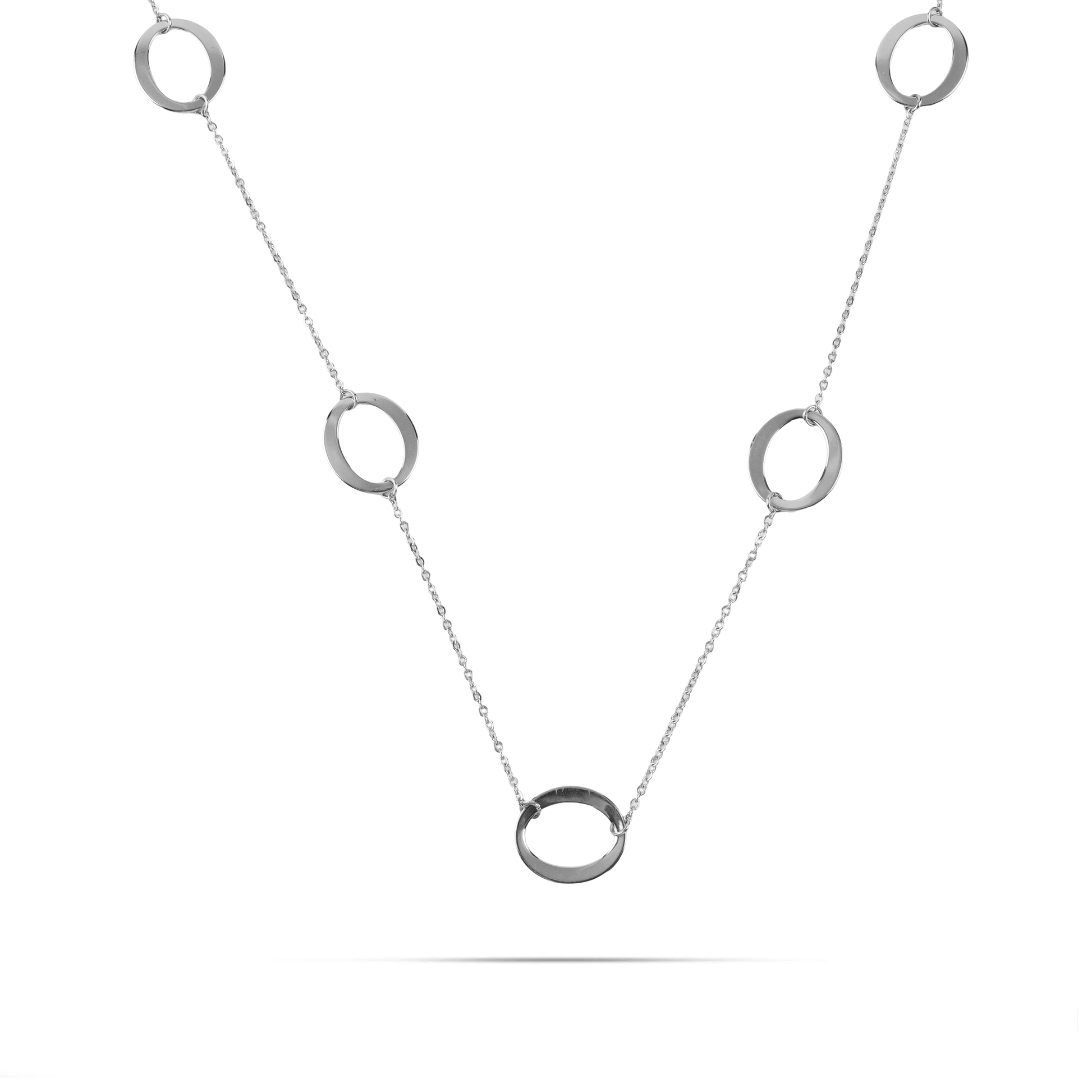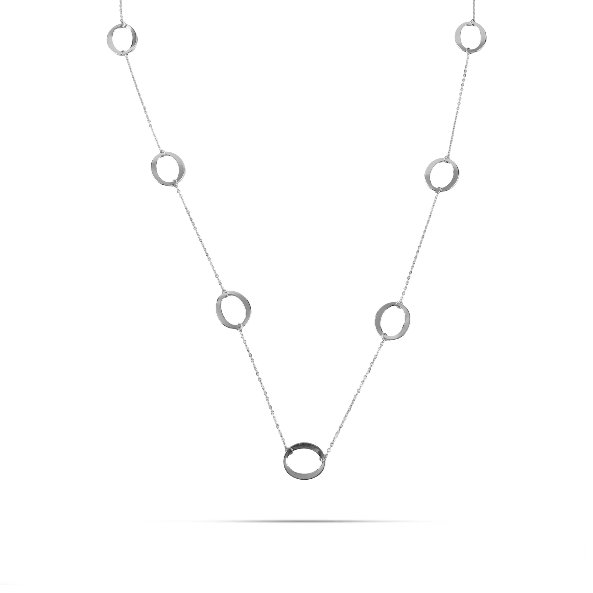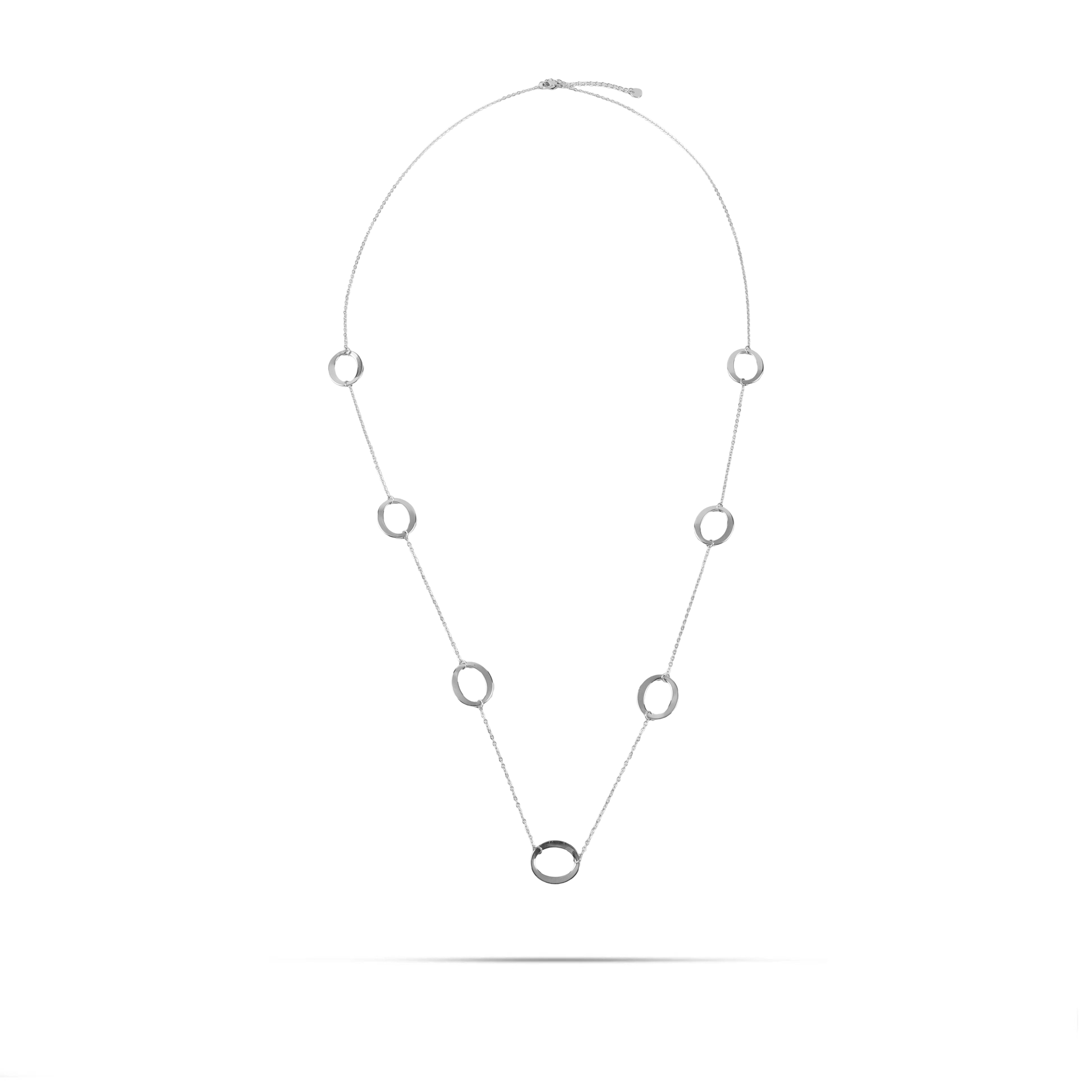 Αλυσίδα λαιμού από ανοξείδωτο ατσάλι σε ασημί χρώμα διακοσμημένη με λαμπερούς κρίκους η οποία αντιπροσωπεύει ένα κομψό και σύγχρονο κόσμημα. Οι λαμπεροί κρίκοι προσθέτουν μια διακριτική λάμψη και κομψότητα, δημιουργώντας ένα εντυπωσιακό κόσμημα που μπορεί να φορεθεί καθημερινά. Η κατασκευή από ανοξείδωτο ατσάλι εξασφαλίζει αντοχή και ανθεκτικότητα, καθιστώντας την αλυσίδα κατάλληλη για καθημερινή χρήση.