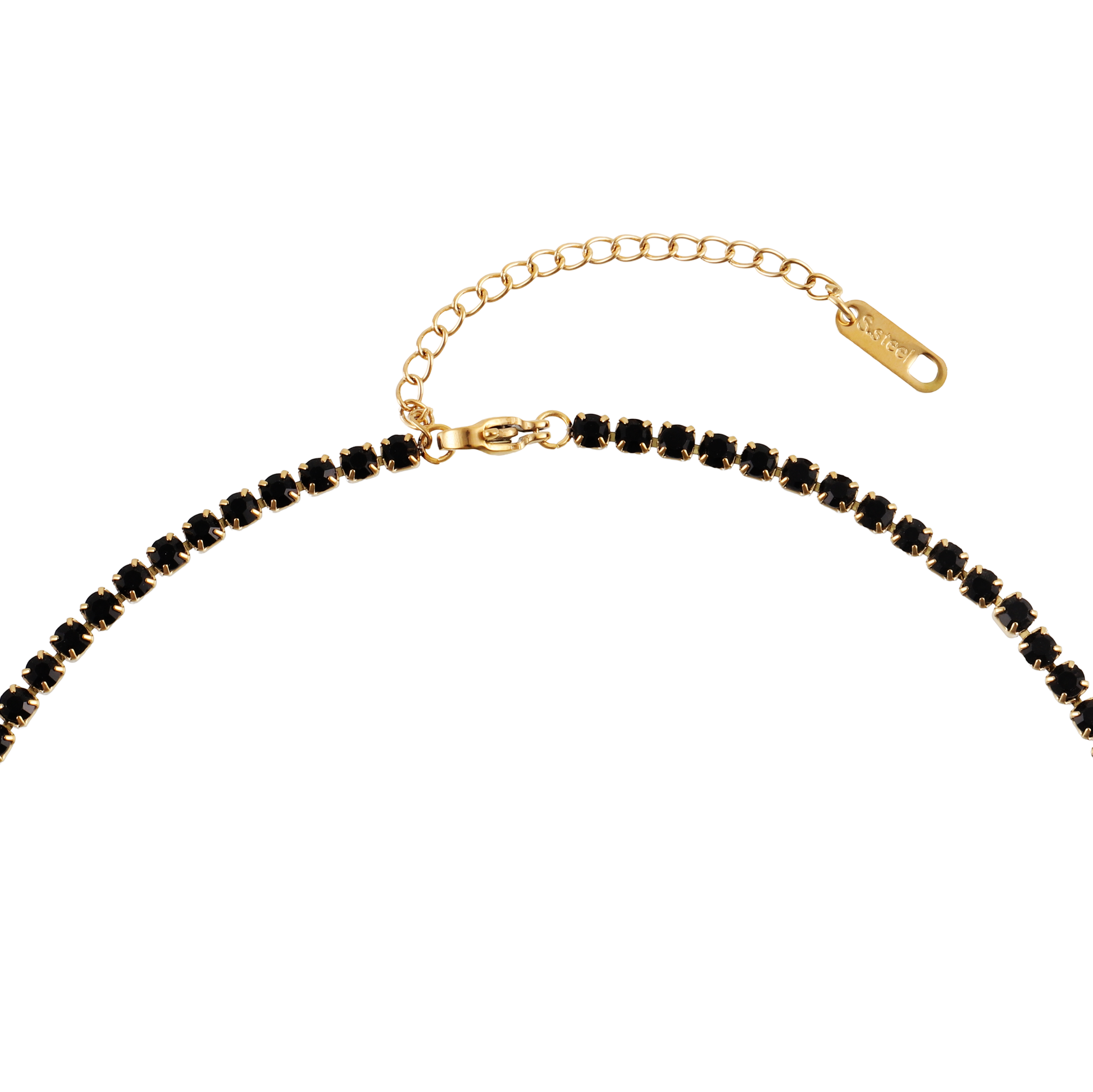 Αλυσίδα λαιμού με πέτρες ζιργκόν σε μαύρο χρώμα Mar and Mar Tennis (Black-Gold)