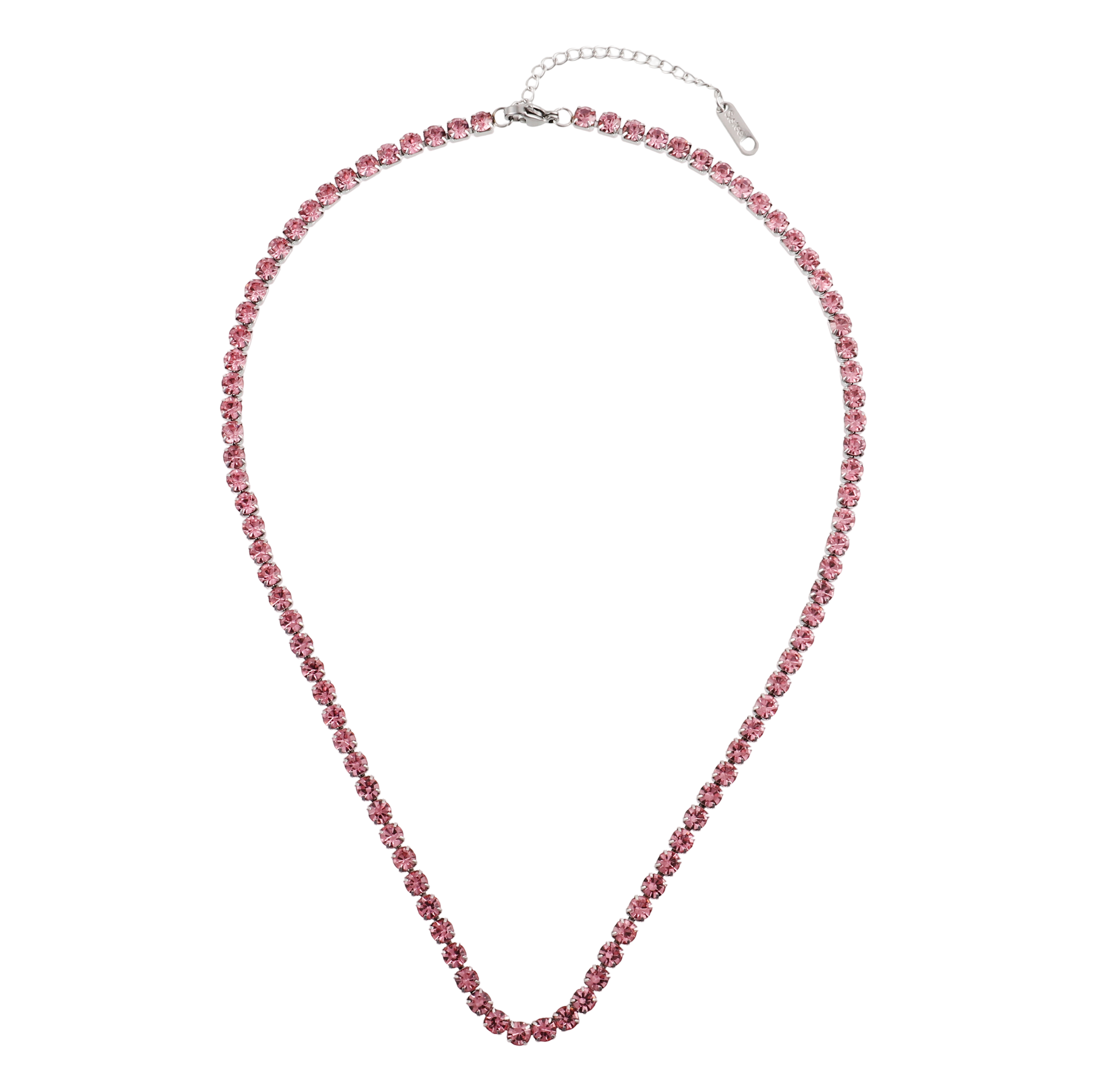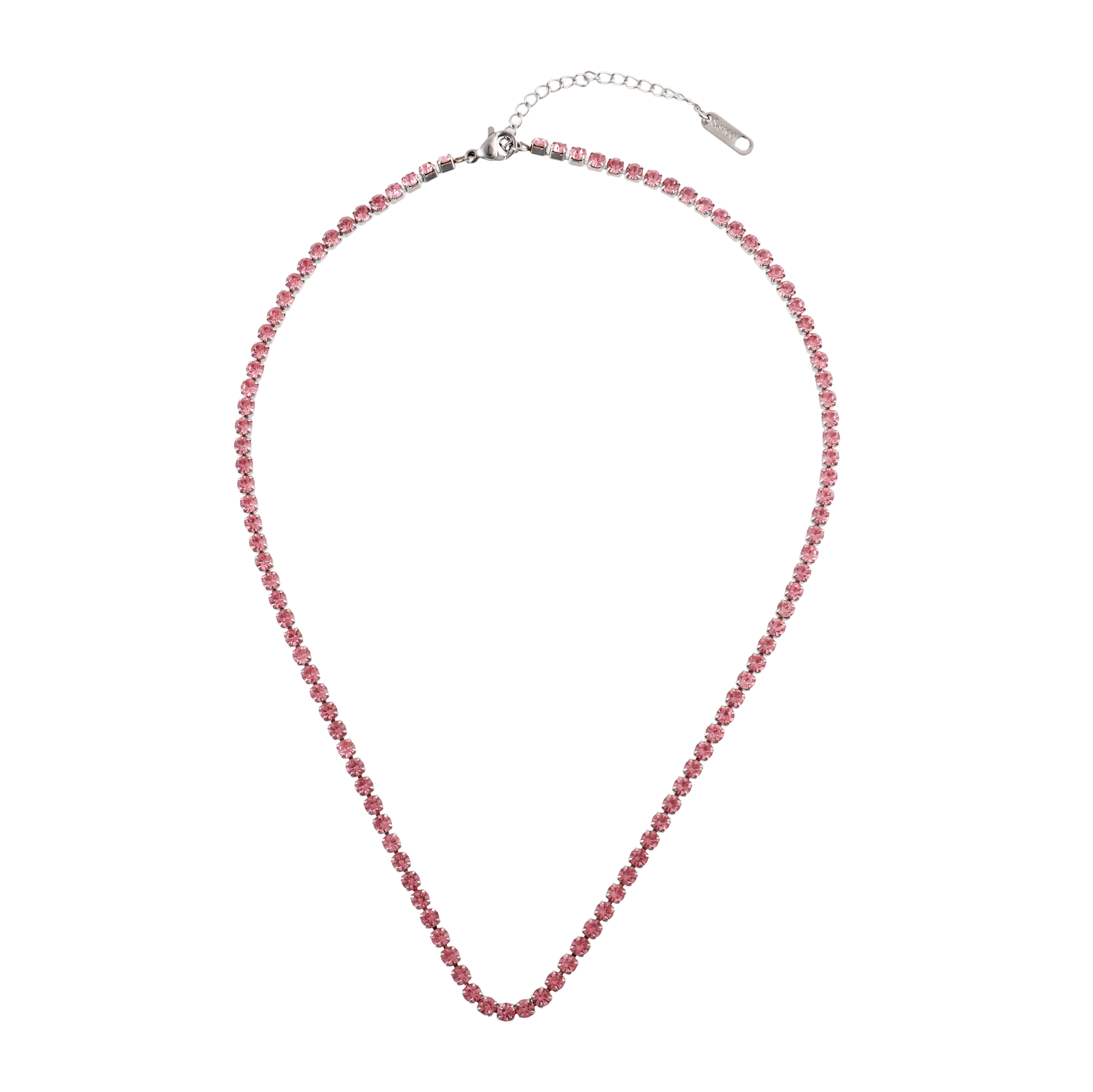 Αλυσίδα λαιμού με πέτρες ζιργκόν σε ροζ χρώμα Mar and Mar Tennis (Pink-Silver)