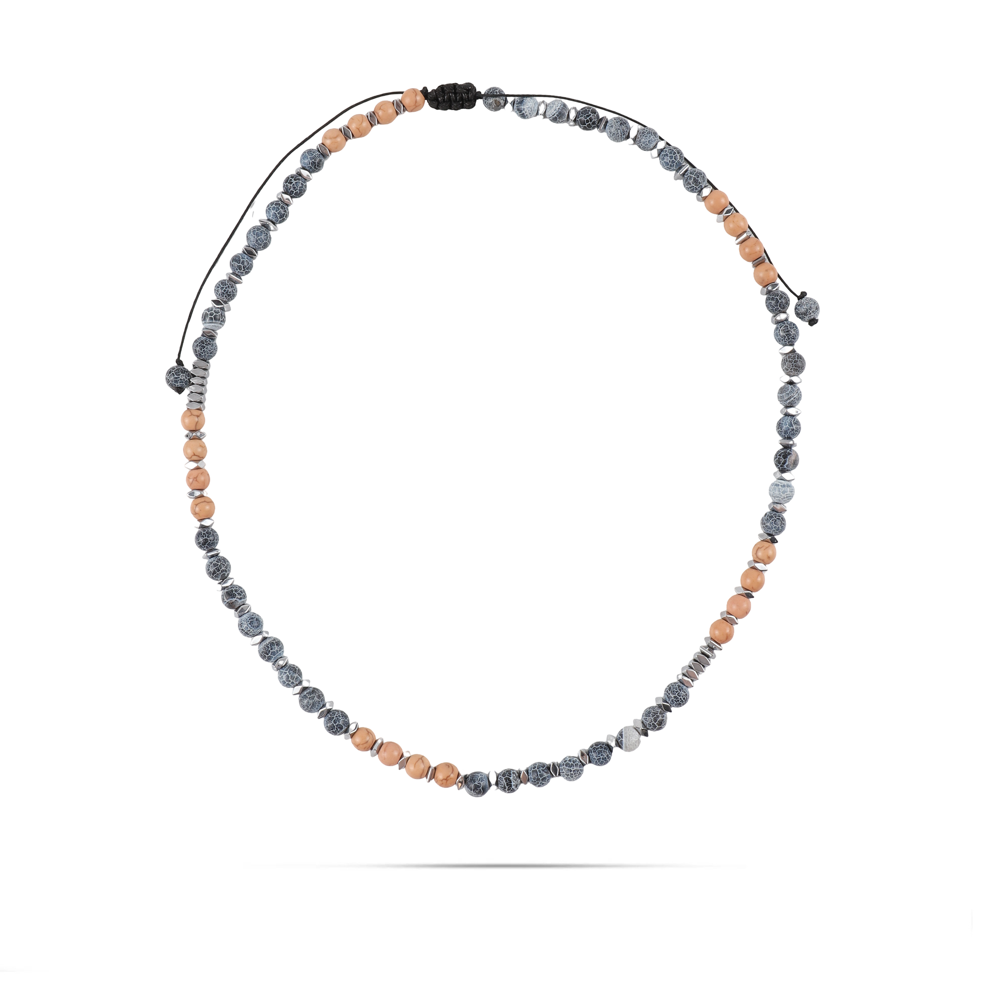 Ανδρικό χειροποίητο κολιέ Mar and Mar Valore με φυσικές ορυκτές πέτρες Αχάτη και Αιματίτη