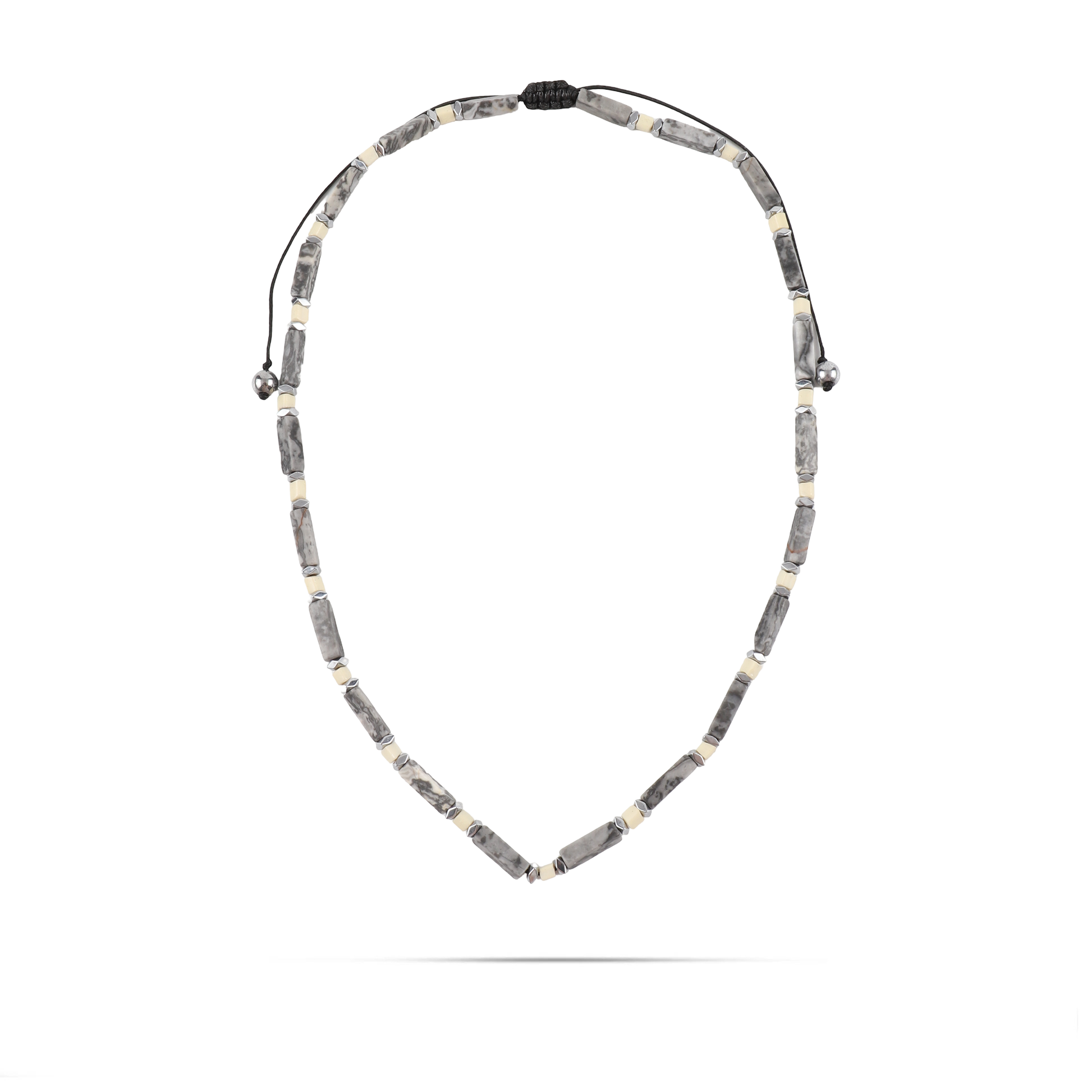 Ανδρικό χειροποίητο κολιέ μακραμέ Mar and Mar Nomad με φυσικές ορυκτές πέτρες Χαολίτη και Αιματίτη