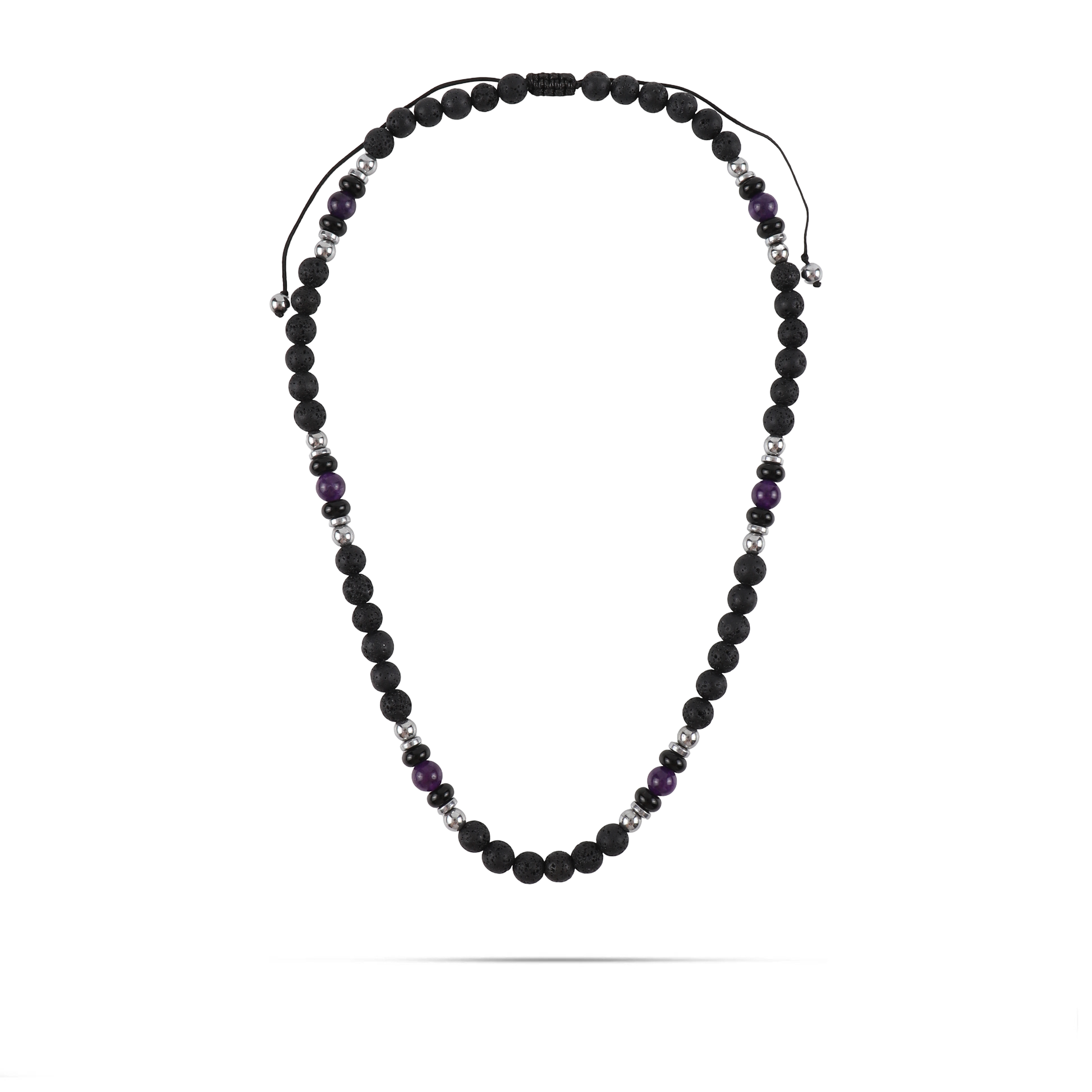 Ανδρικό χειροποίητο κολιέ μακραμέ Mar and Mar Acer (Purple) με φυσικές ορυκτές πέτρες Λάβα Αμέθυστο και Αιματίτη