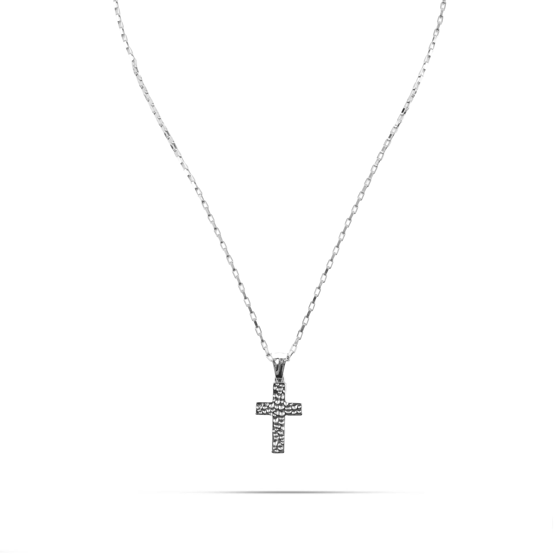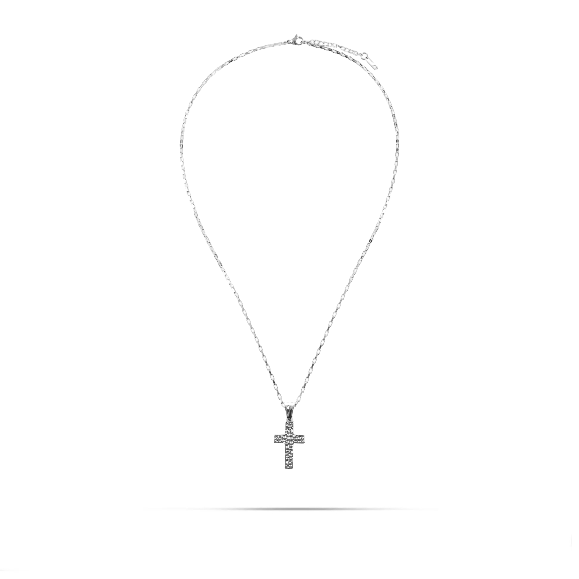 Κολιέ σταυρός από ανοξείδωτο ατσάλι σε ασημί χρώμα. Ένα υπέροχο κόσμημα με αλυσιδάκι και με σταυρό με ιδιαίτερο ανάγλυφο σχέδιο στην επιφάνεια του που θα λατρέψετε!