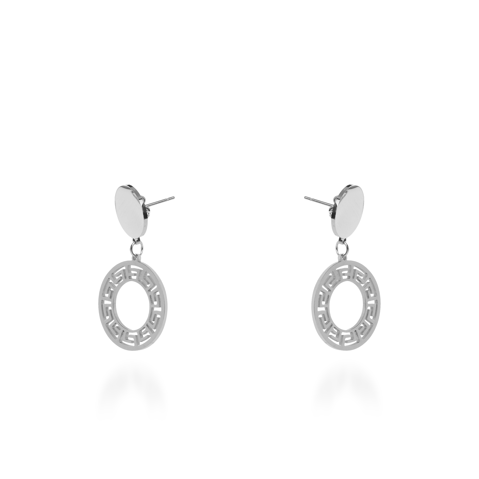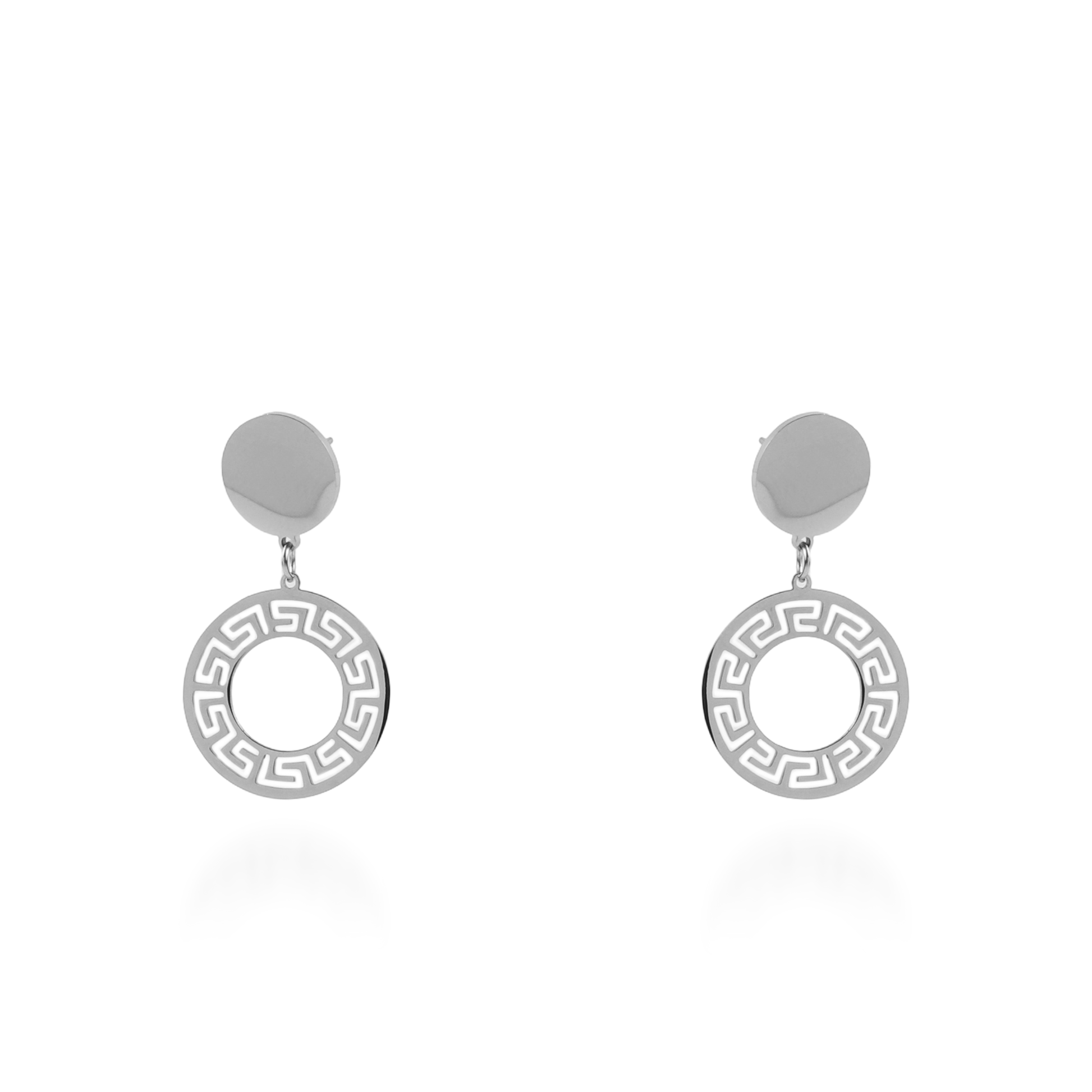 Σκουλαρίκια κρεμαστά από ανοξείδωτο ατσάλι με στρογγυλό σχέδιο με ανάγλυφο μαίανδρο, μια κομψή επιλογή για την εμφάνιση σας. Το ανοξείδωτο ατσάλι προσφέρει αντοχή και λάμψη που διαρκεί με την πάροδο του χρόνου. Αυτά τα κρεμαστά σκουλαρίκια είναι ιδανικά για κάθε μέρα, προσθέτοντας μια διακριτική πινελιά στο ντύσιμό σας. Επιπλέον, μπορείτε να τα συνδυάσετε εύκολα με διάφορα στυλ και εμφανίσεις.